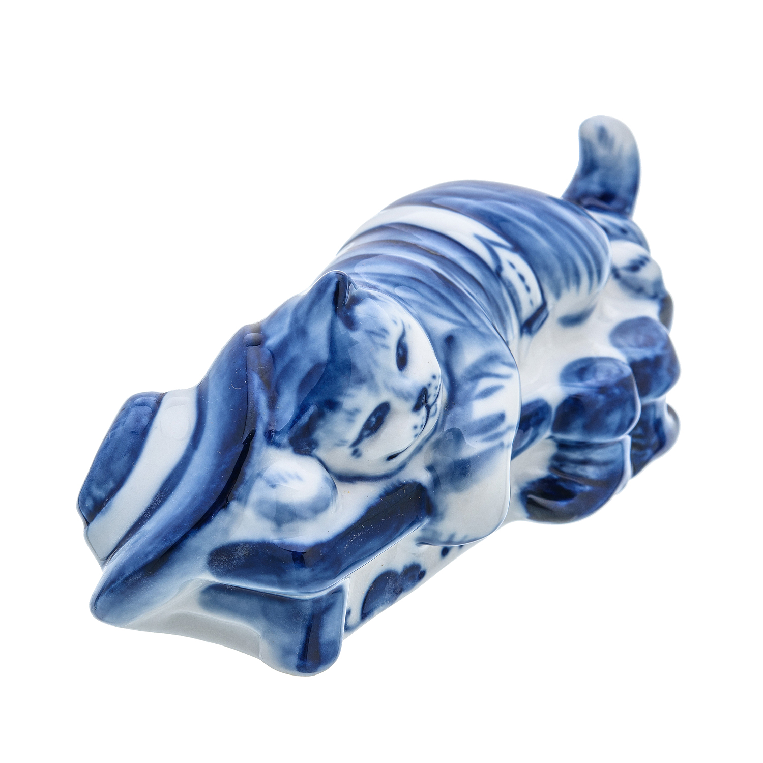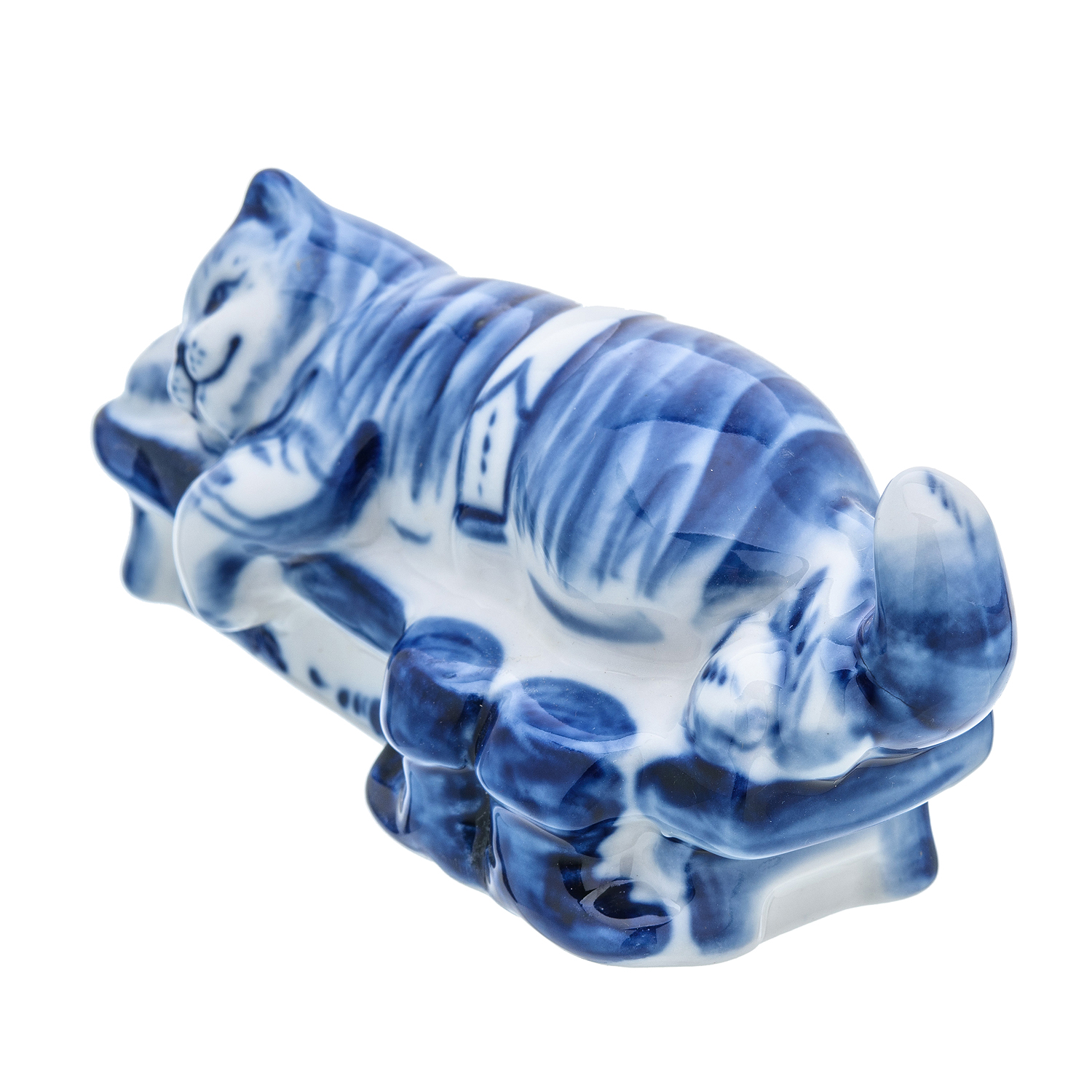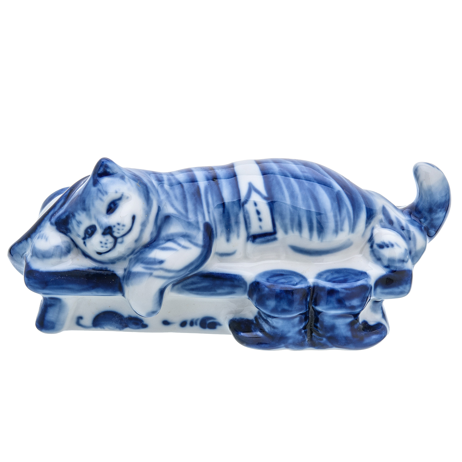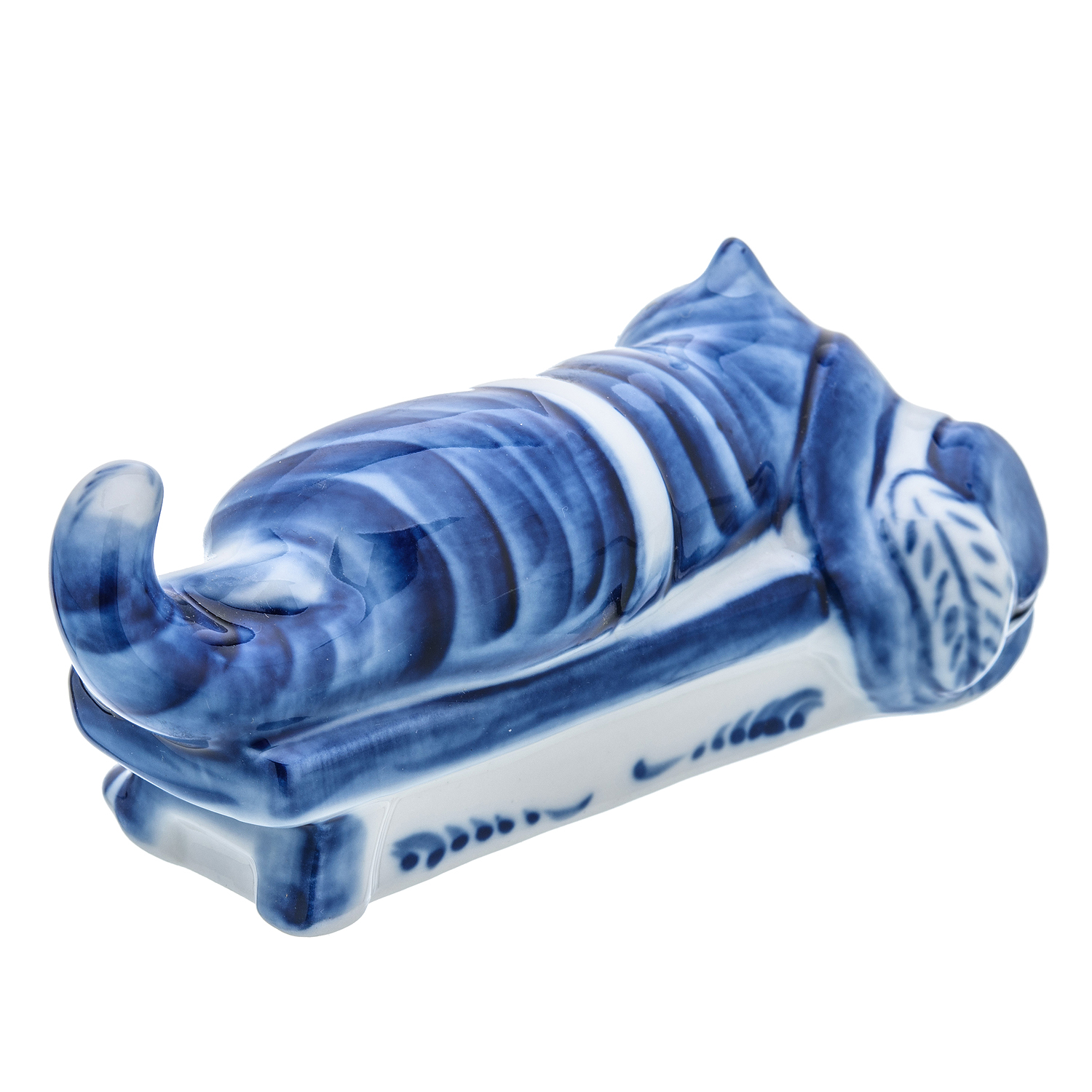 Русские подарки и сувениры → Интерьерные изделия → Статуэтки → Фарфоровая статуэтка "Кот на скамейке". Гжель