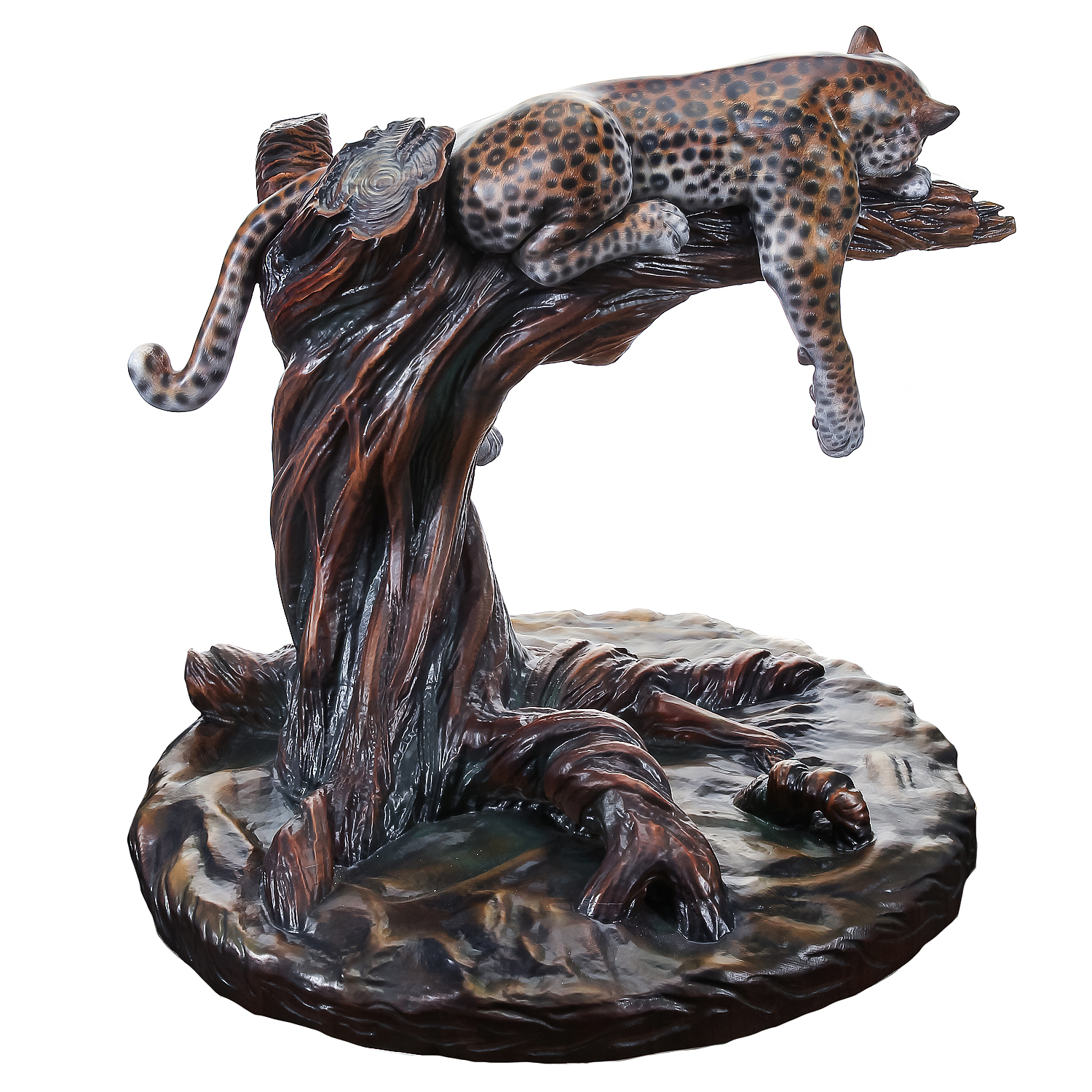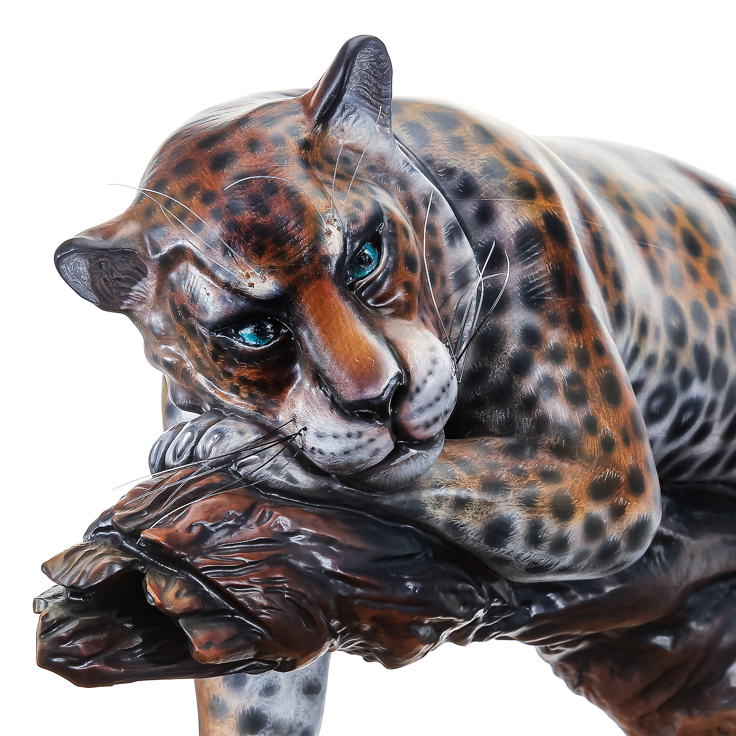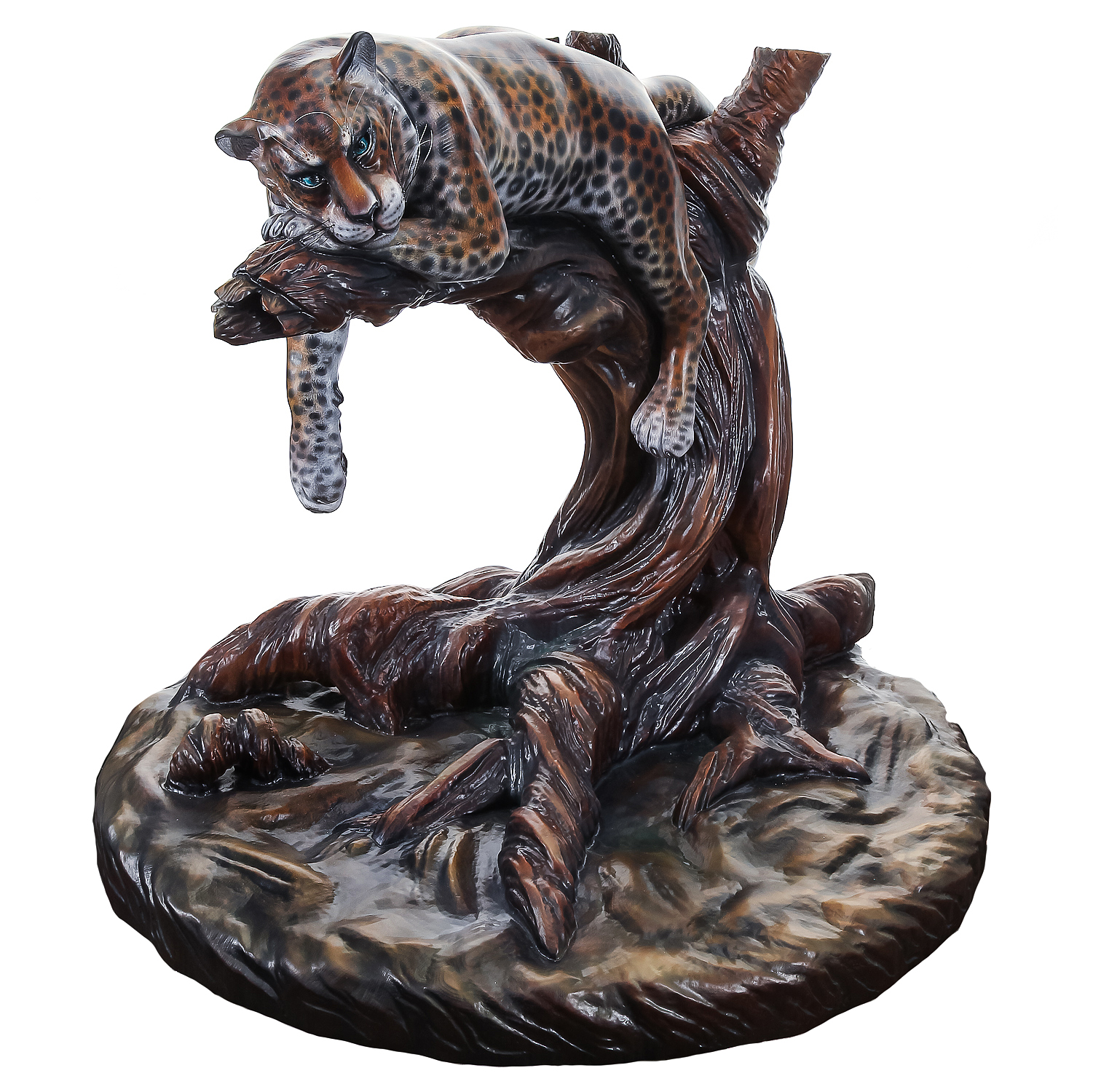 Деревянная резная скульптура "Ягуар на дереве". Высота 80 см