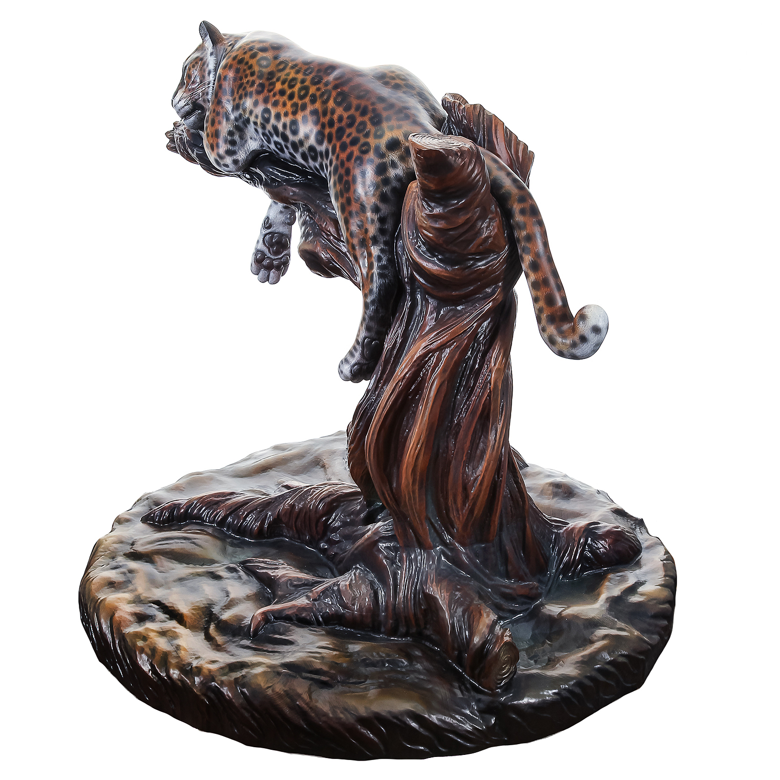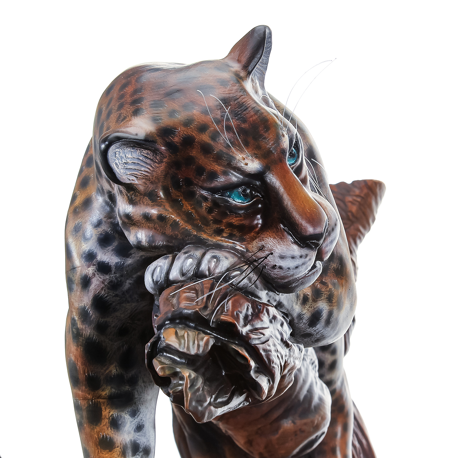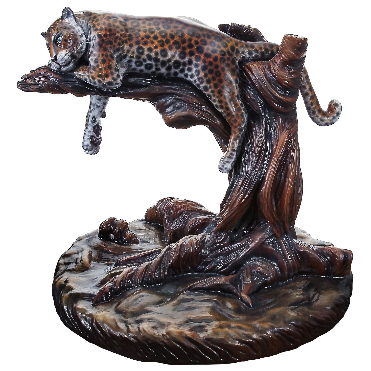 Деревянная резная скульптура "Ягуар на дереве". Высота 80 см