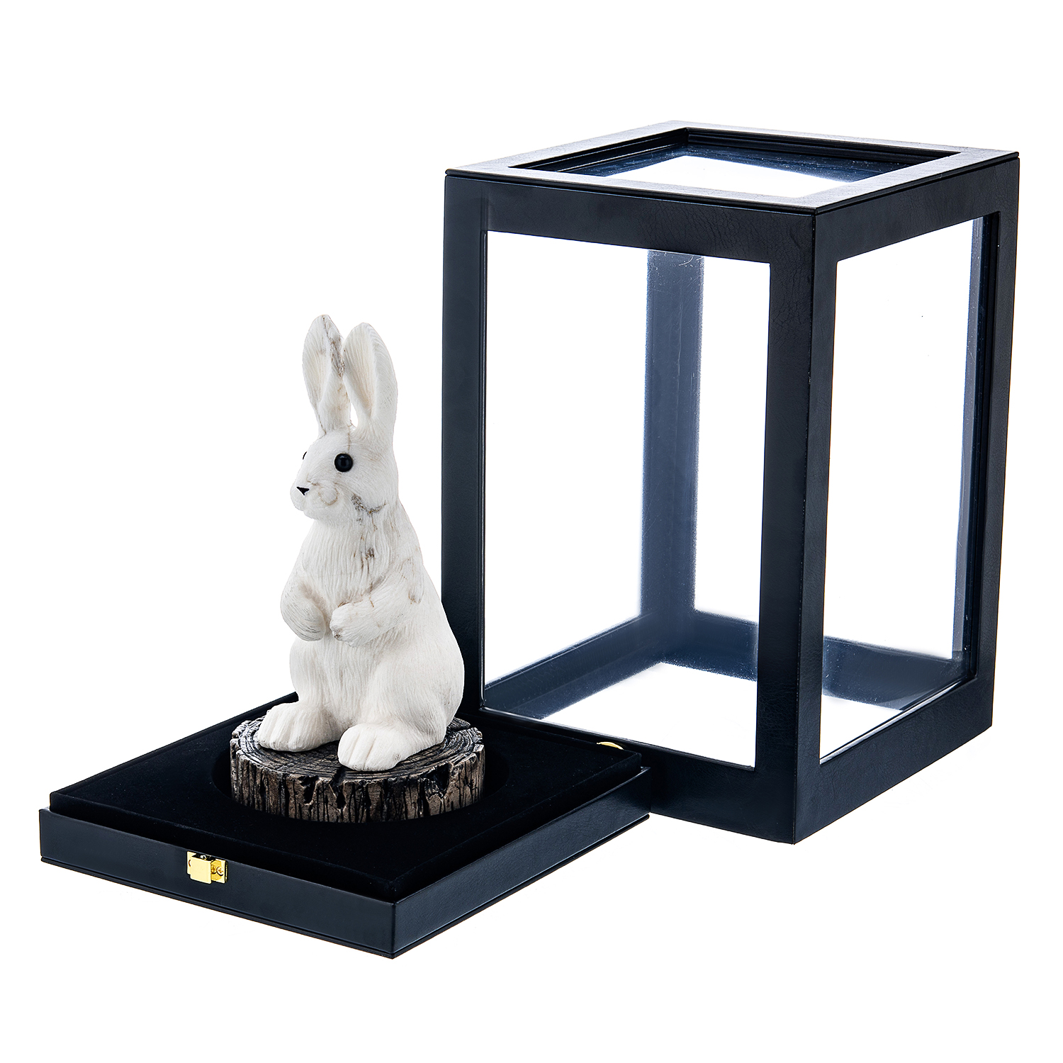 Скульптура из натурального камня "Кролик на пне". Ангидрид