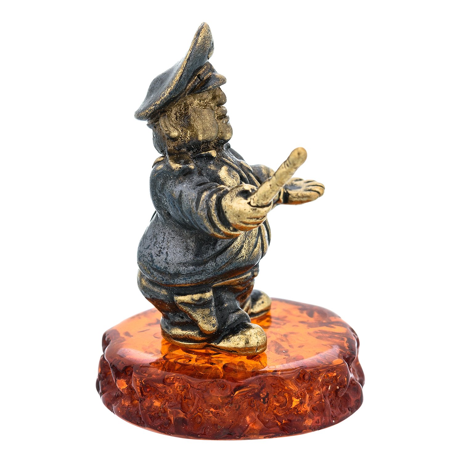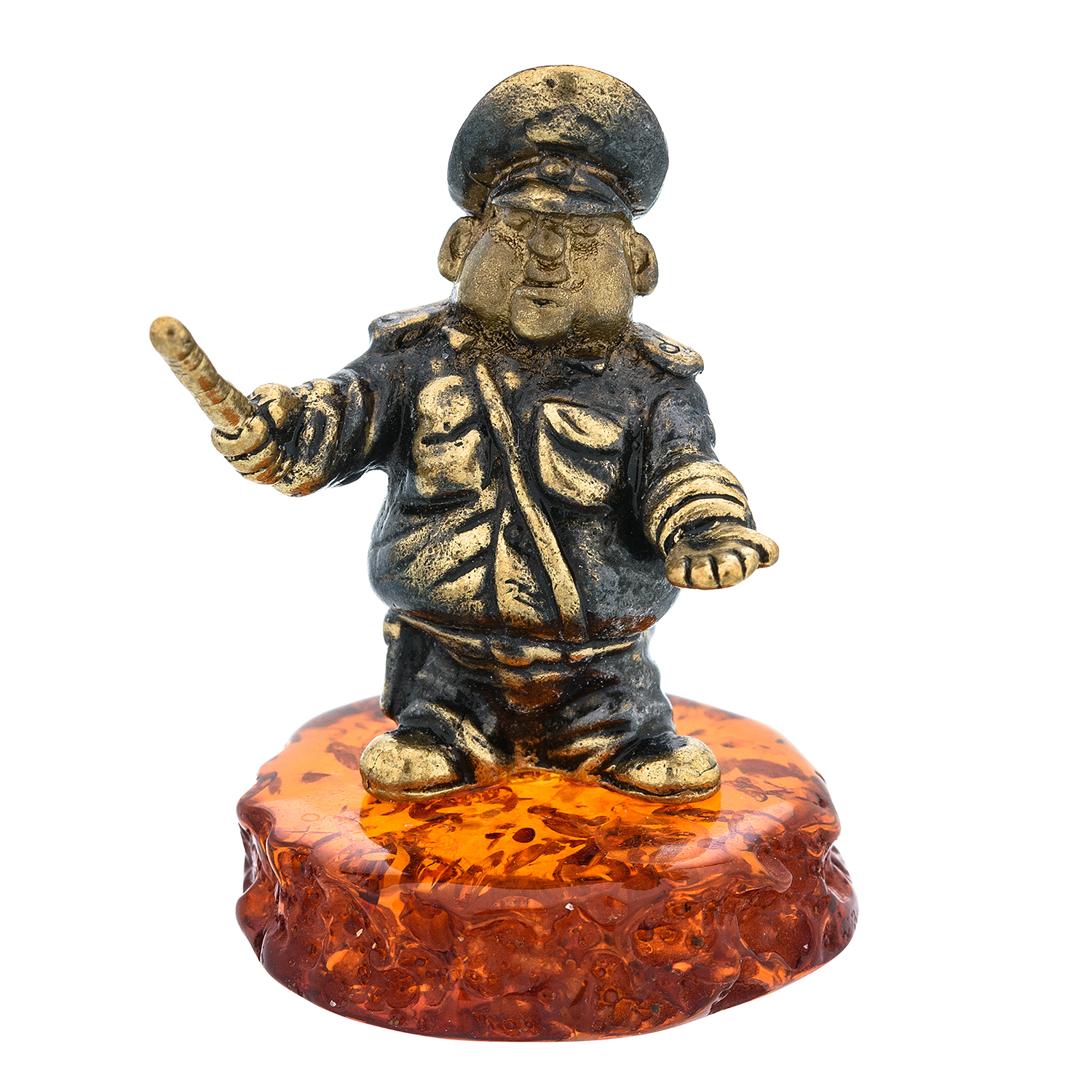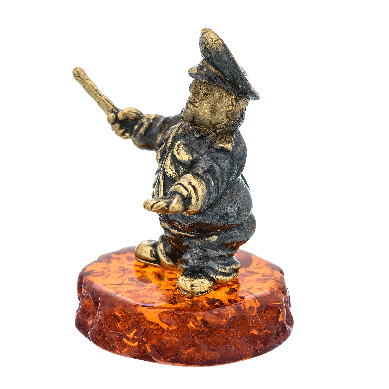 Статуэтка с янтарем "Гаишник".Материалы: латунь, янтарь.
