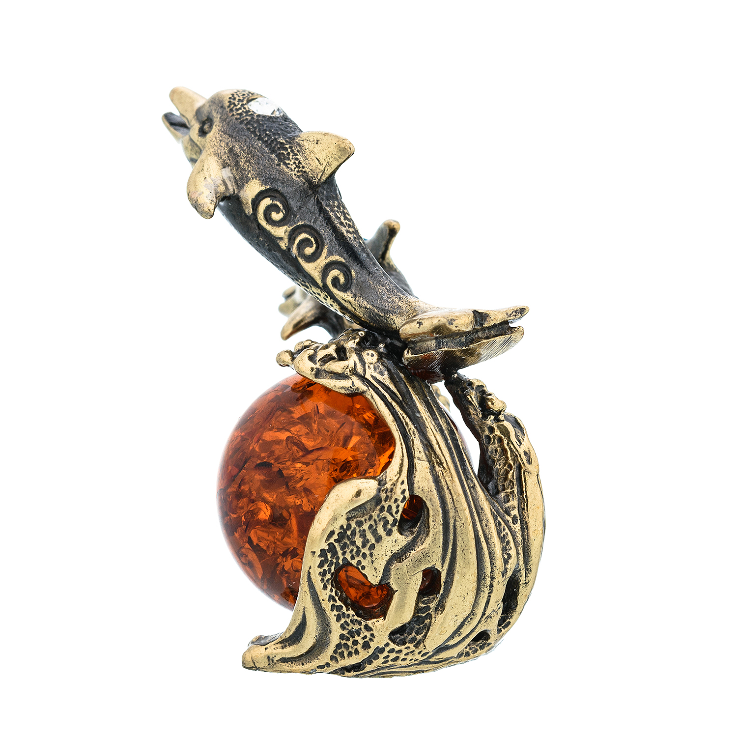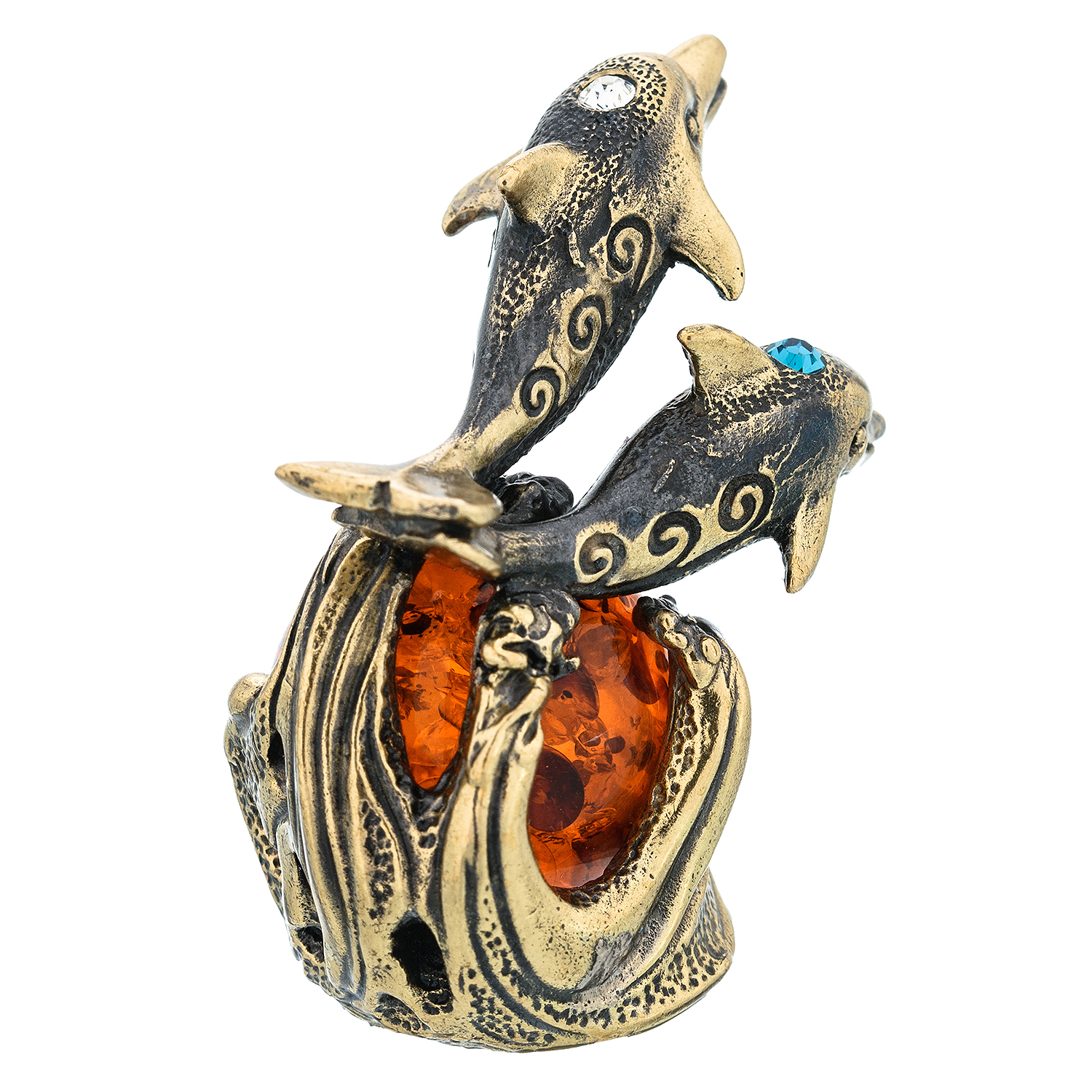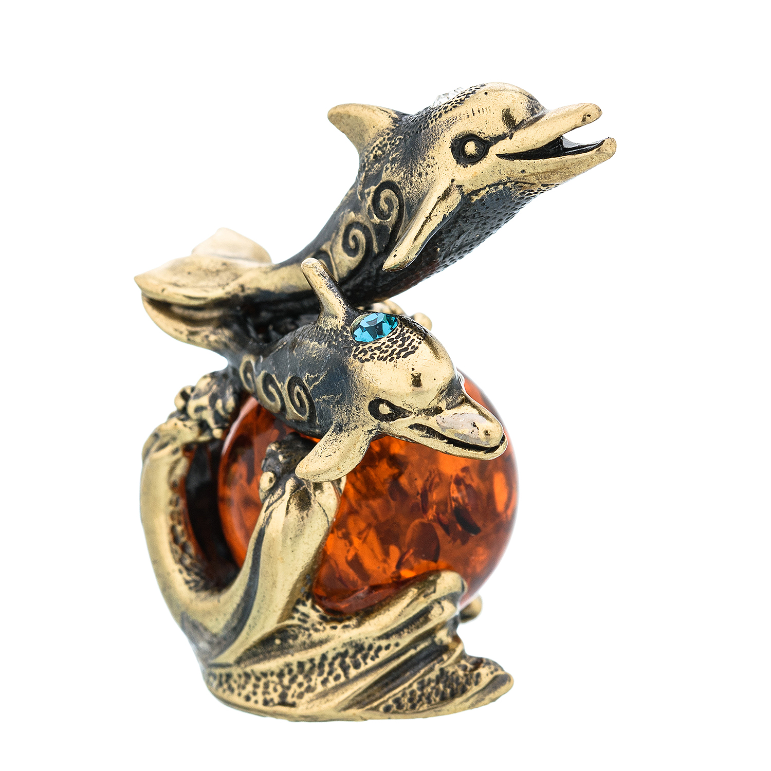 Статуэтка с янтарем "Дельфины".Материалы: латунь, янтарь.