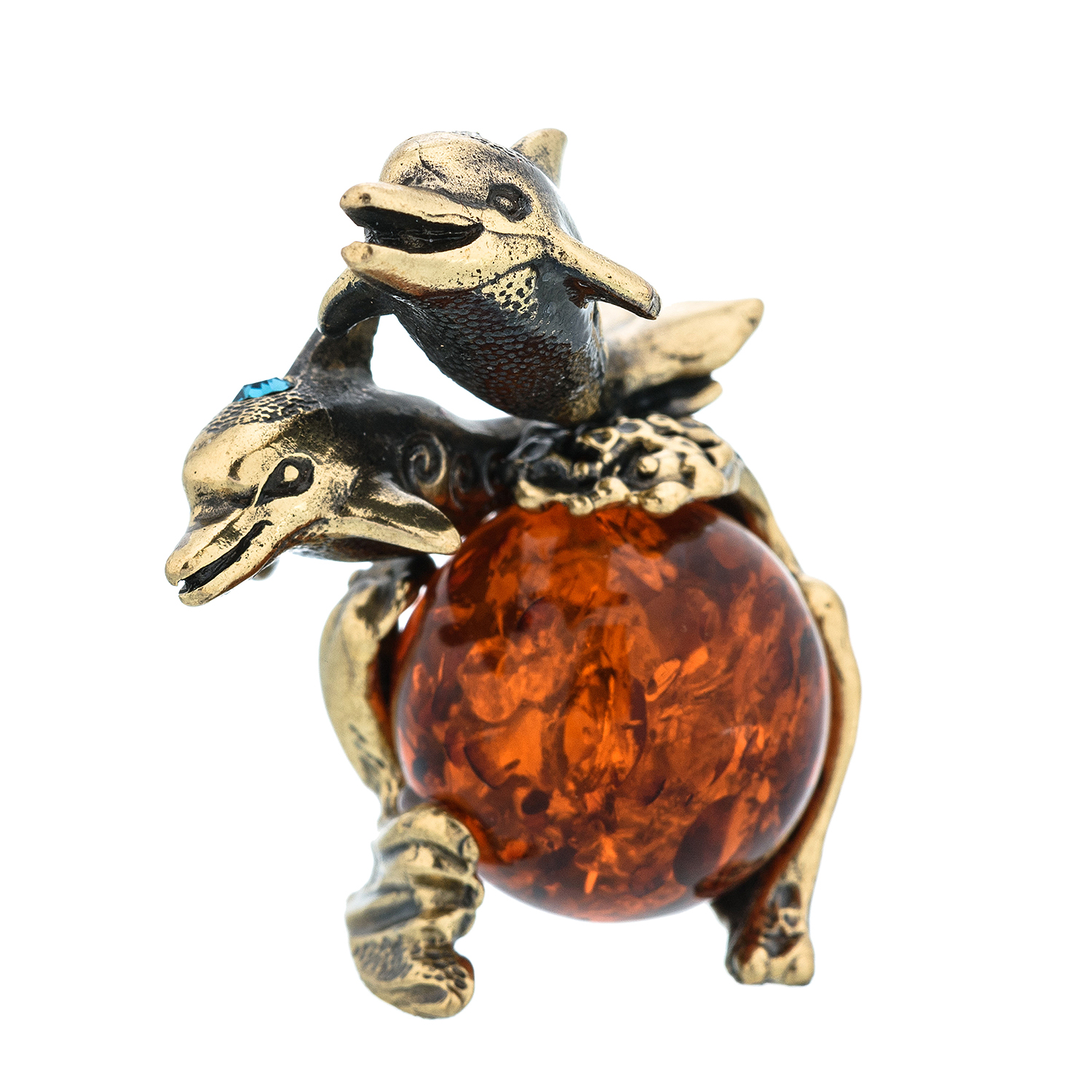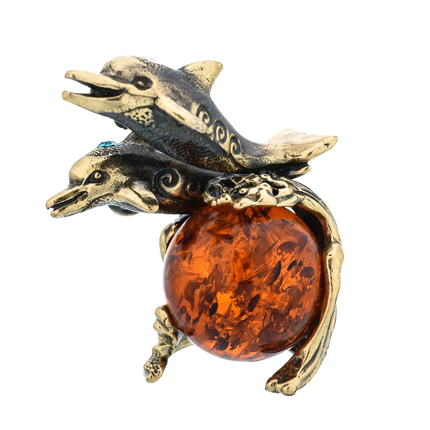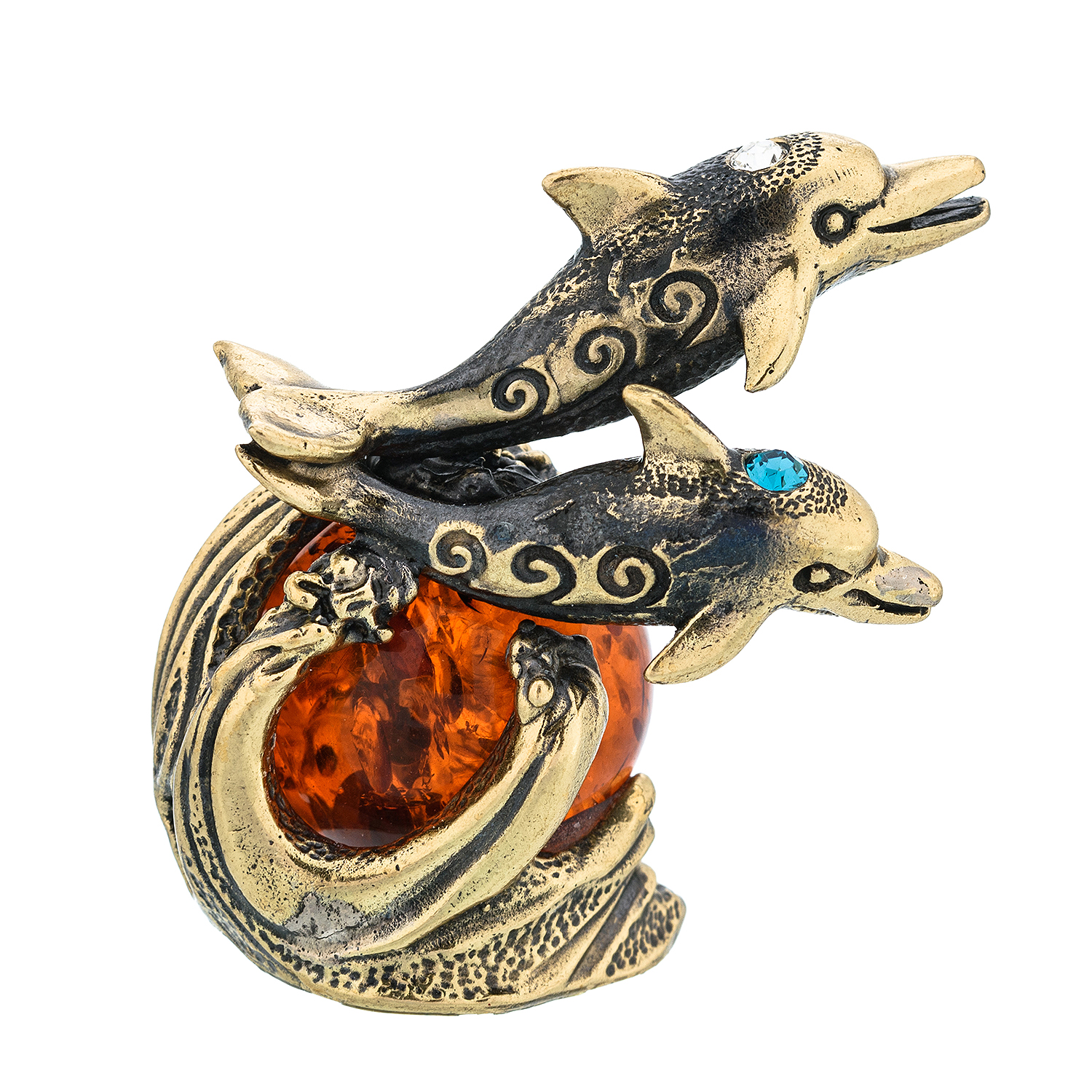 Статуэтка с янтарем "Дельфины".Материалы: латунь, янтарь.