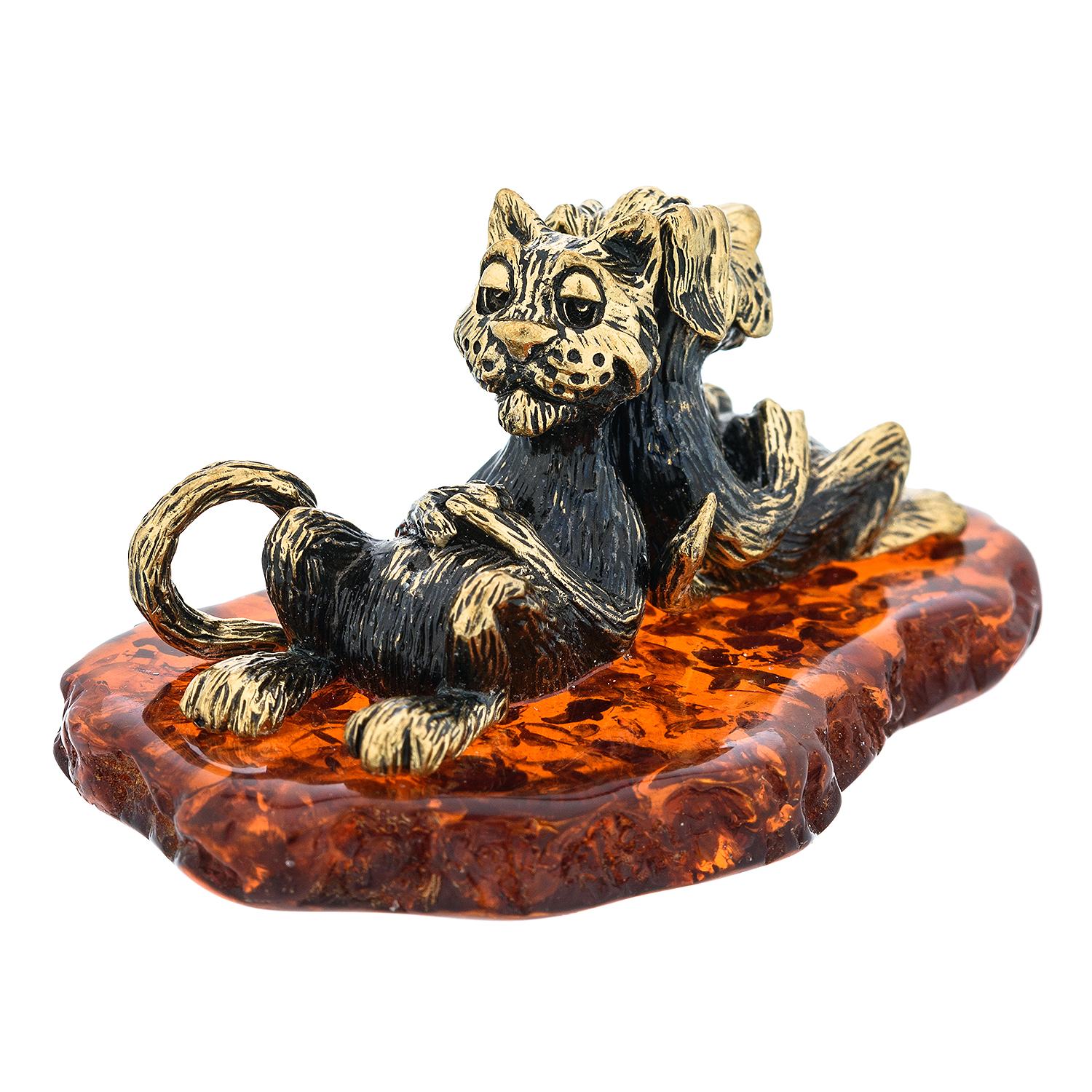 Статуэтка с янтарем "Кот и пес. Жизнь удалась"
