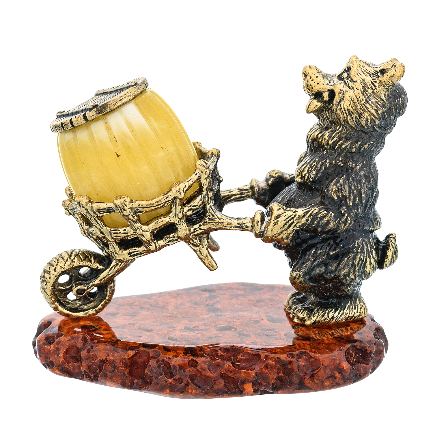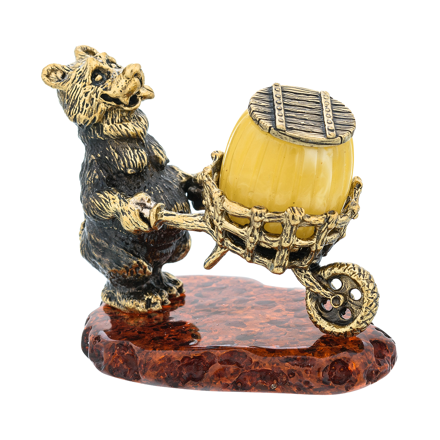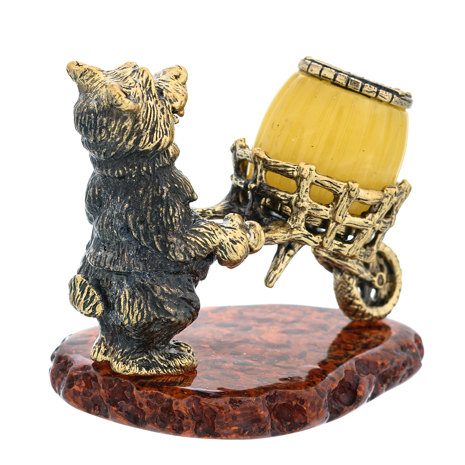Статуэтка с янтарем "Запасливый медведь с тележкой"