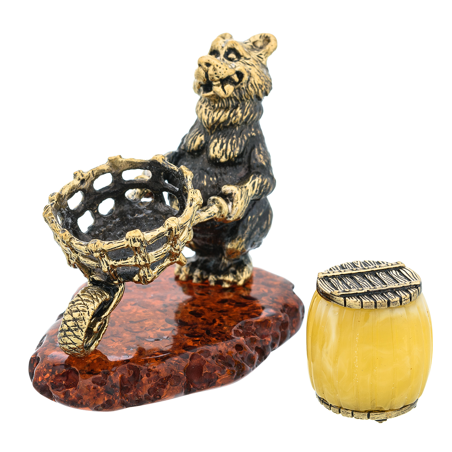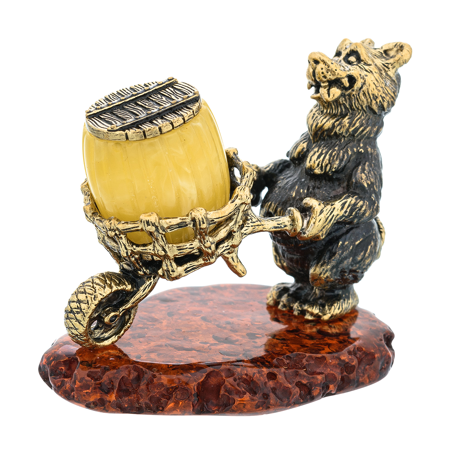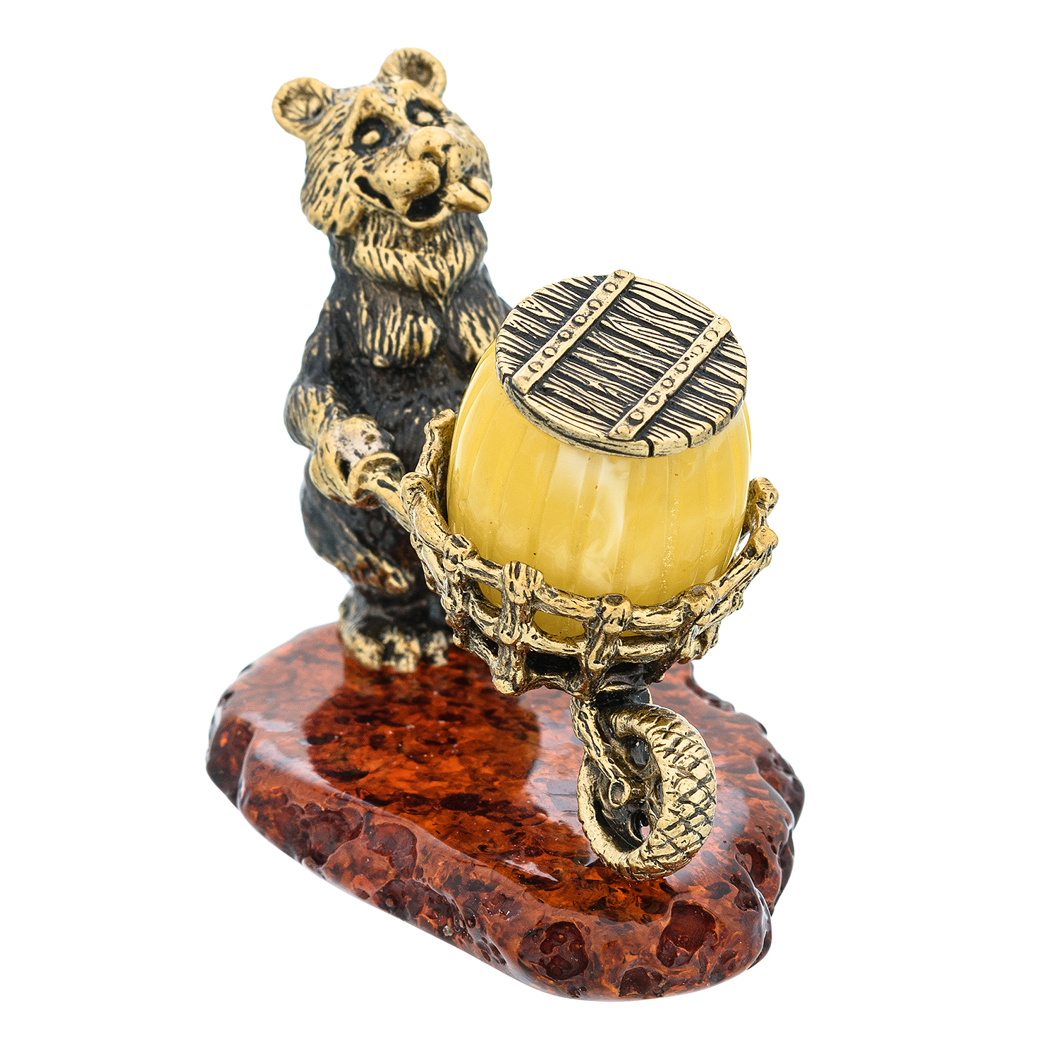 Статуэтка с янтарем "Запасливый медведь с тележкой"