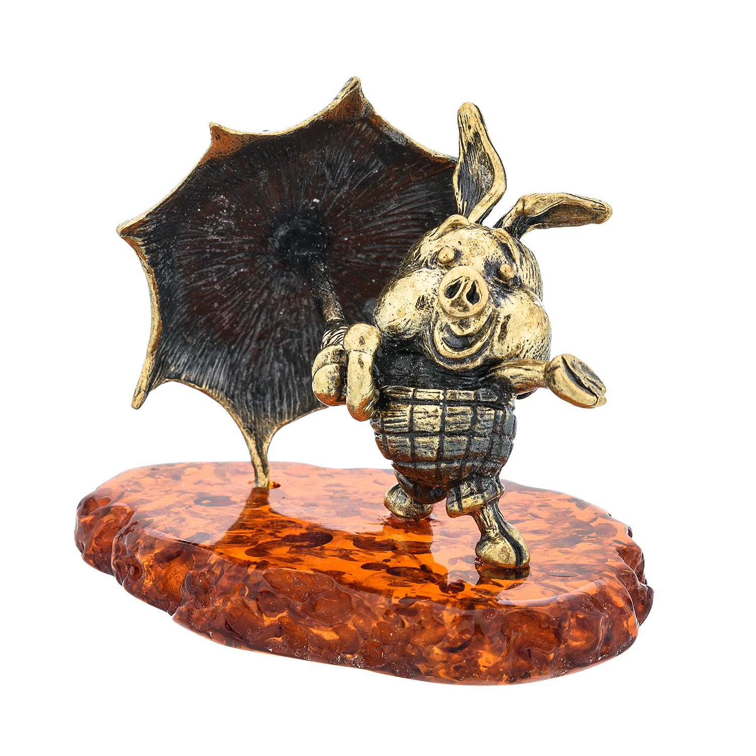 Статуэтка с янтарем "Поросенок Пятачок с зонтиком"