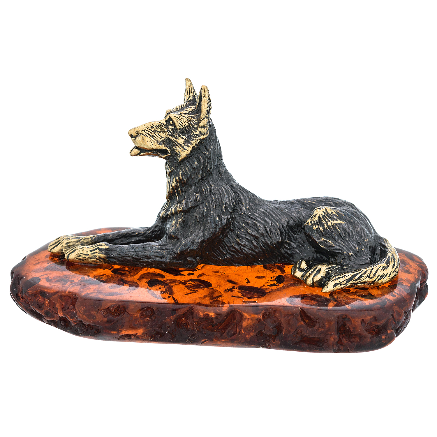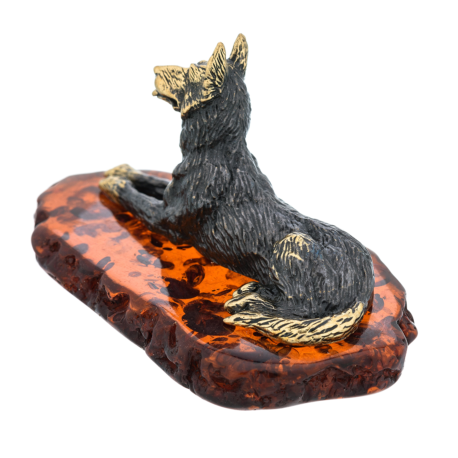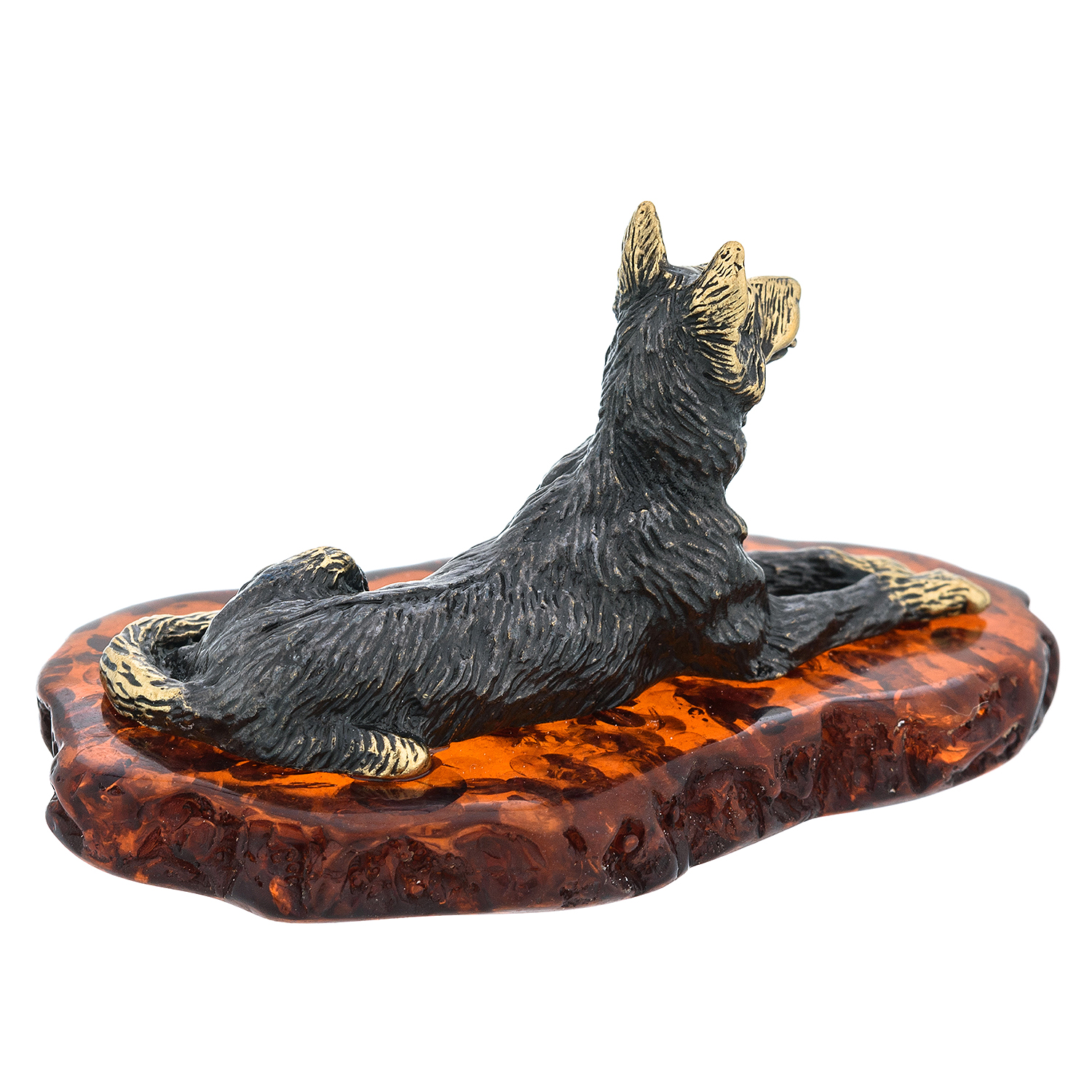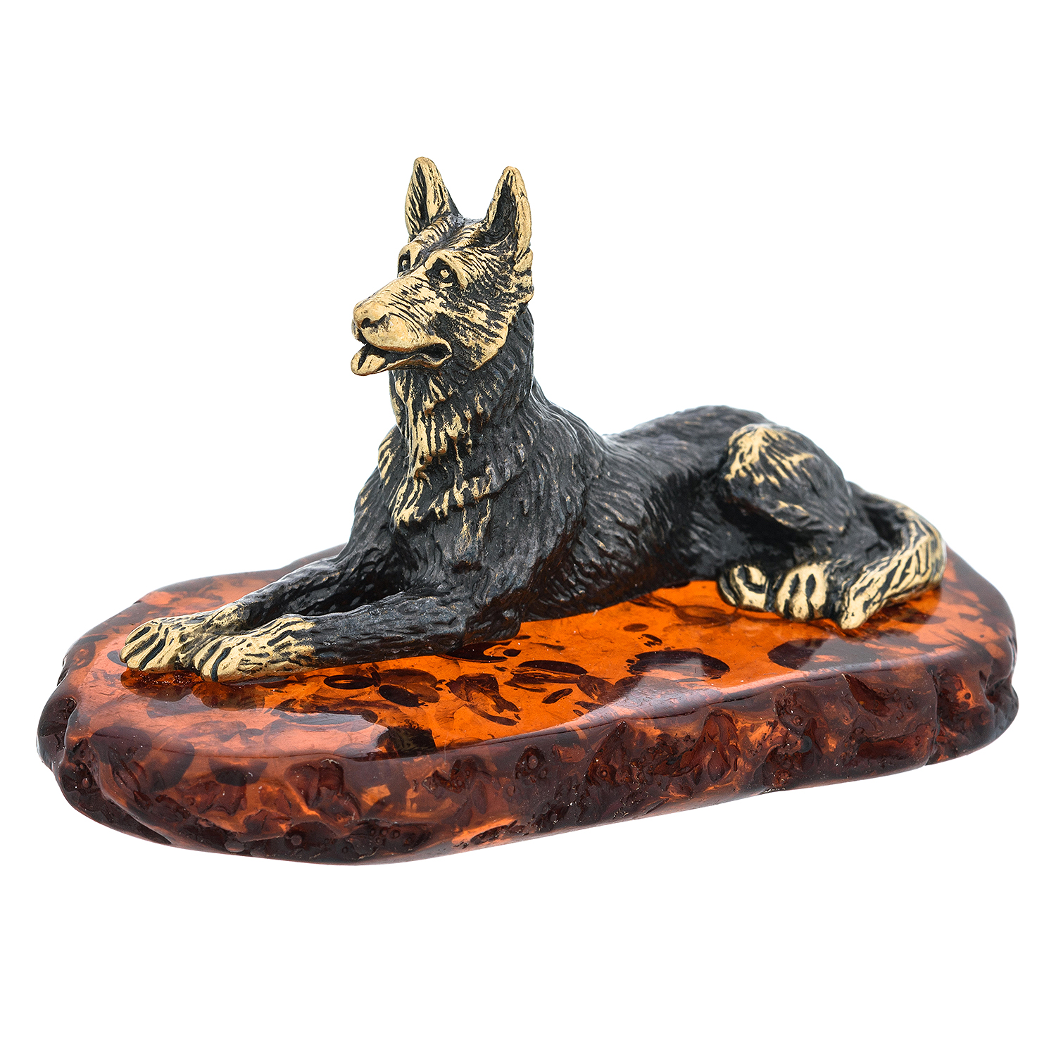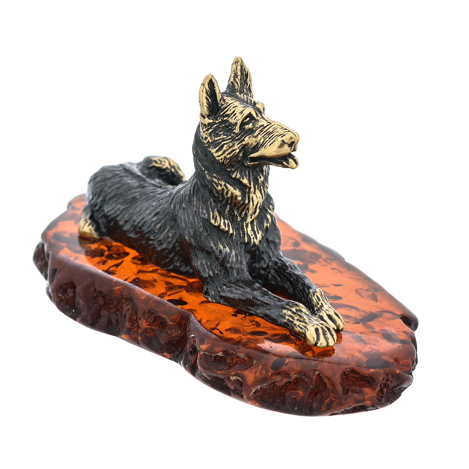 Статуэтка с янтарем "Собака Овчарка".Материалы: янтарь, бронза.