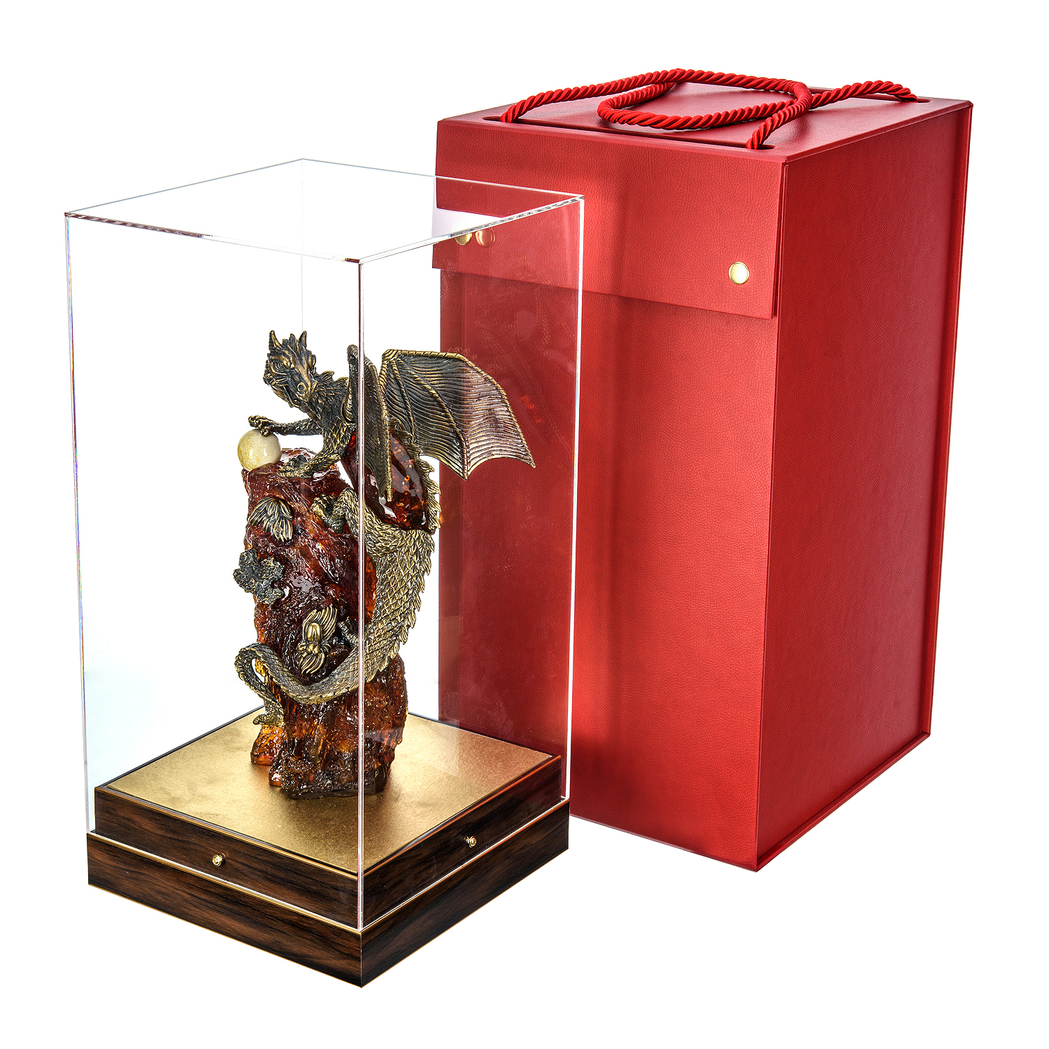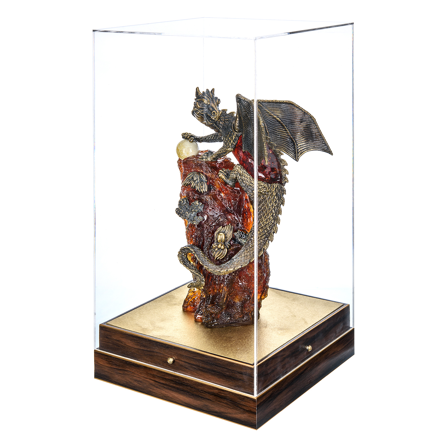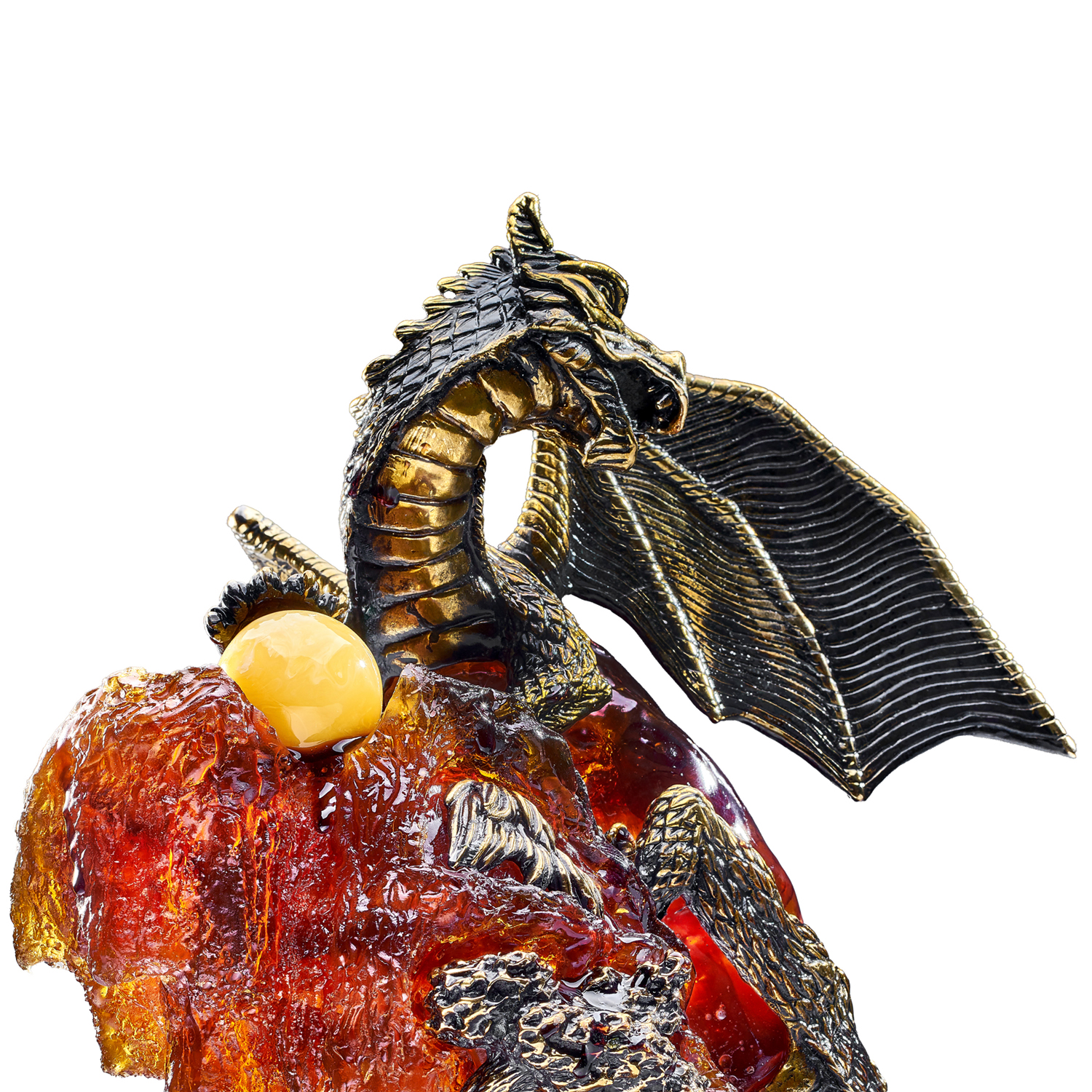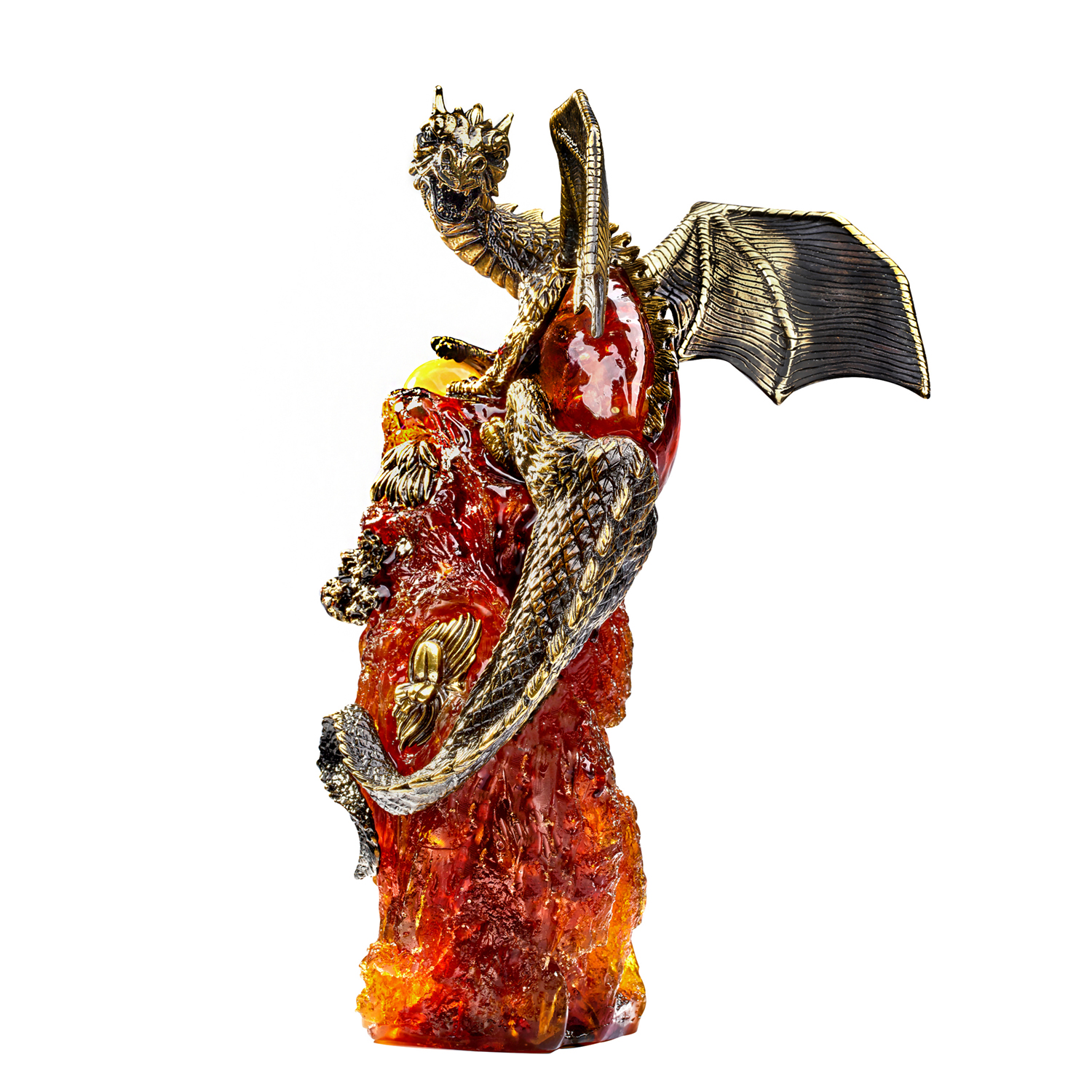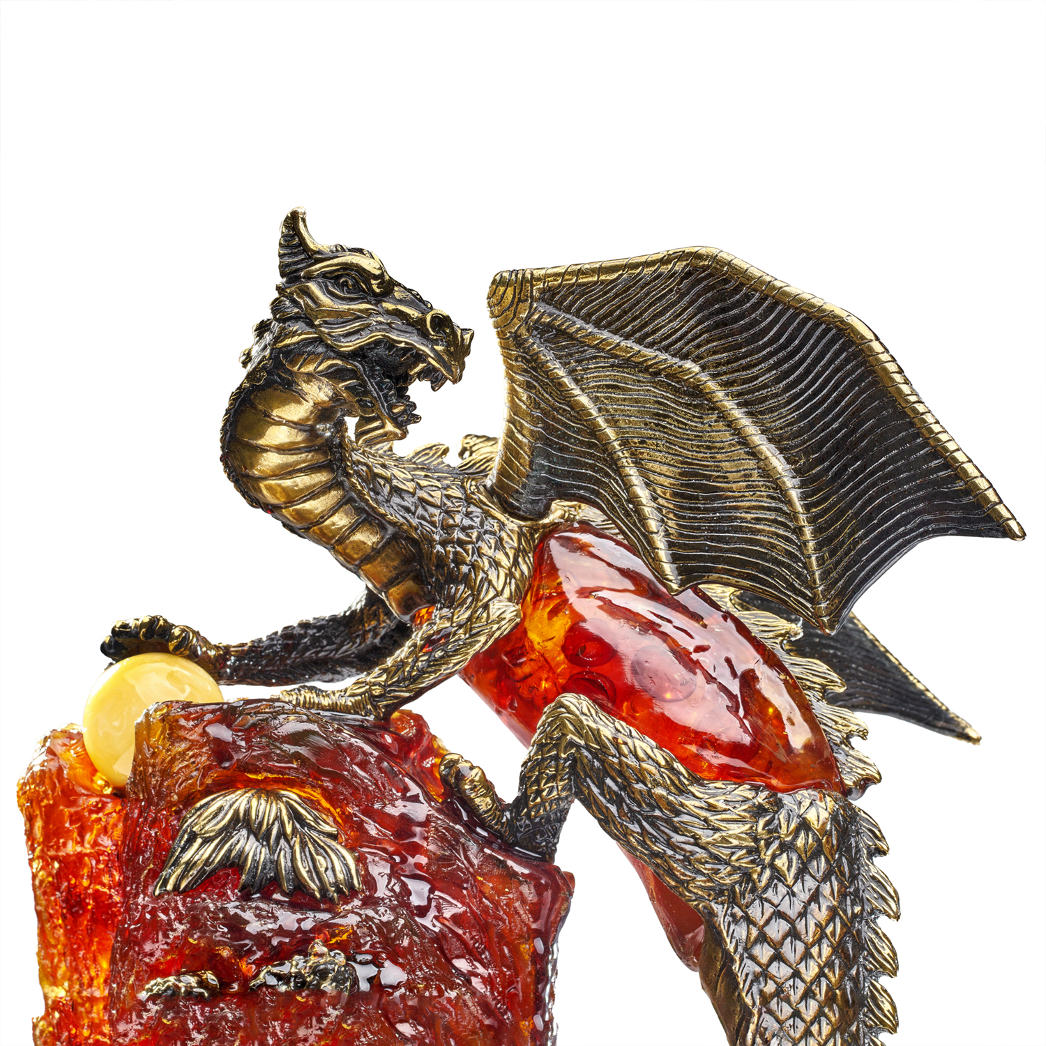 Скульптура из бронзы и янтаря "Дракон на скале"