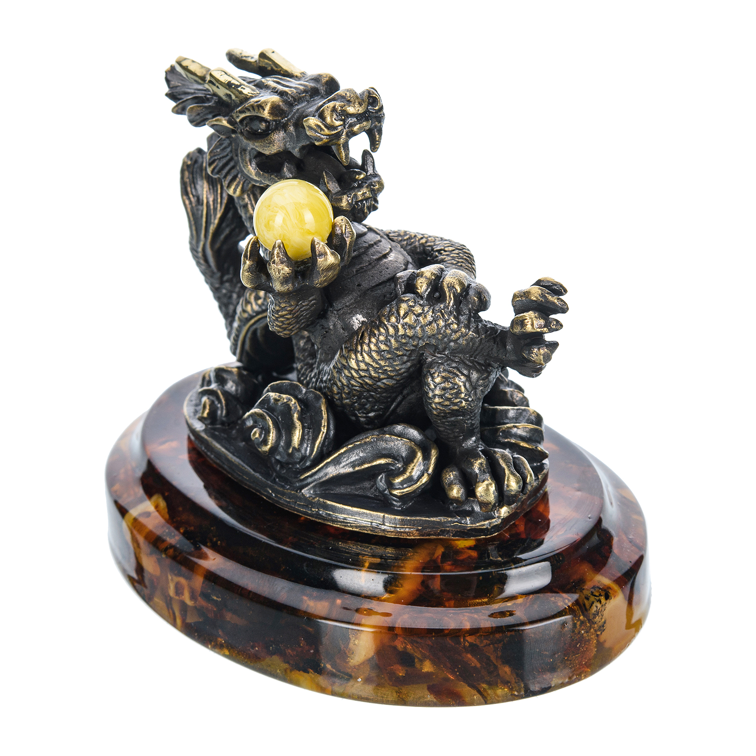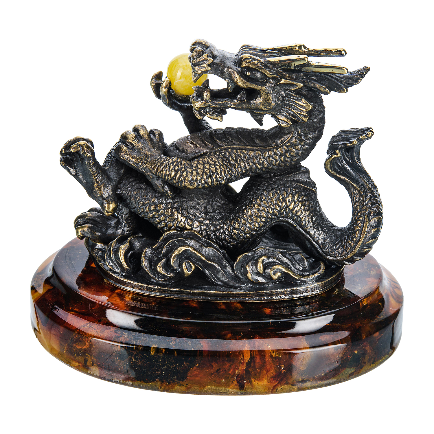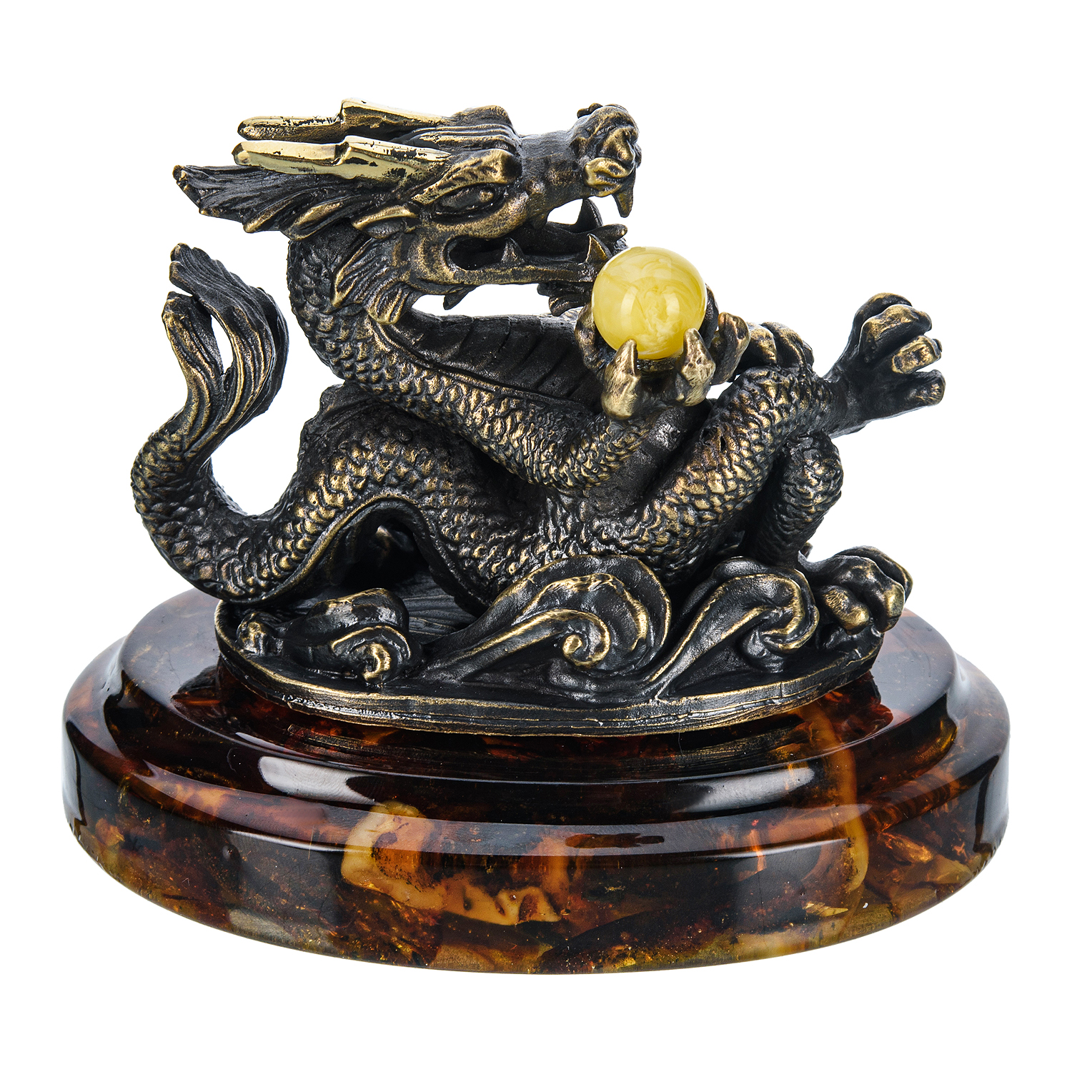 Статуэтка из бронзы и янтаря "Блатной китайский дракон"