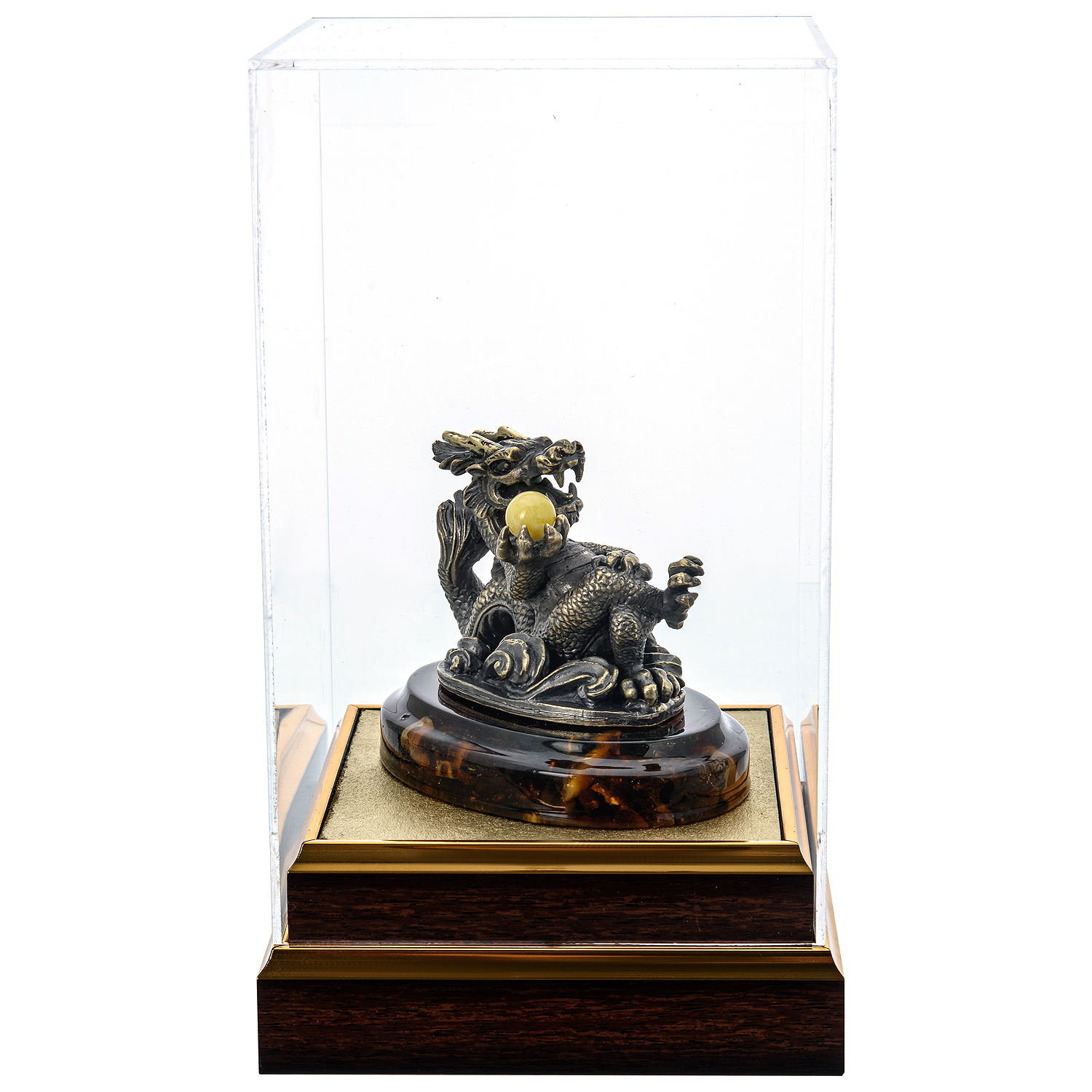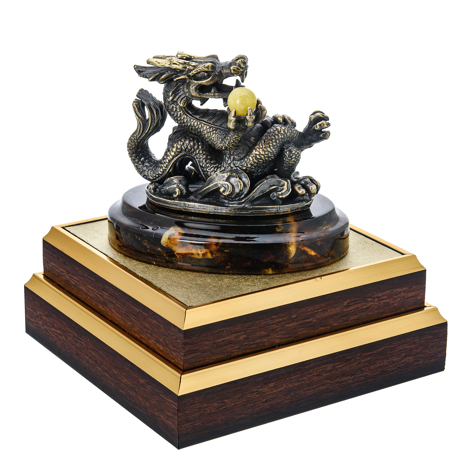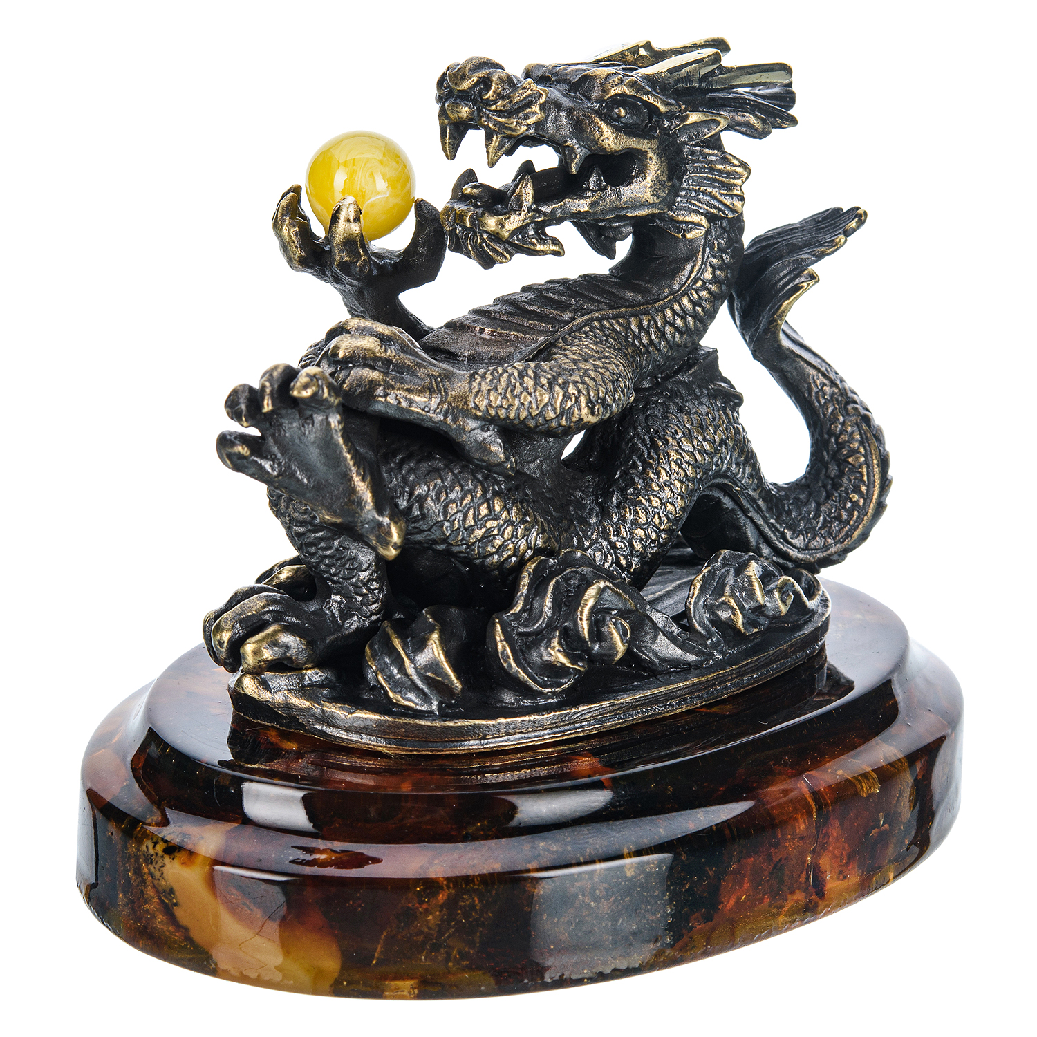 Статуэтка из бронзы и янтаря "Блатной китайский дракон"