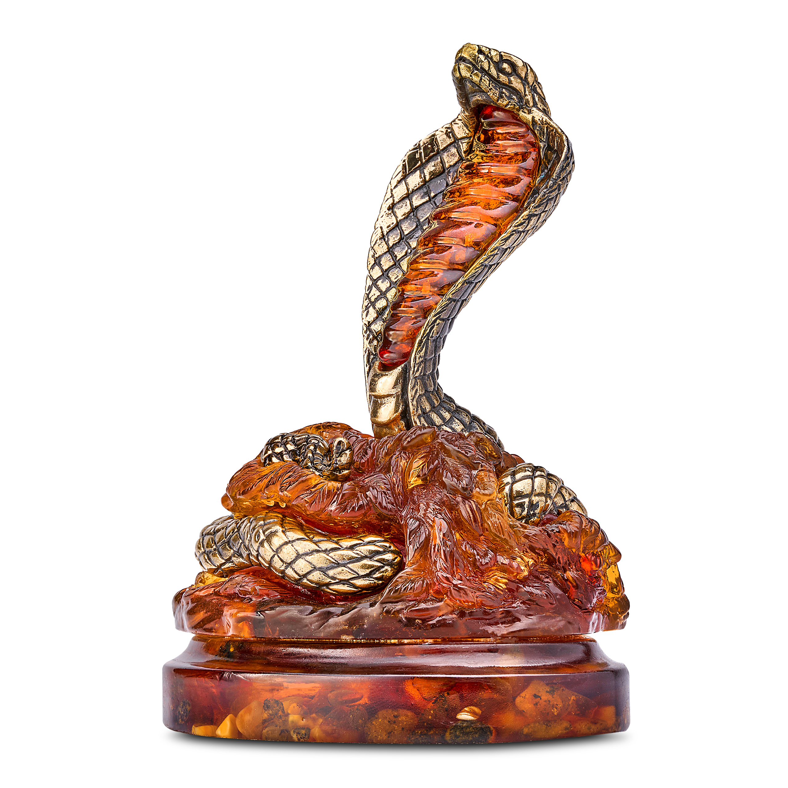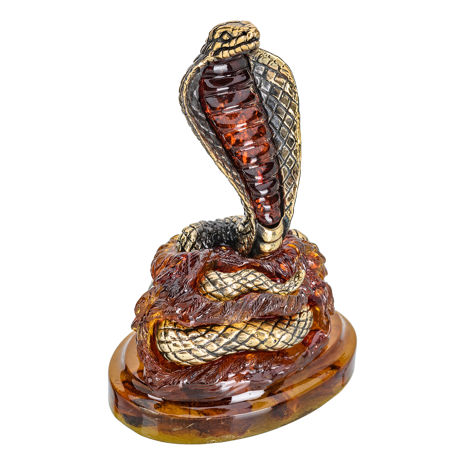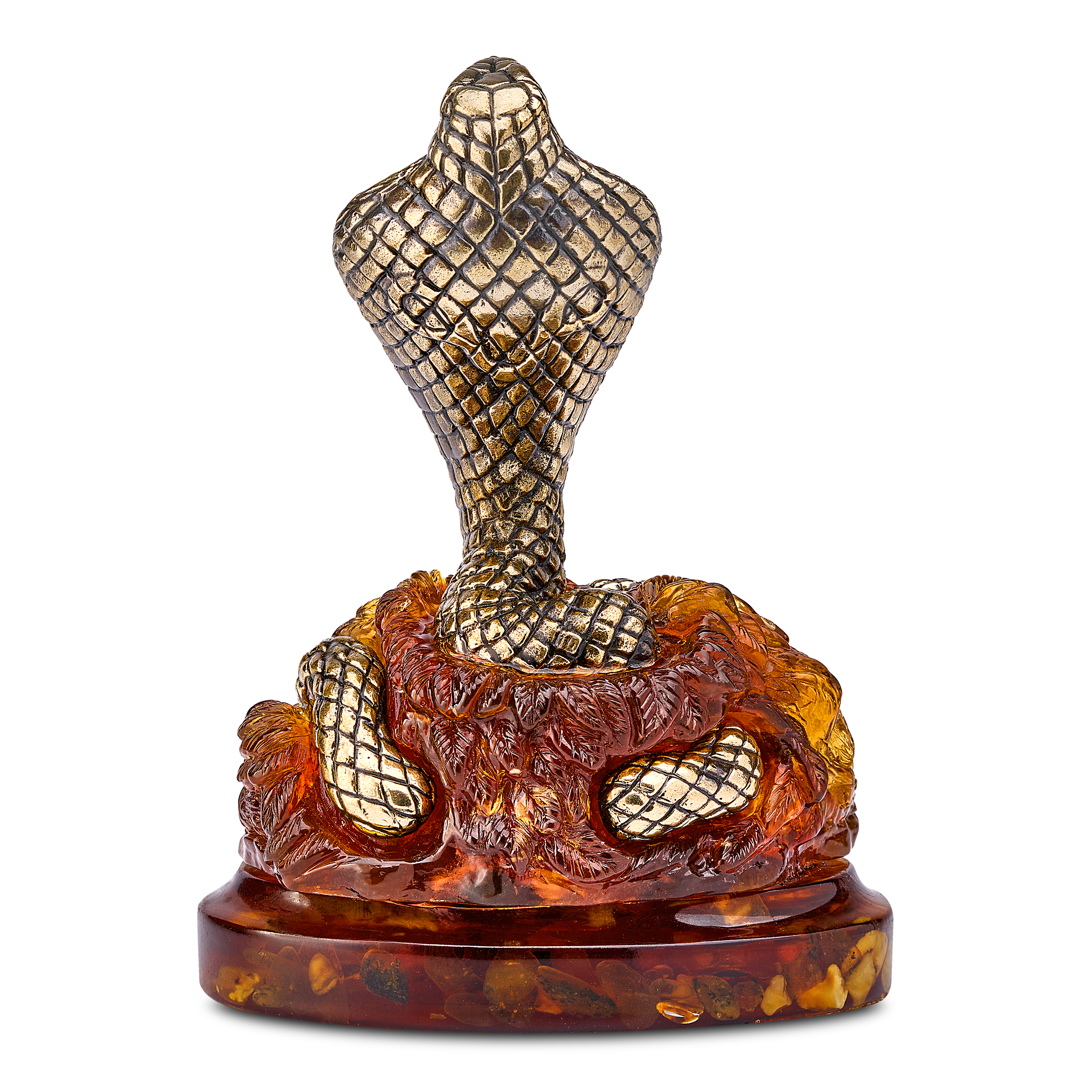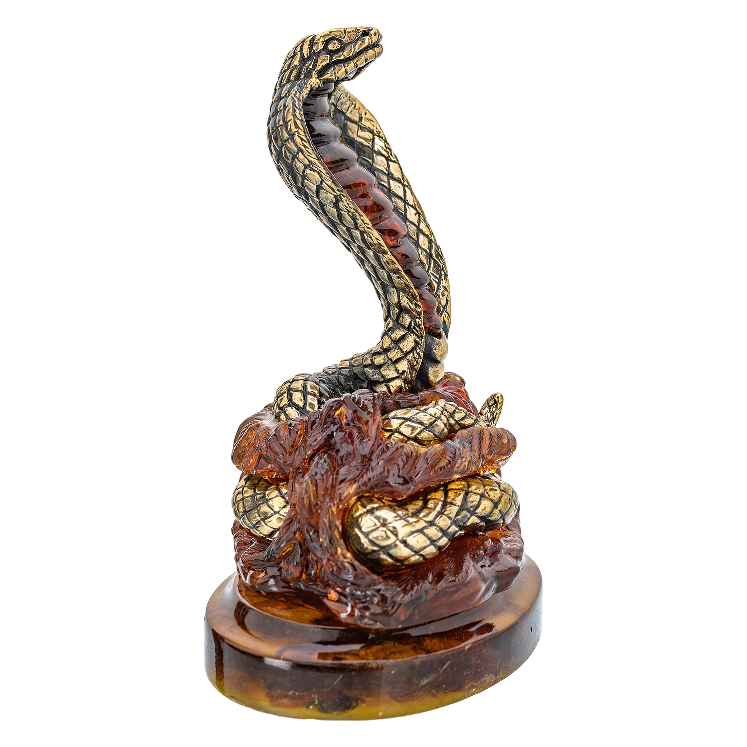 Змея Символ года 2025. Сувенир из бронзы и янтаря "Королевская кобра"