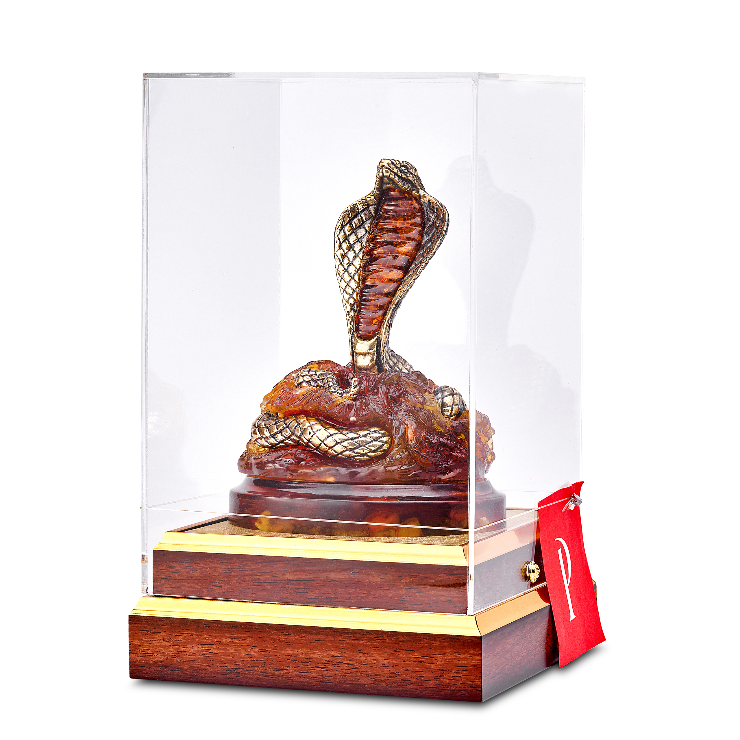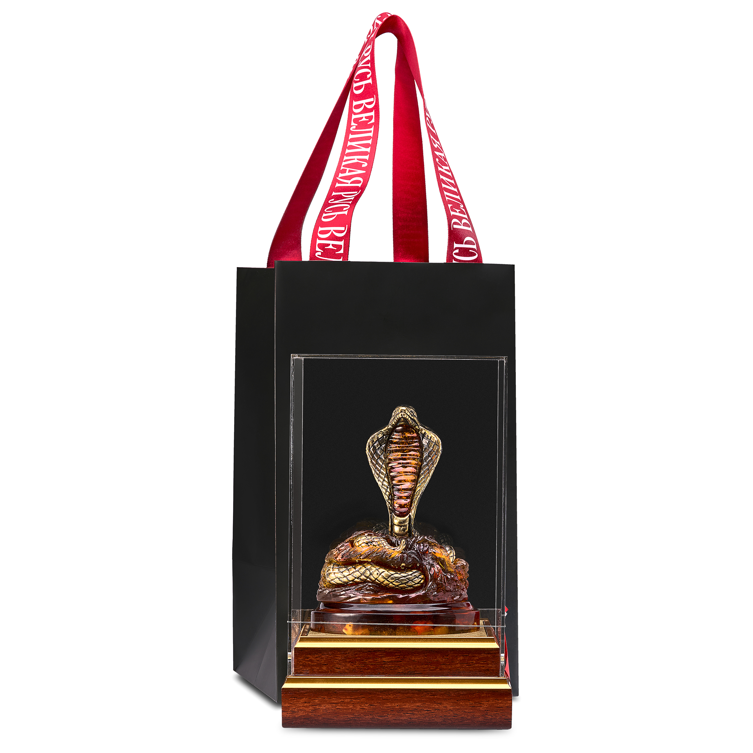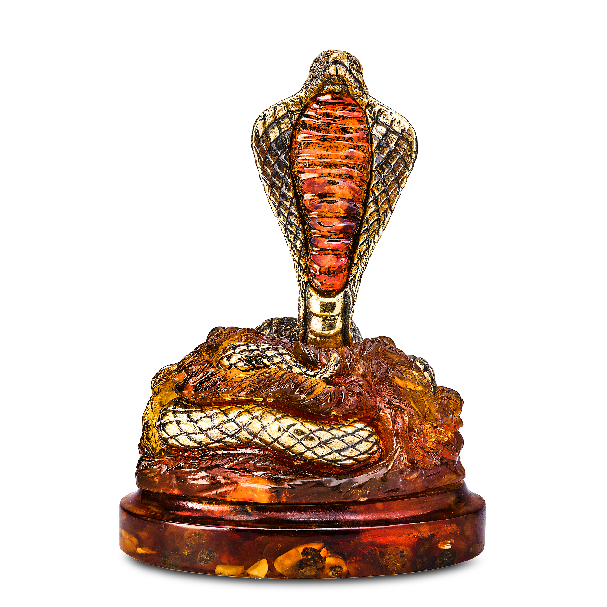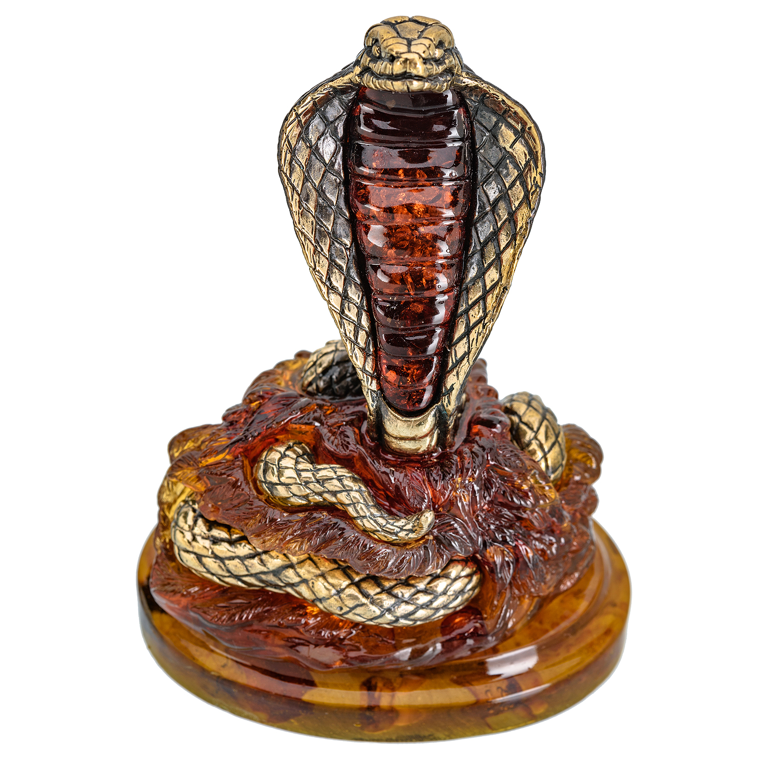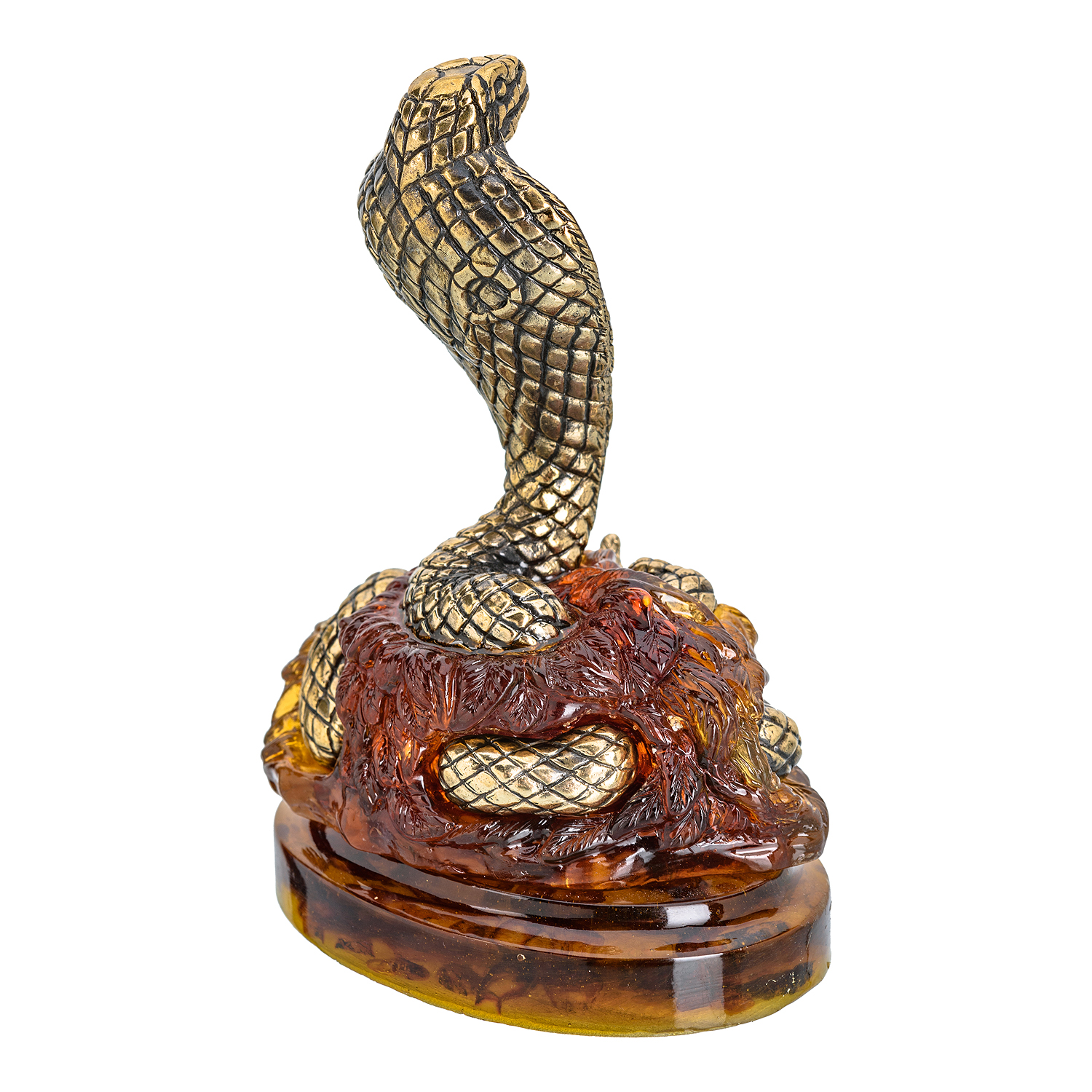 Змея Символ года 2025. Сувенир из бронзы и янтаря "Королевская кобра"