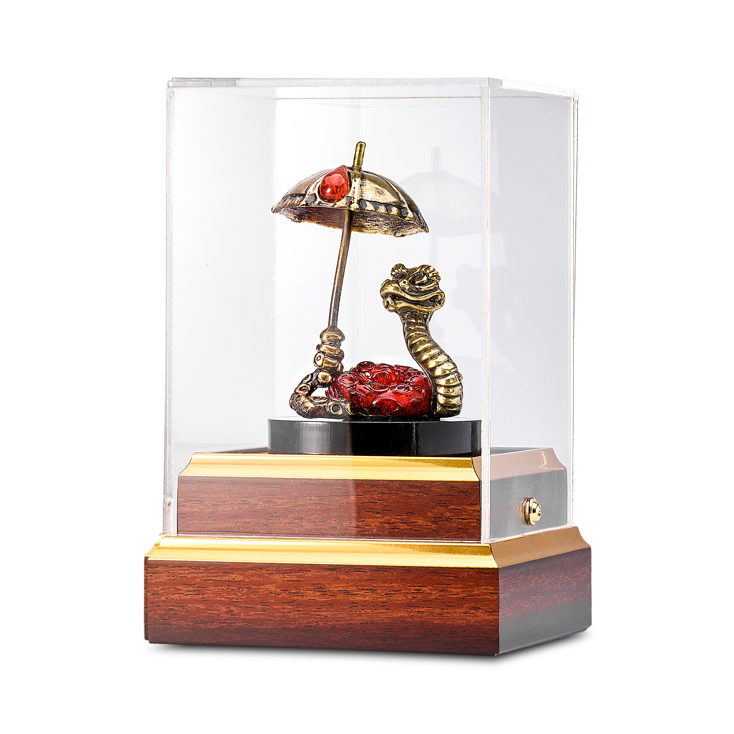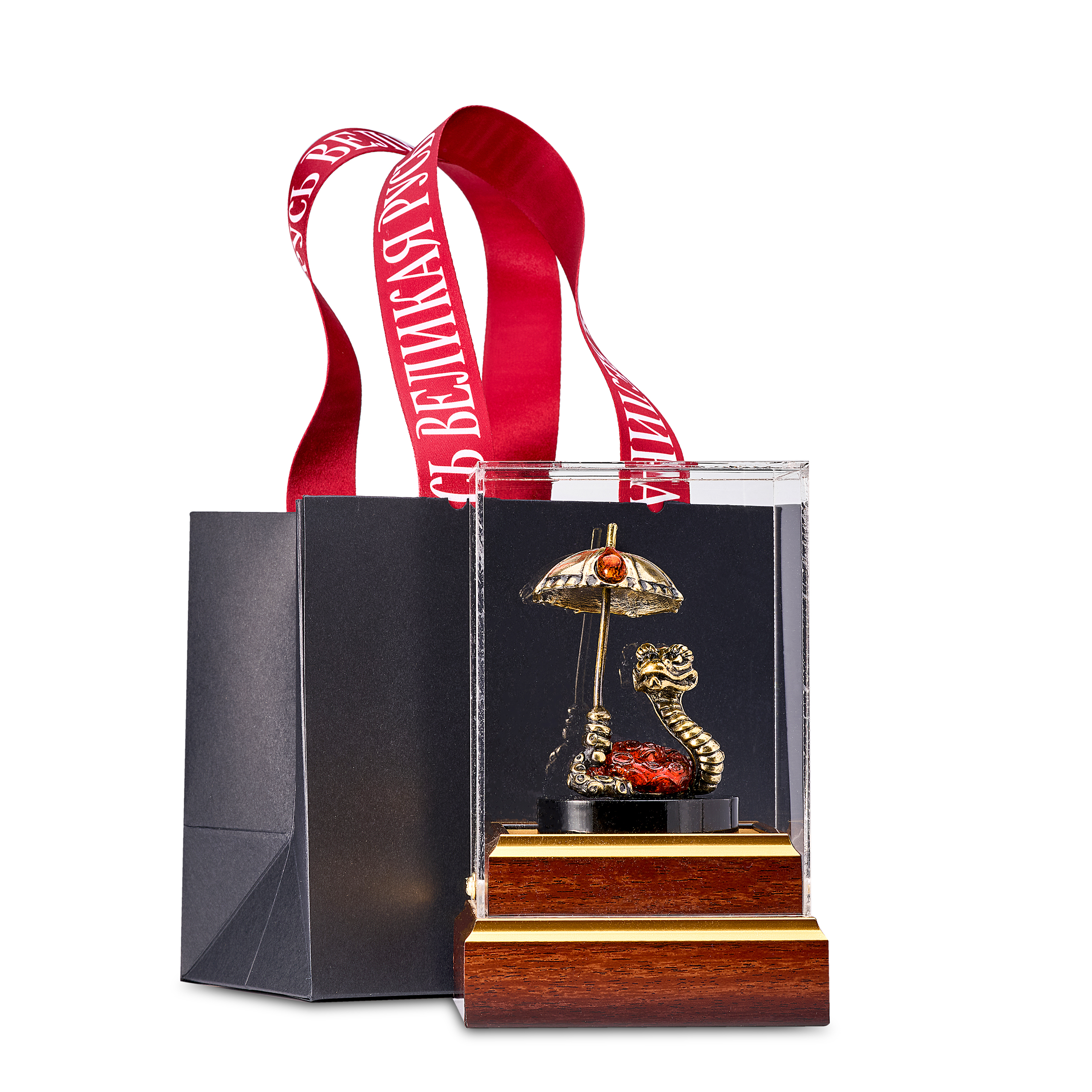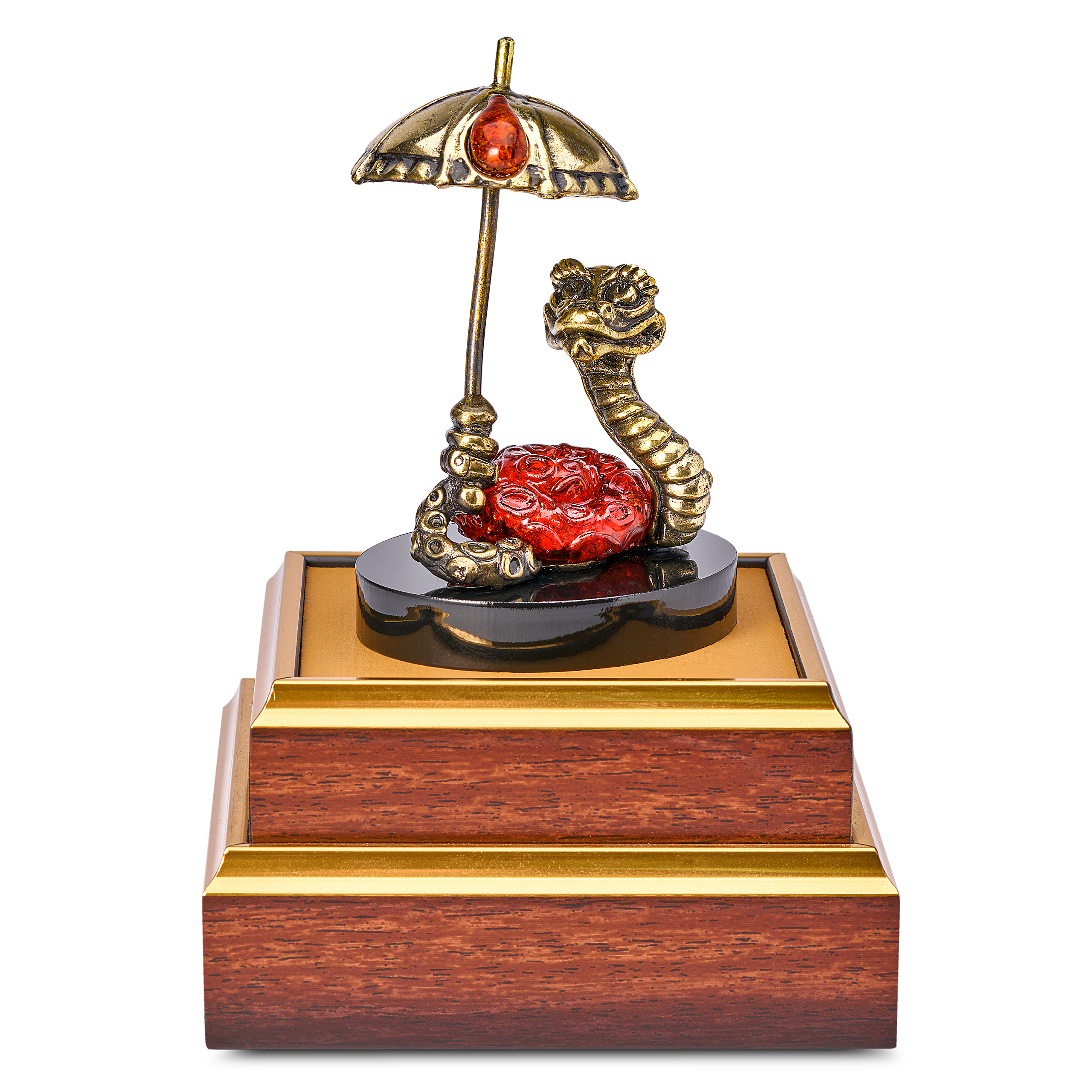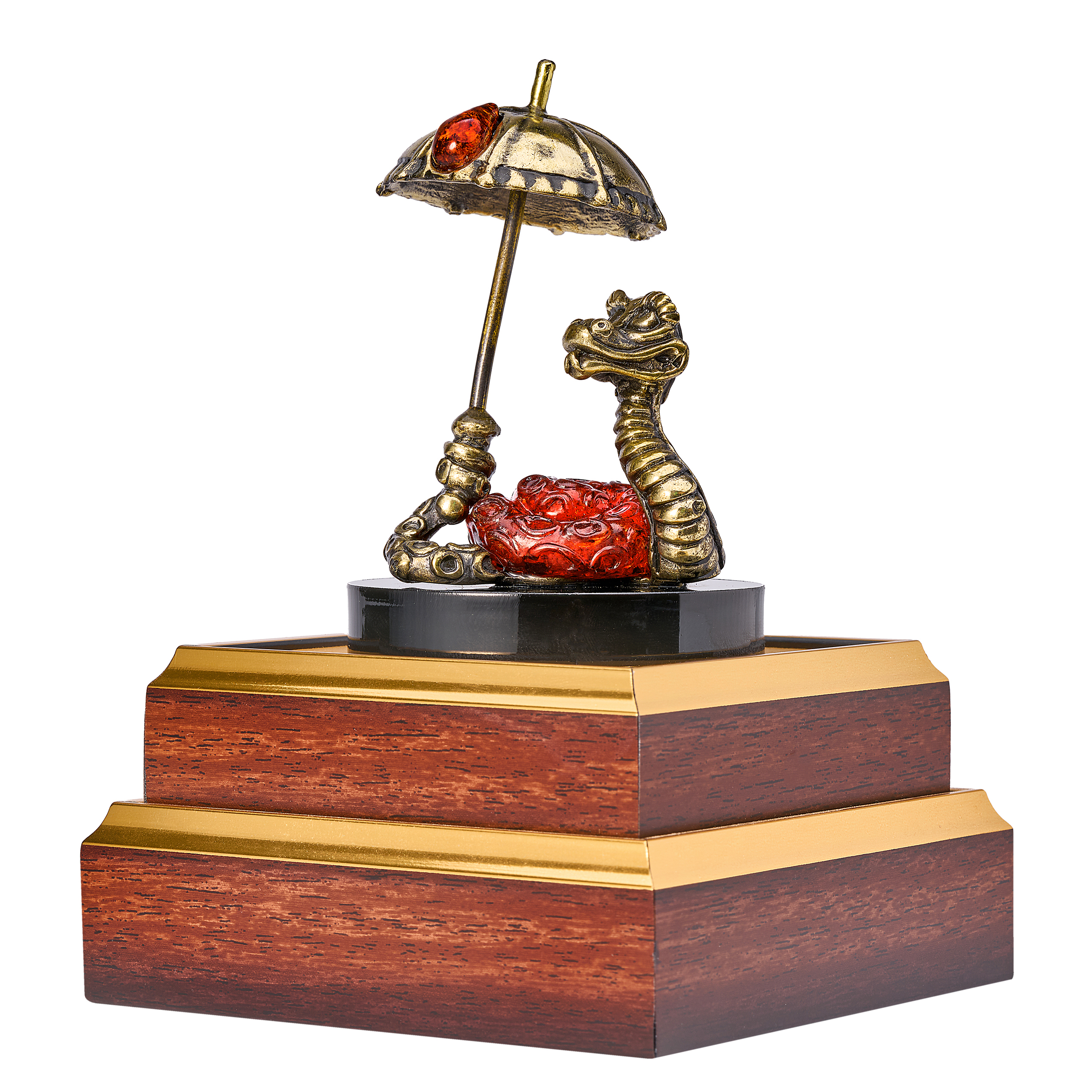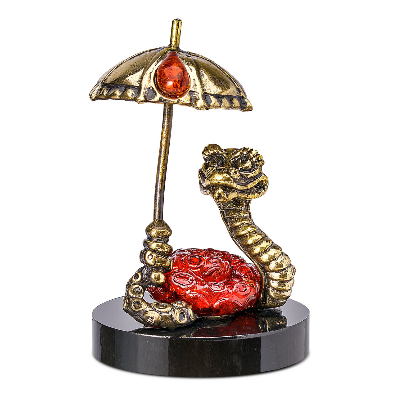Змея Символ года 2025. Сувенир из бронзы и янтаря "Змея с зонтом"