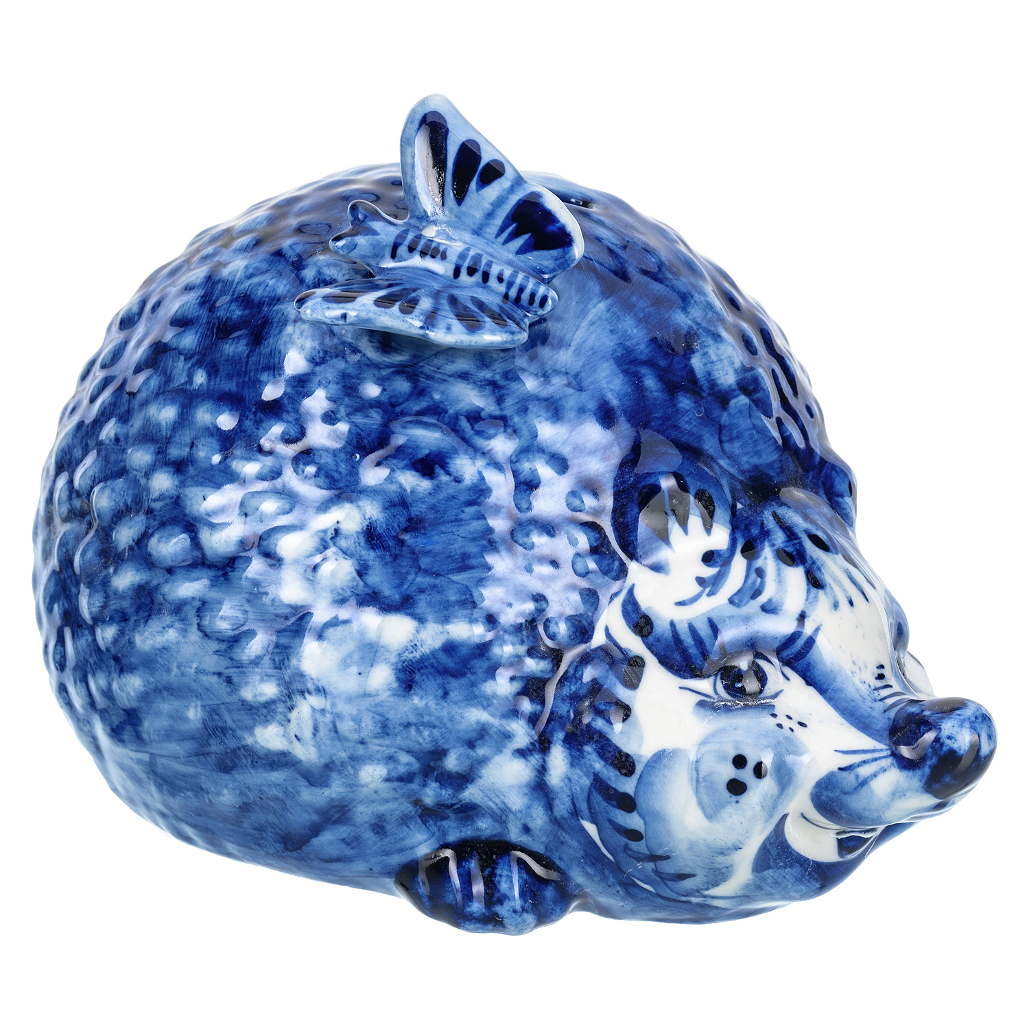 Статуэтка-копилка "Еж с бабочкой". Гжель