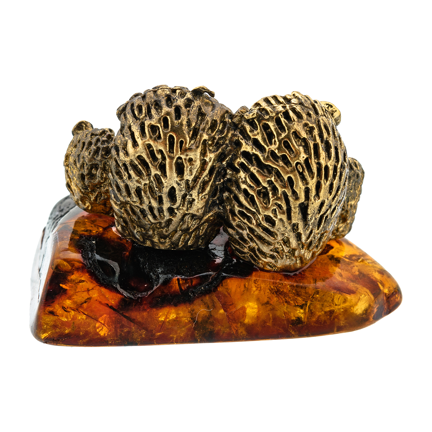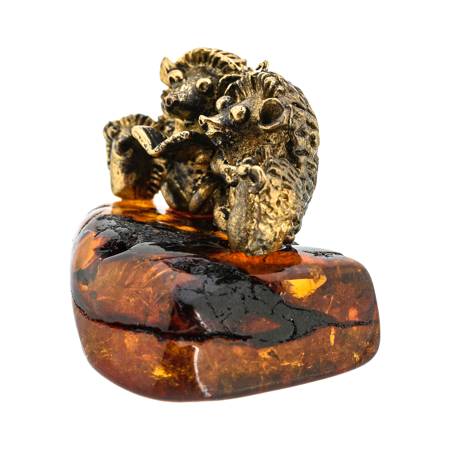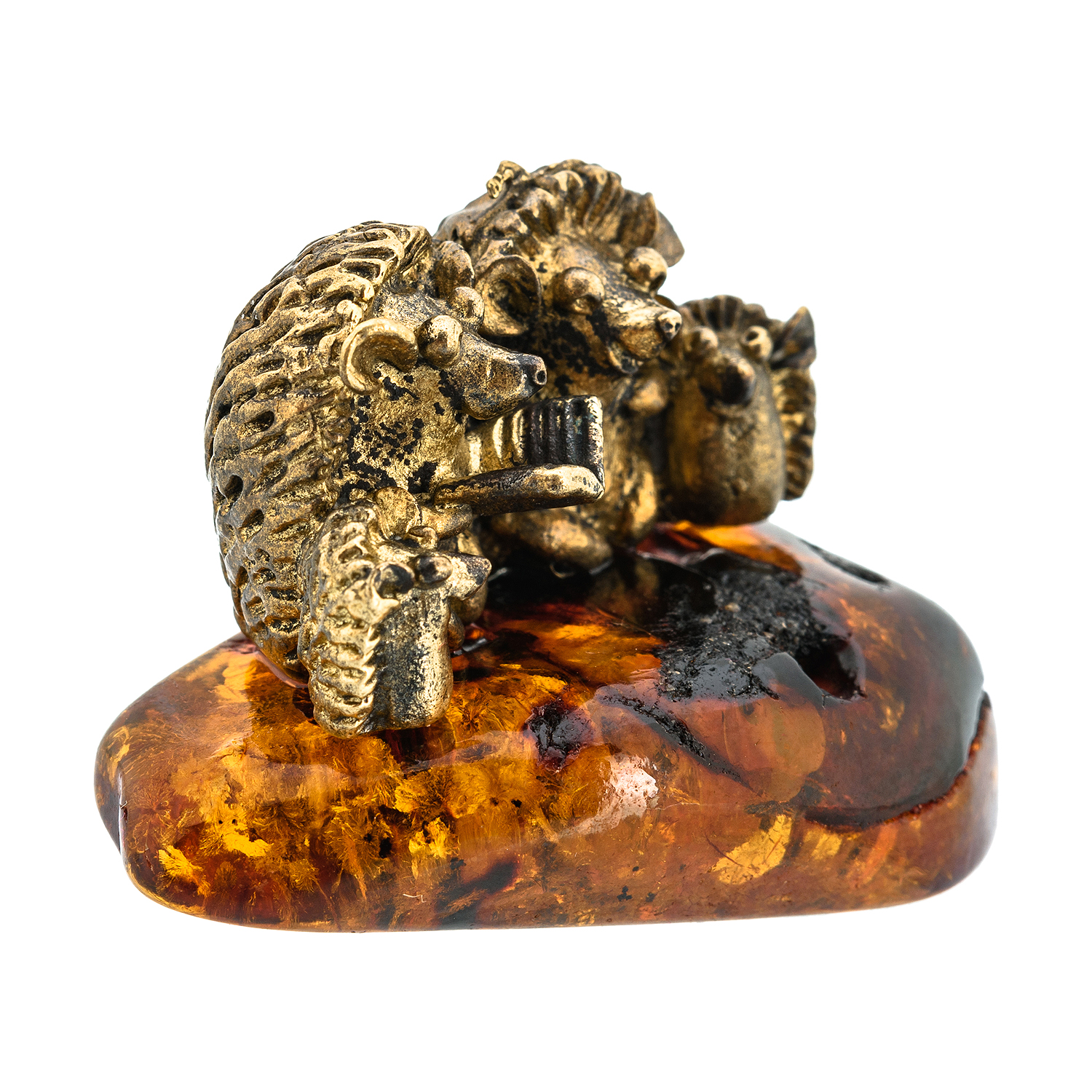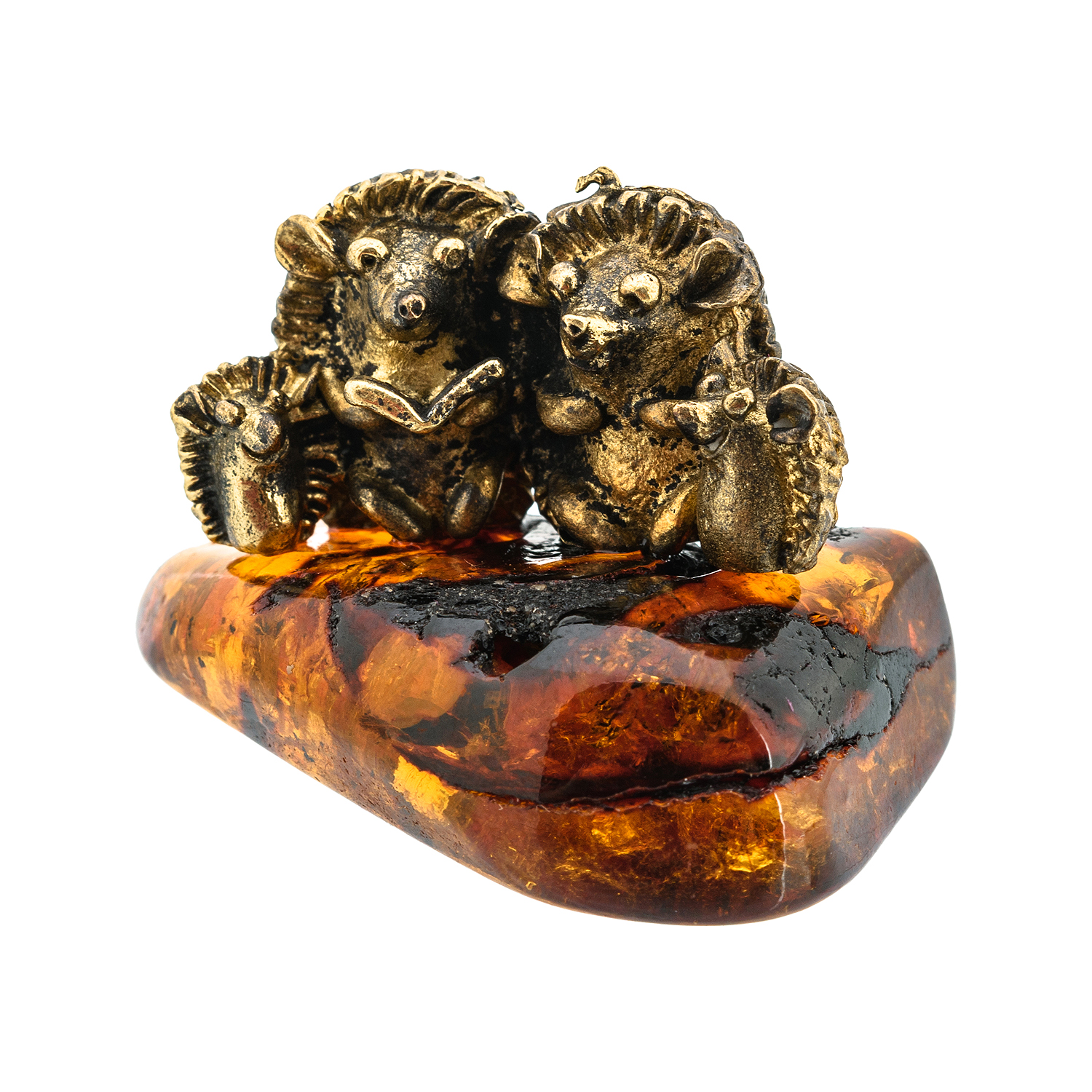 Статуэтка с янтарем "Семья ежей"
