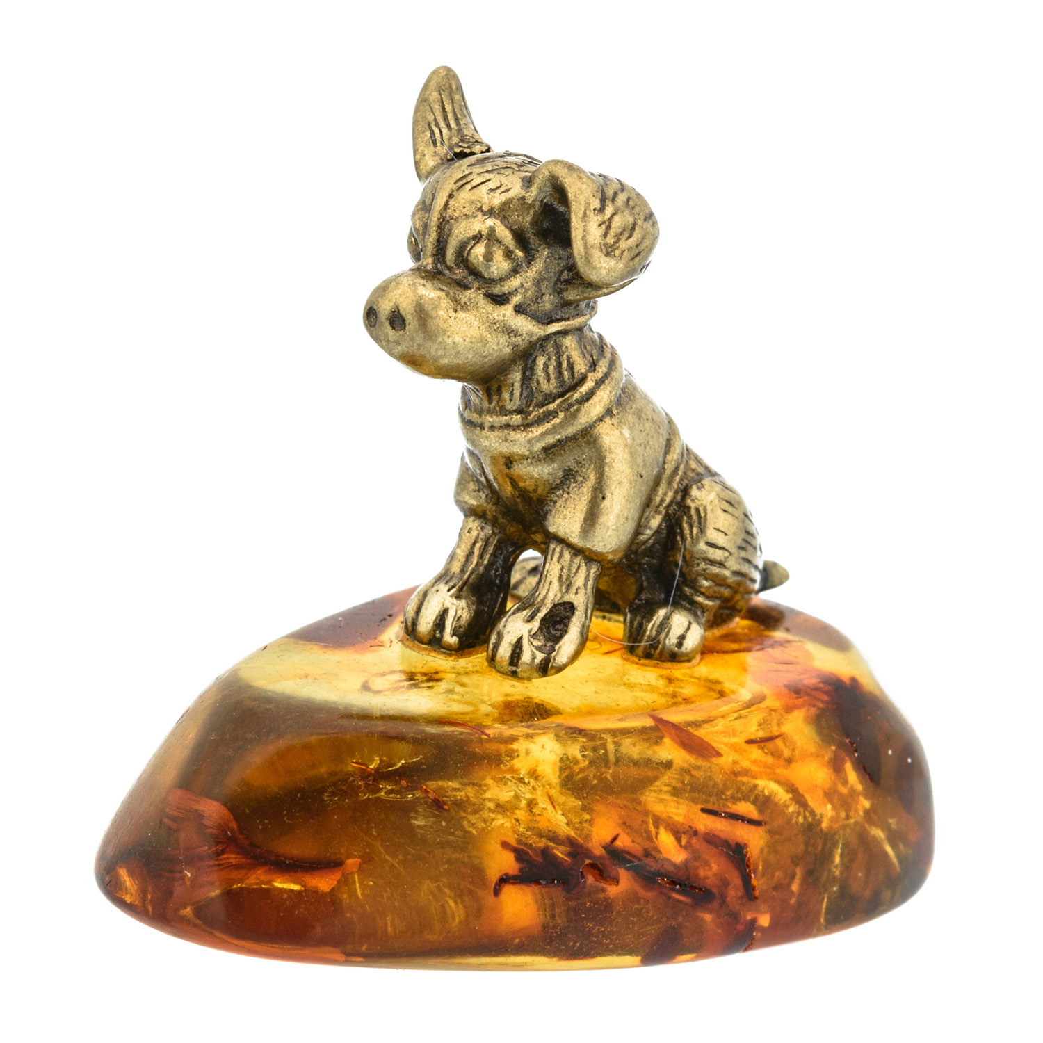 Русские подарки и сувениры → Интерьерные изделия → Статуэтки → Статуэтка с янтарем "Собака чихухуа в кофте"