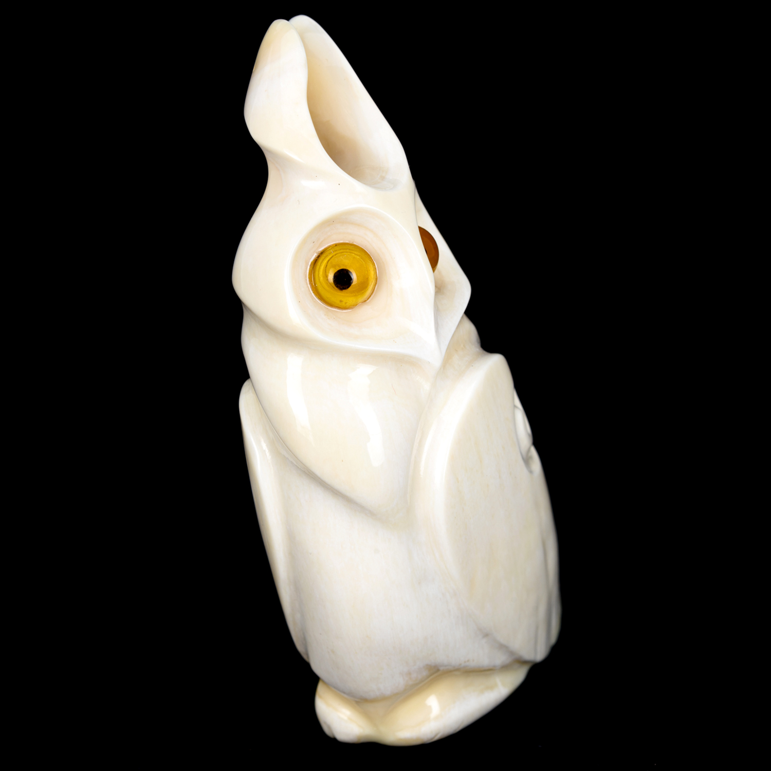 201754 Скульптура "Сова" кость кита, янтарь 7*3,5*11,5 см
