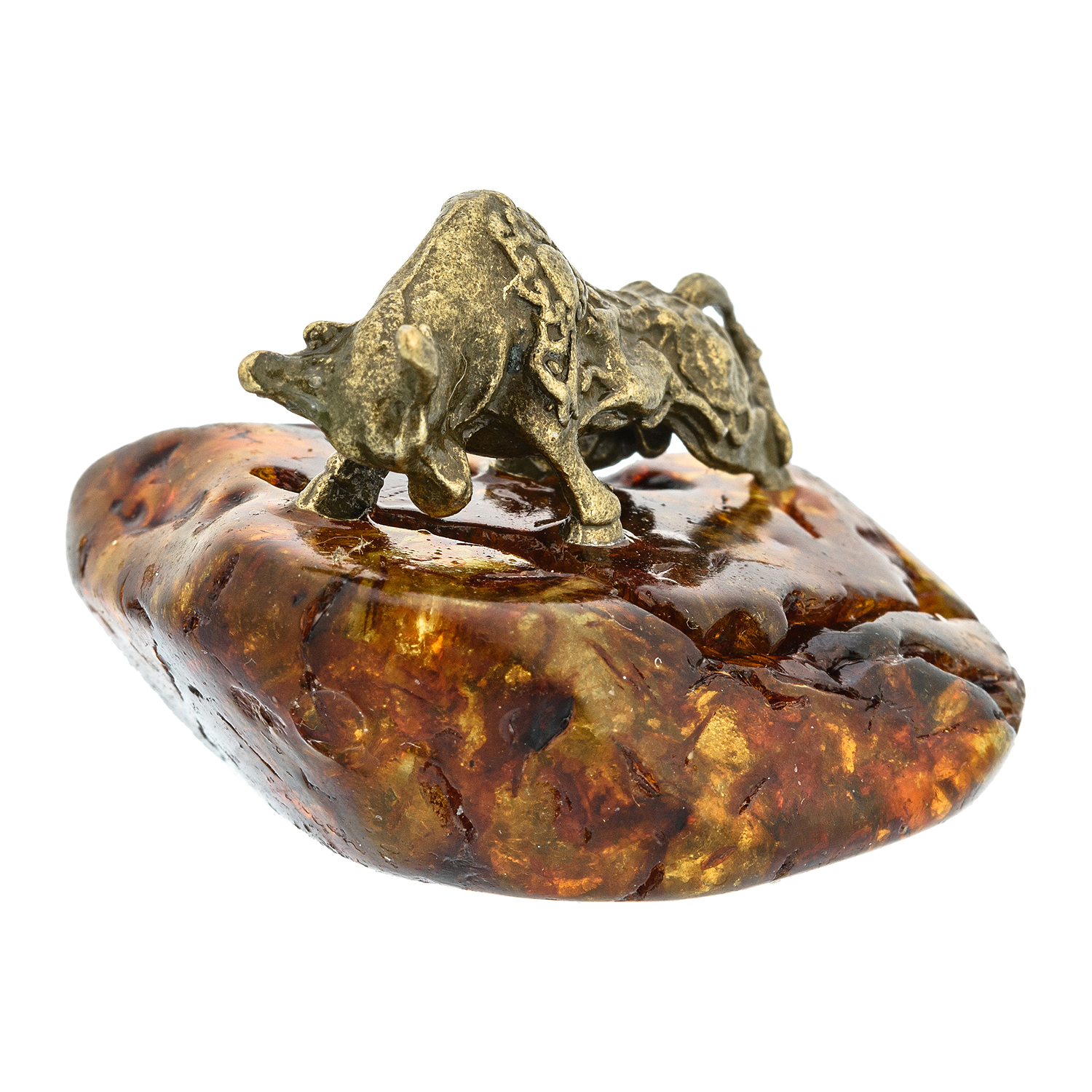 Статуэтка с янтарем "Бык атакует"