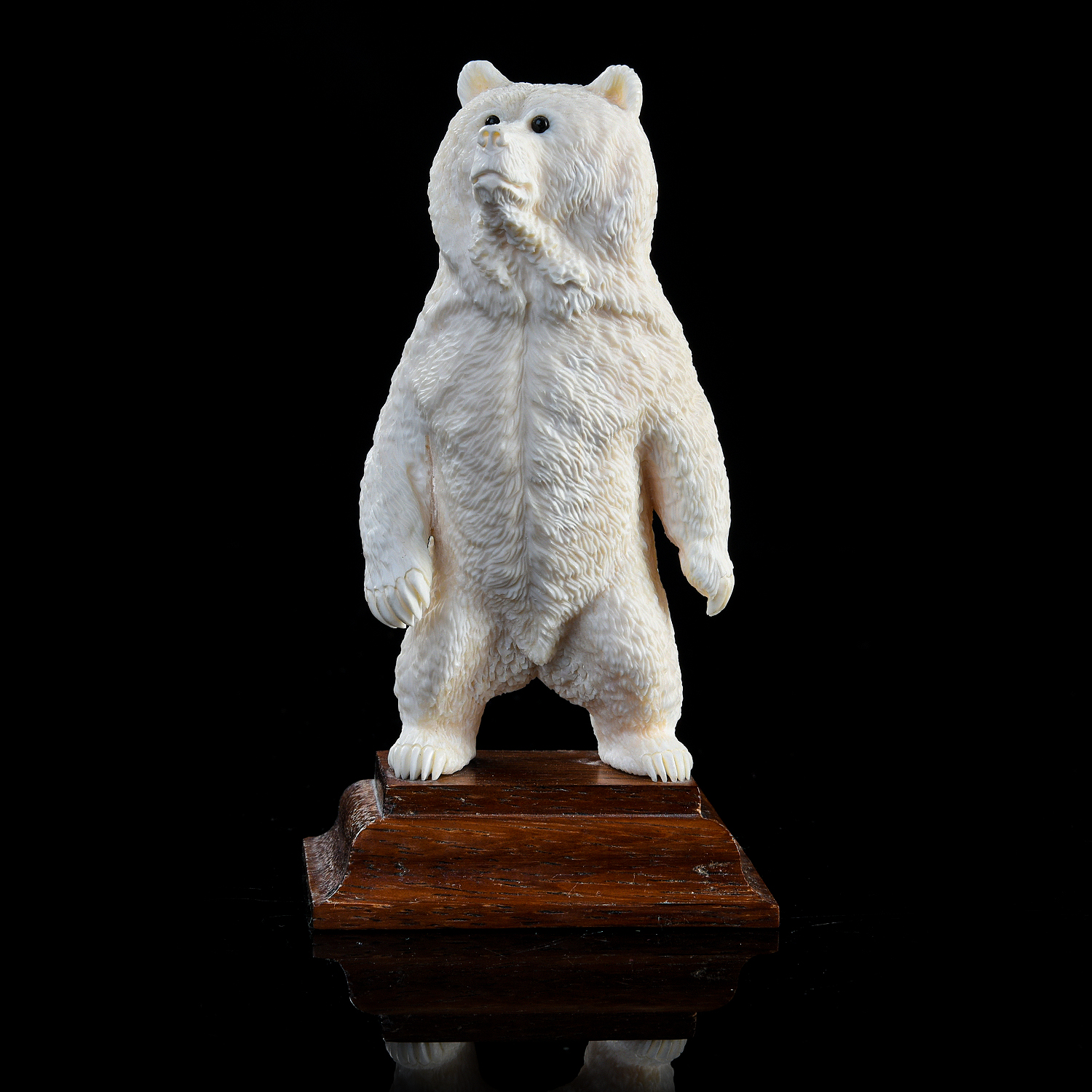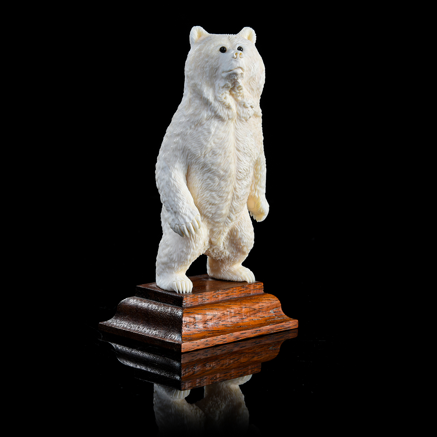 202250 Скульптура "Медведь" клык моржа, мербау,h=15см