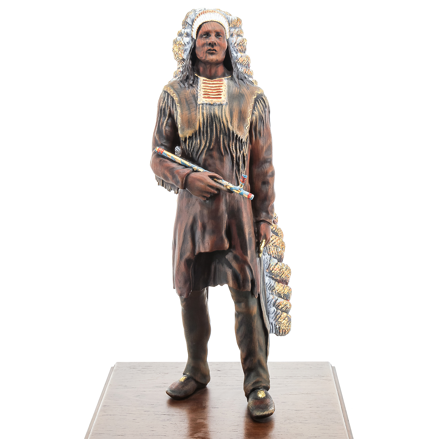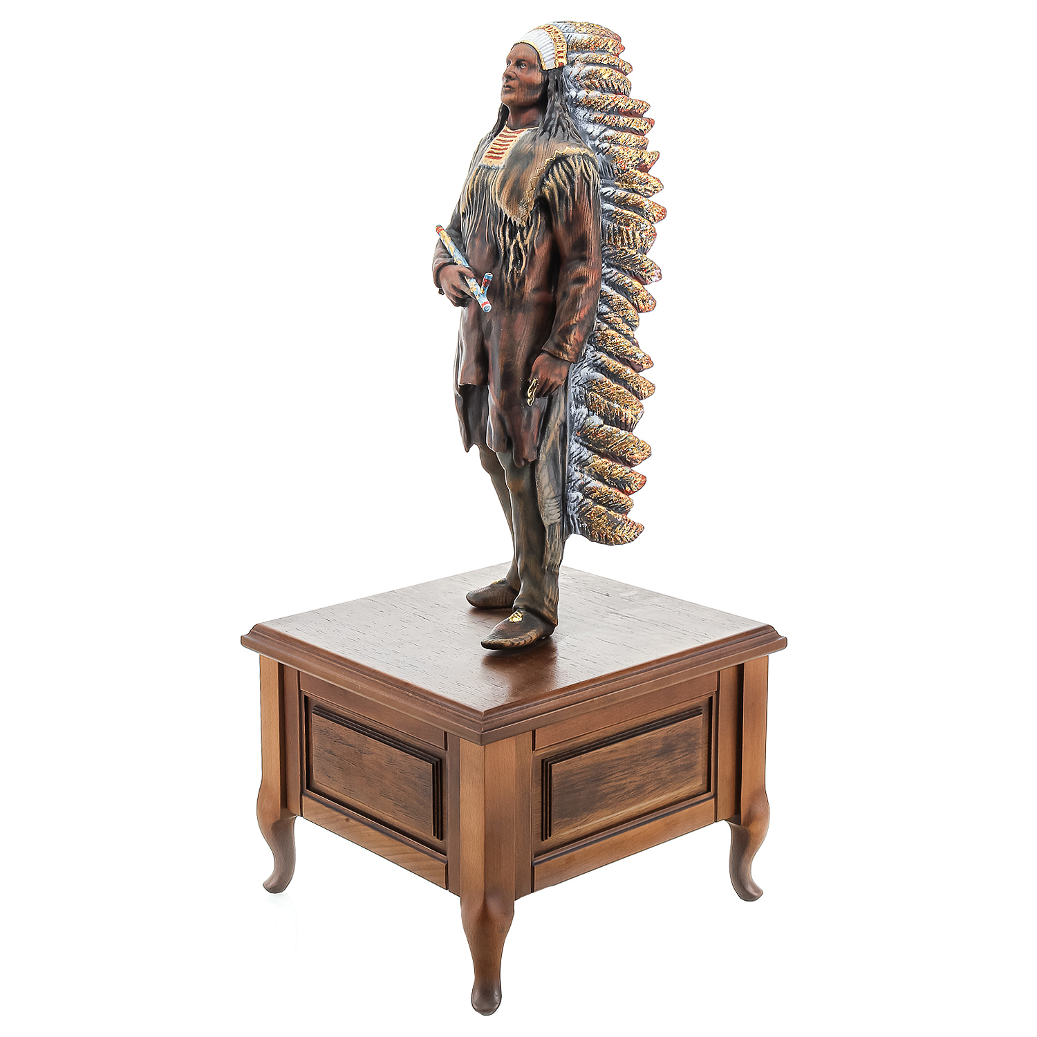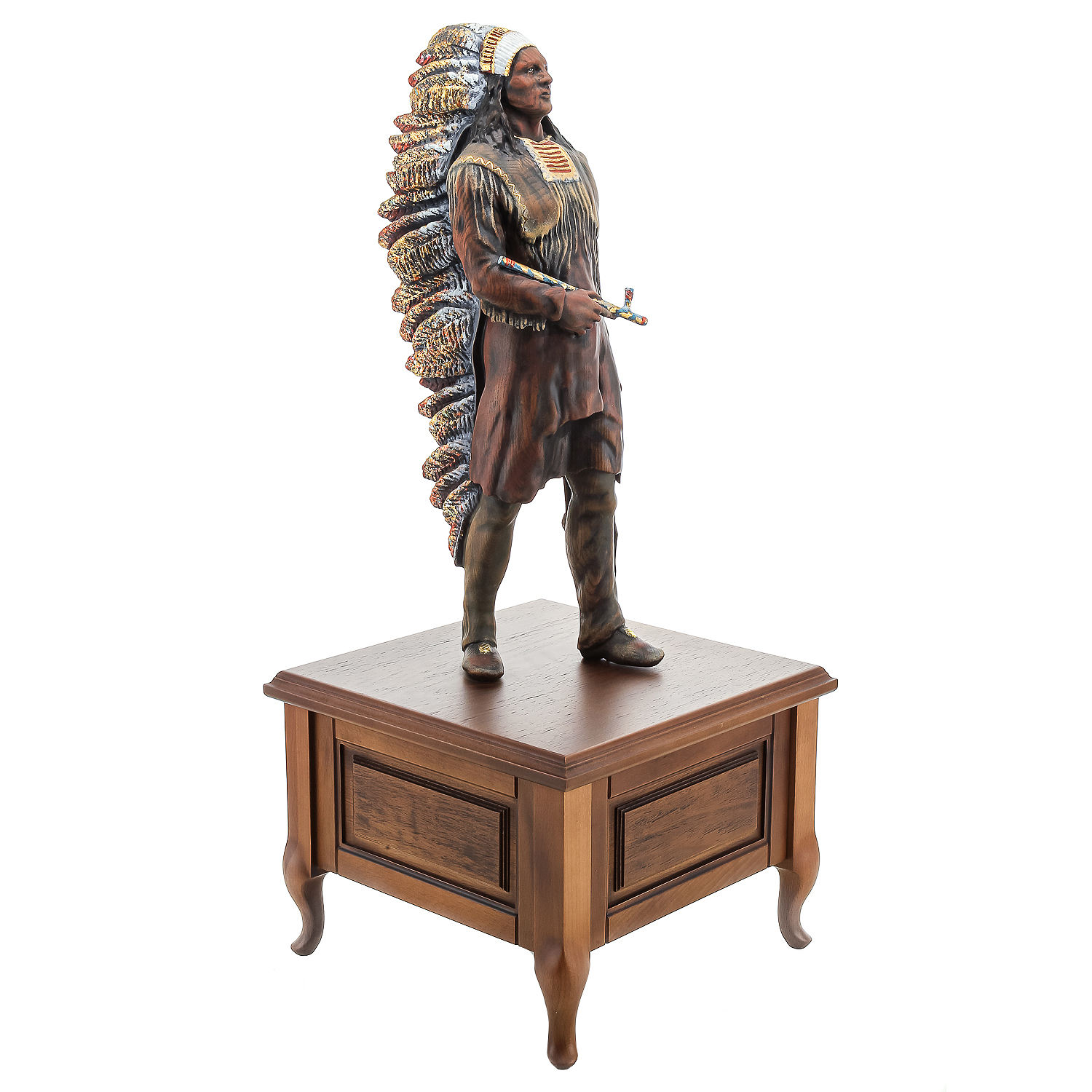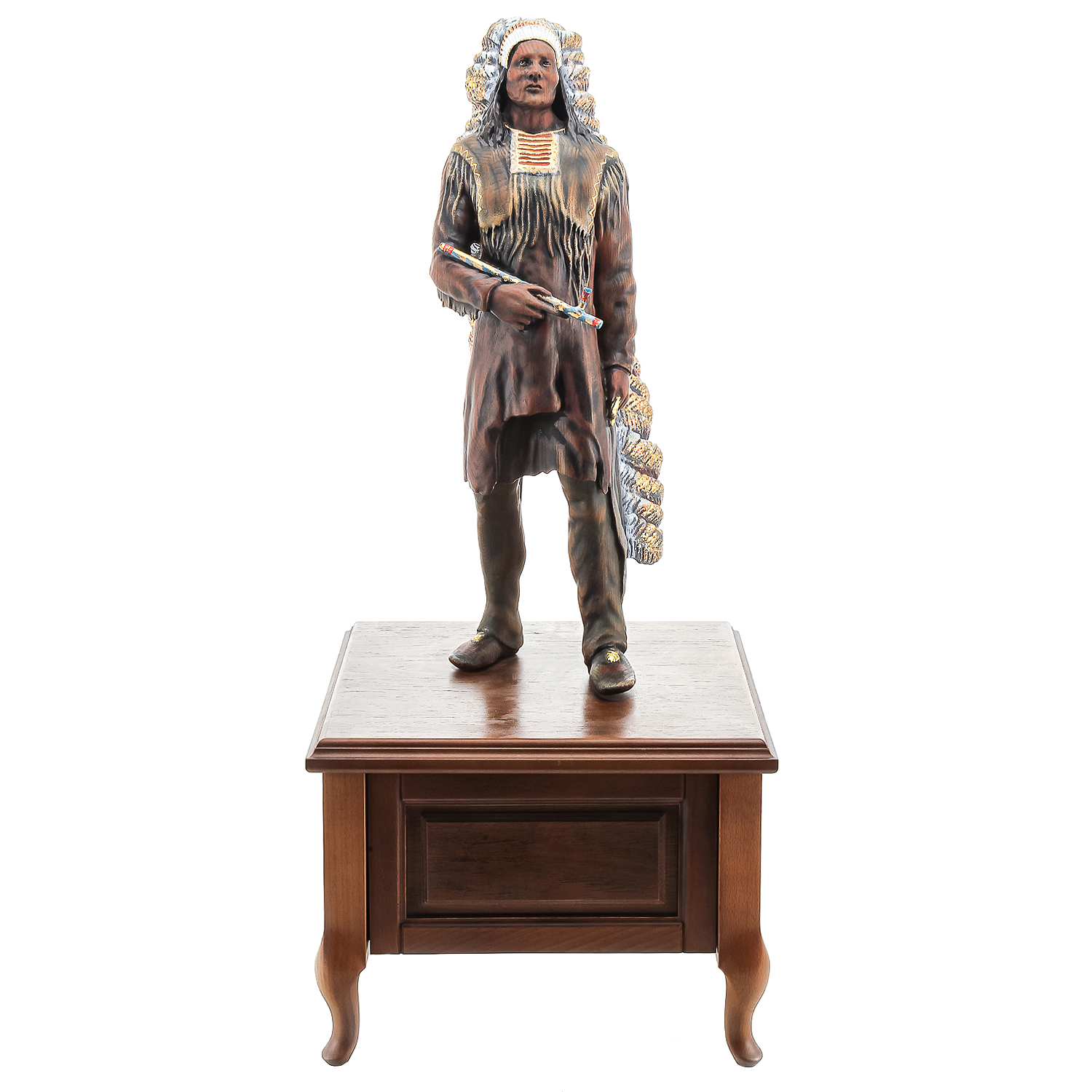 Деревянная резная скульптура "Индеец с трубкой". Высота 81 см