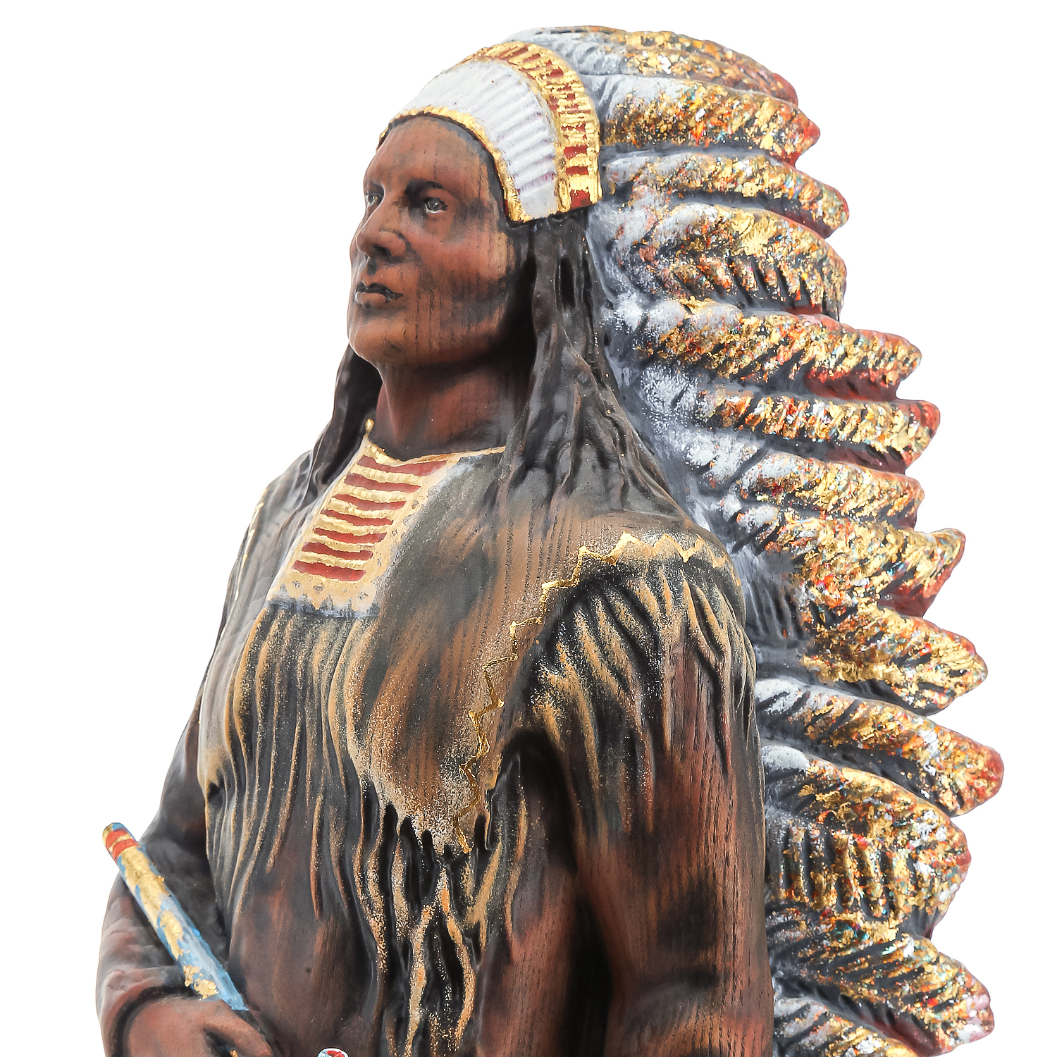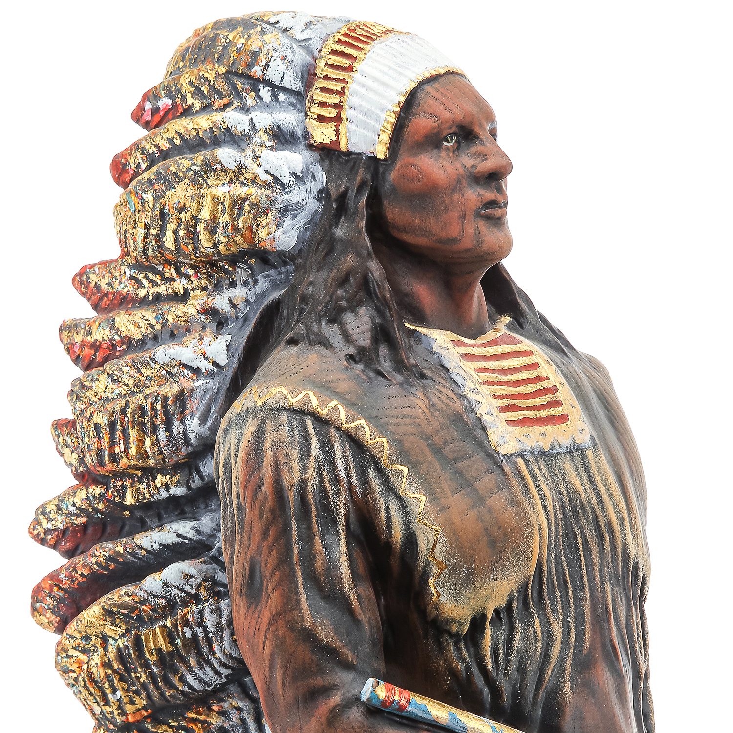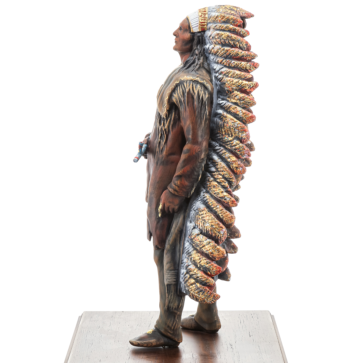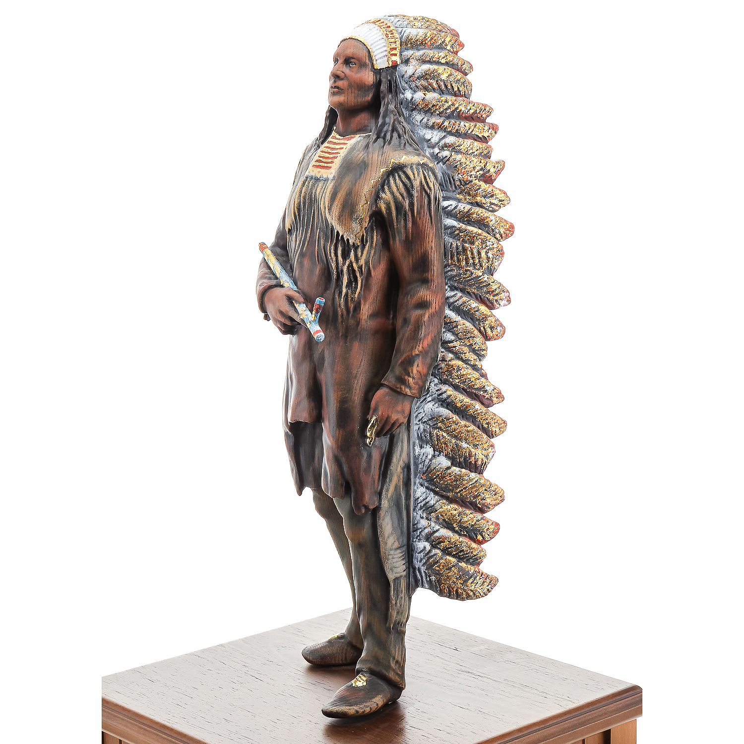 Деревянная резная скульптура "Индеец с трубкой". Высота 81 см