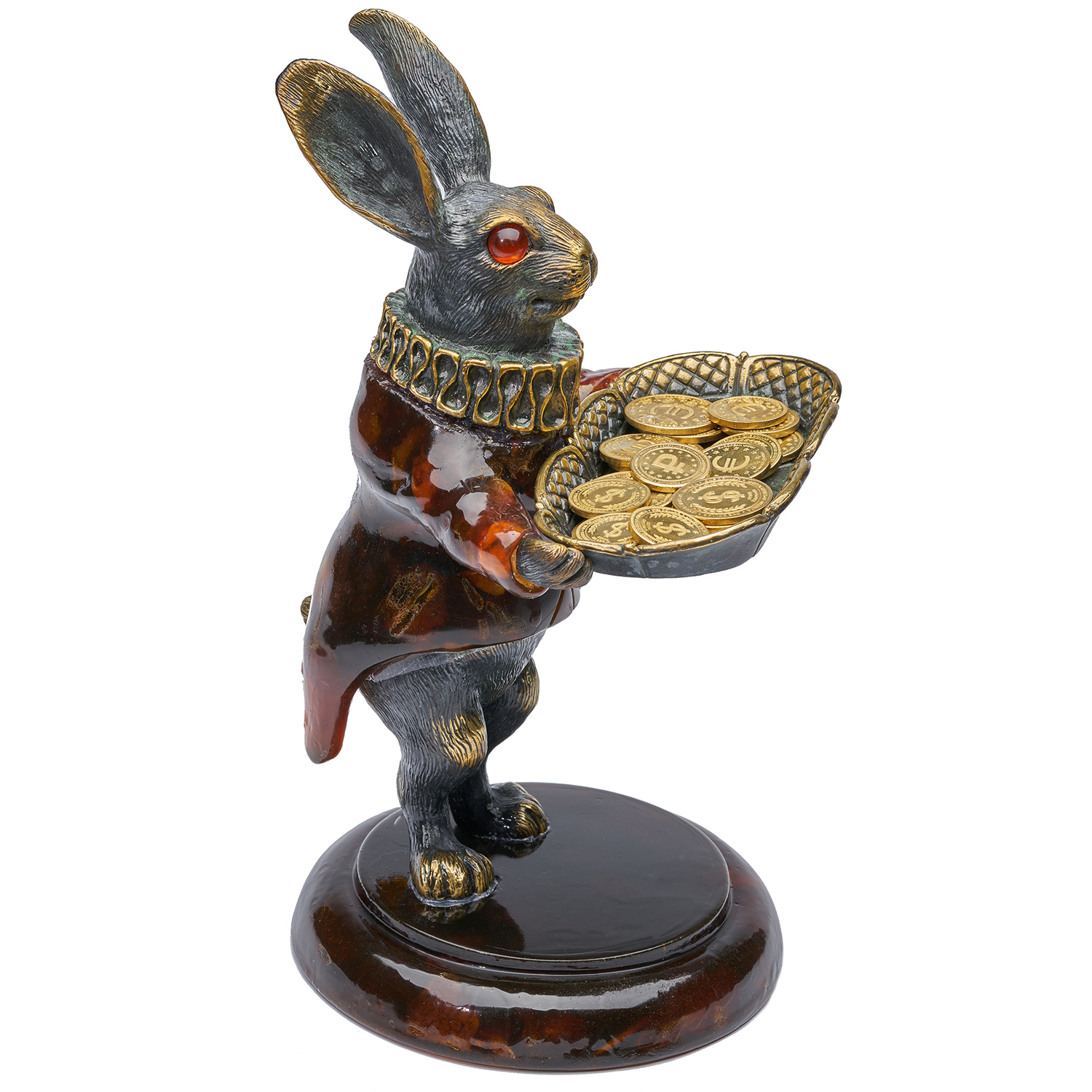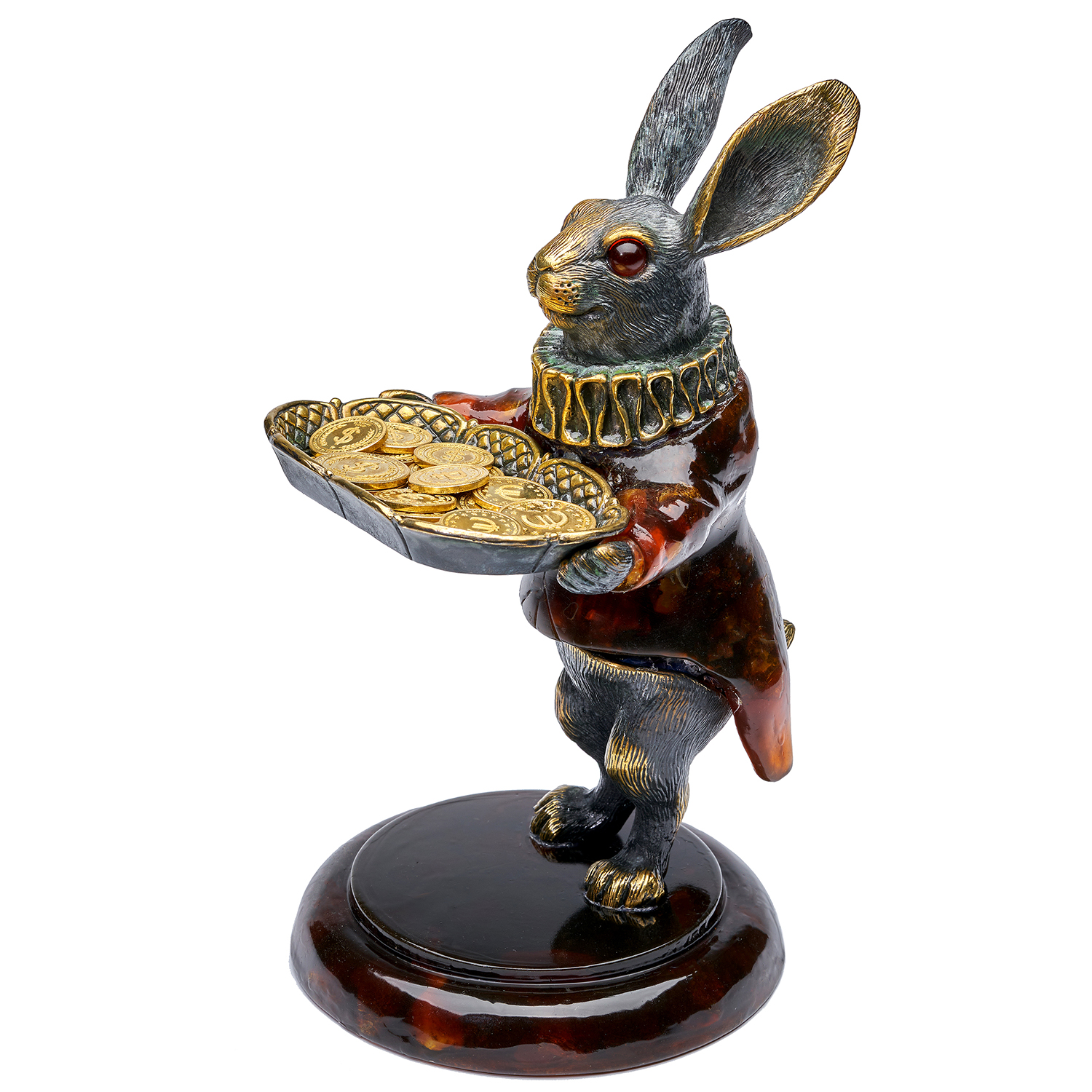 Скульптура из янтаря и бронзы "Кролик. Живи по-царски"