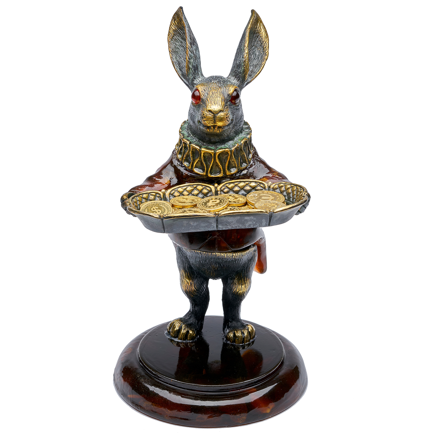 Скульптура из янтаря и бронзы "Кролик. Живи по-царски".