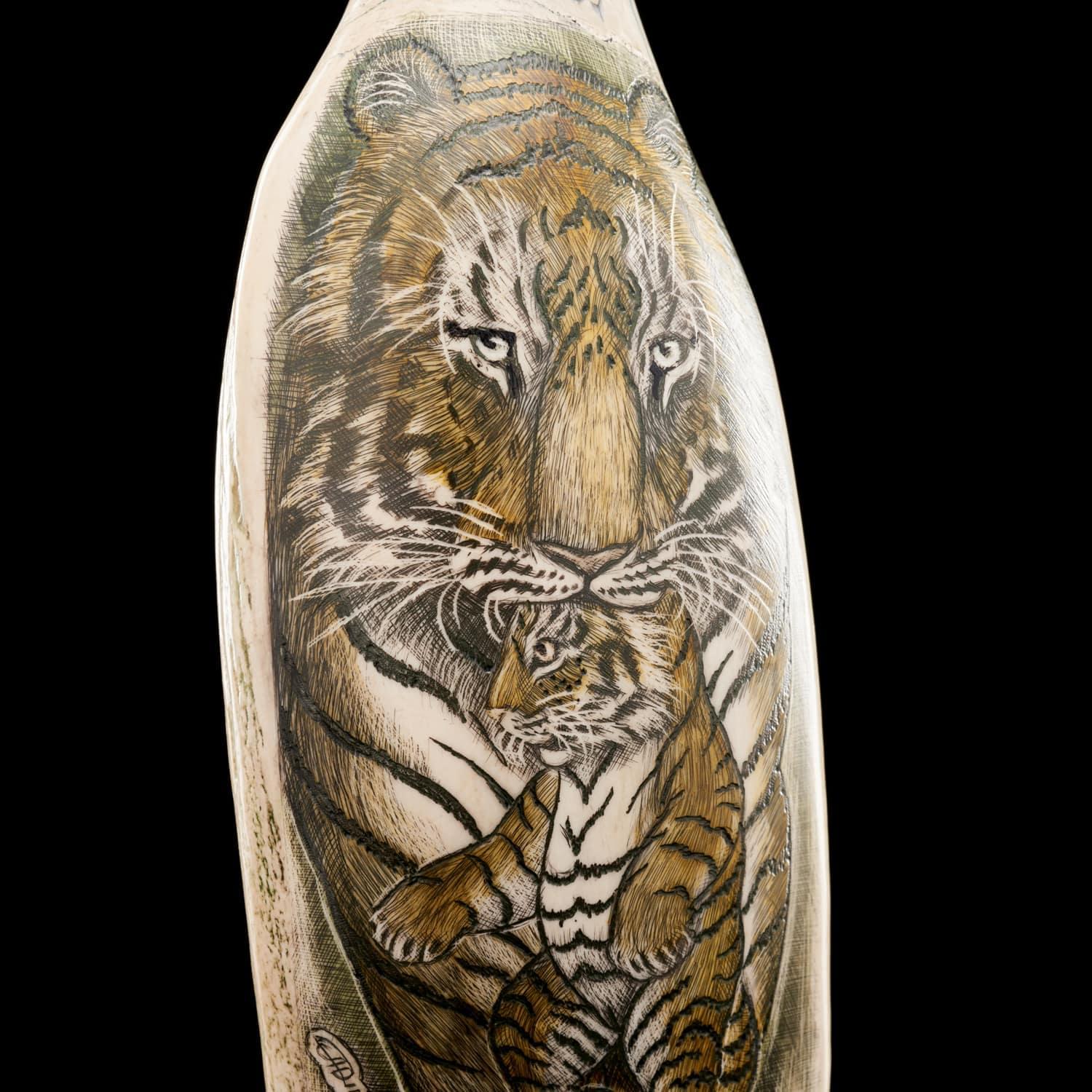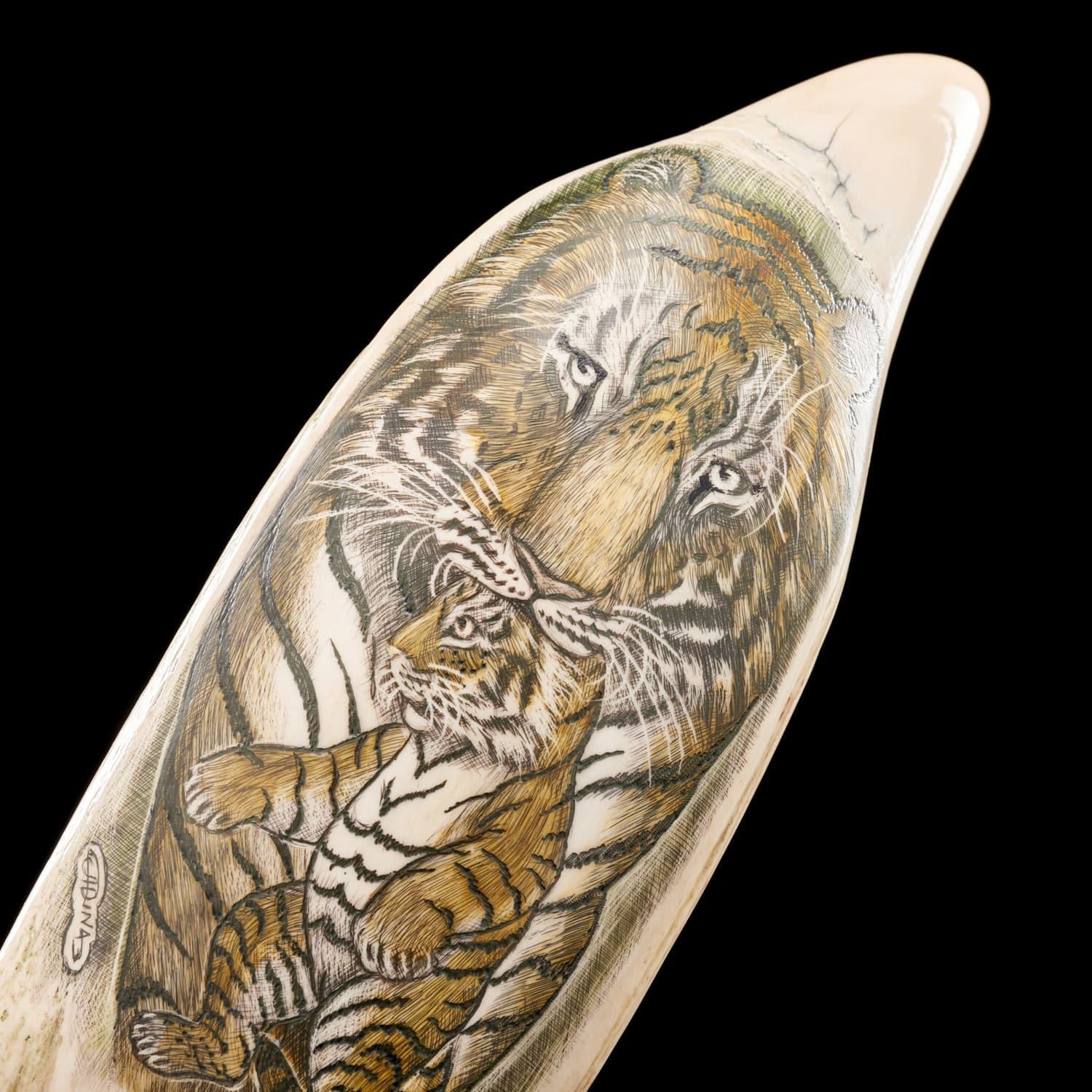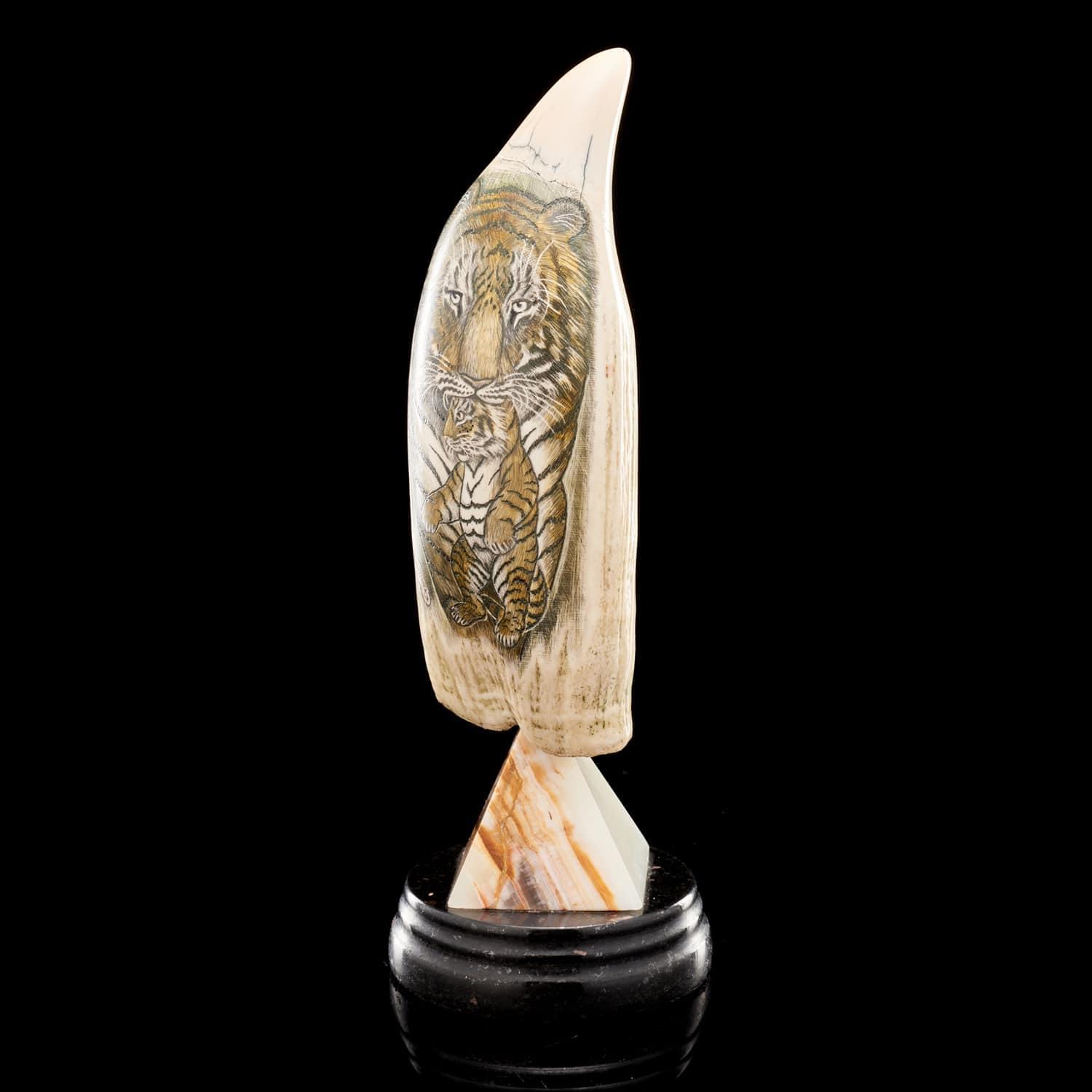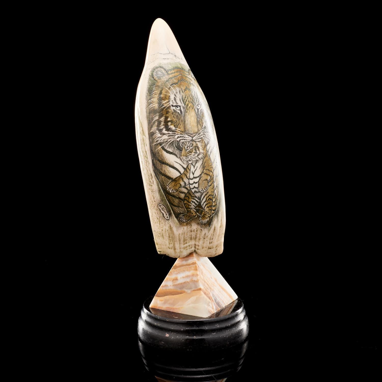 Статуэтка из зуба кашалота «Тигрица с тигренком»