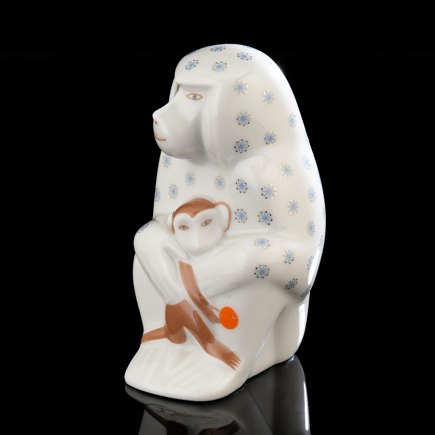 Статуэтка "Павиан с детенышем". ИФЗ.Материал: фарфор.