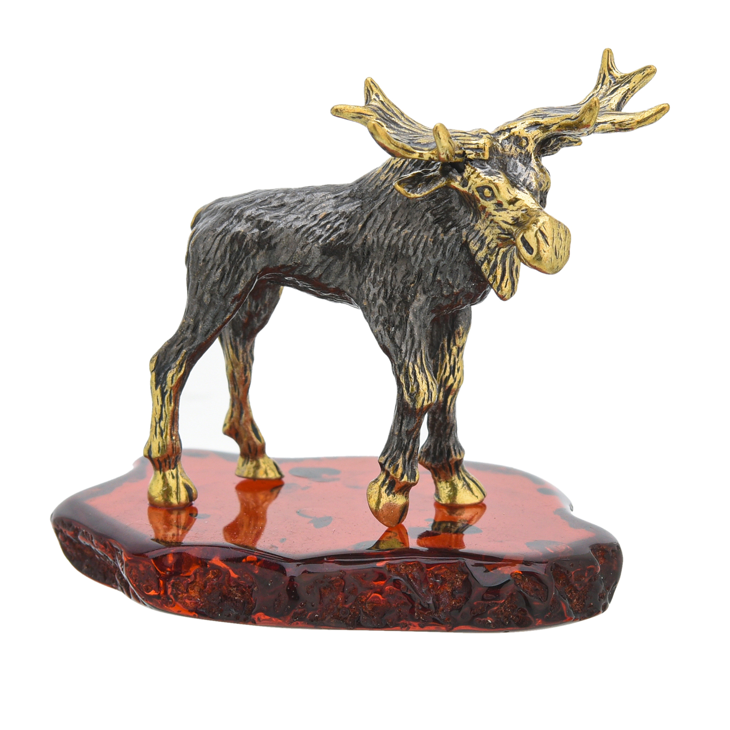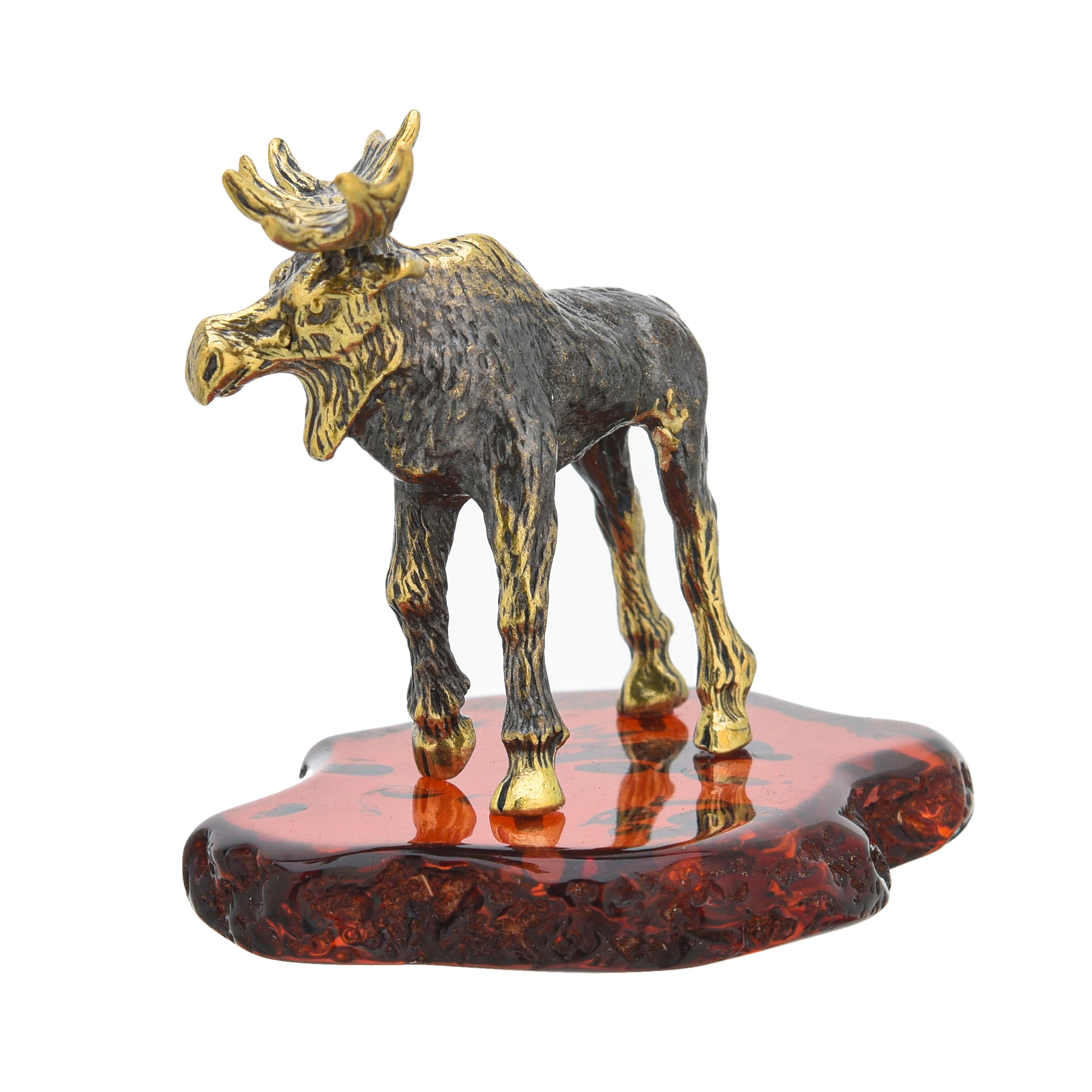 Статуэтка с янтарем "Лось Абрам".Материалы: латунь, янтарь.