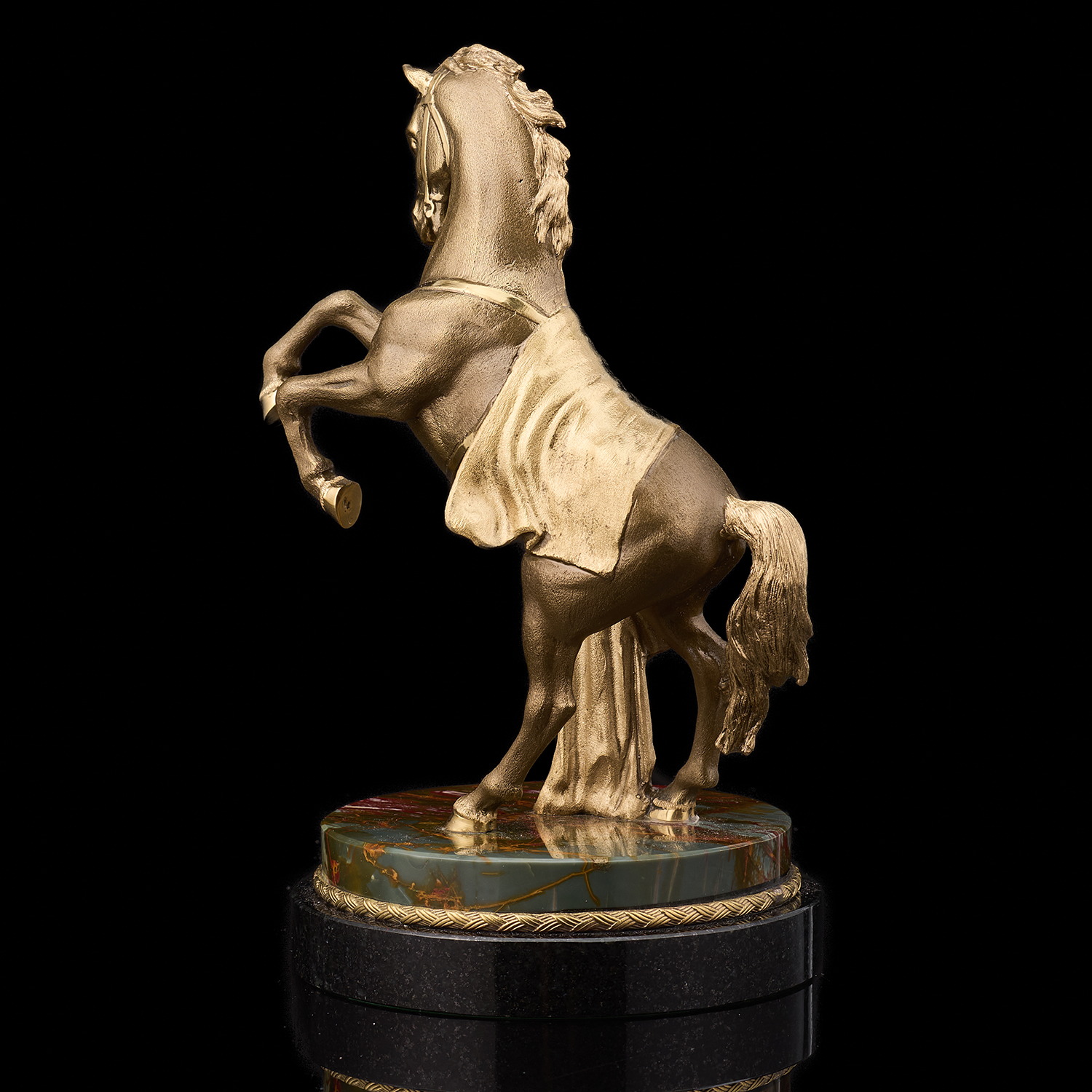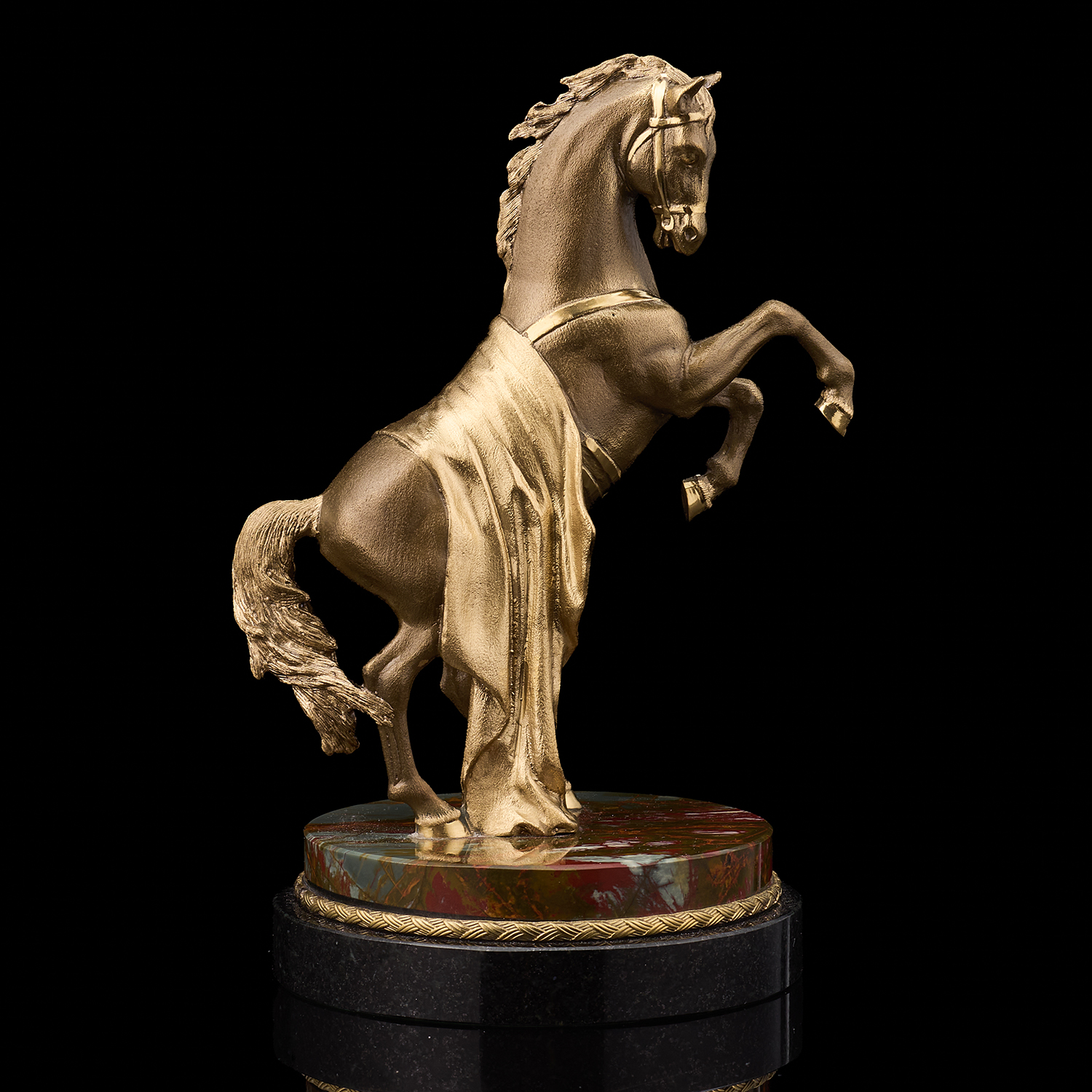 Лошадь Символ 2026 года. Скульптура из бронзы и камня "Конь". Златоуст.Материалы: бронза, золото 999,9*, яшма.