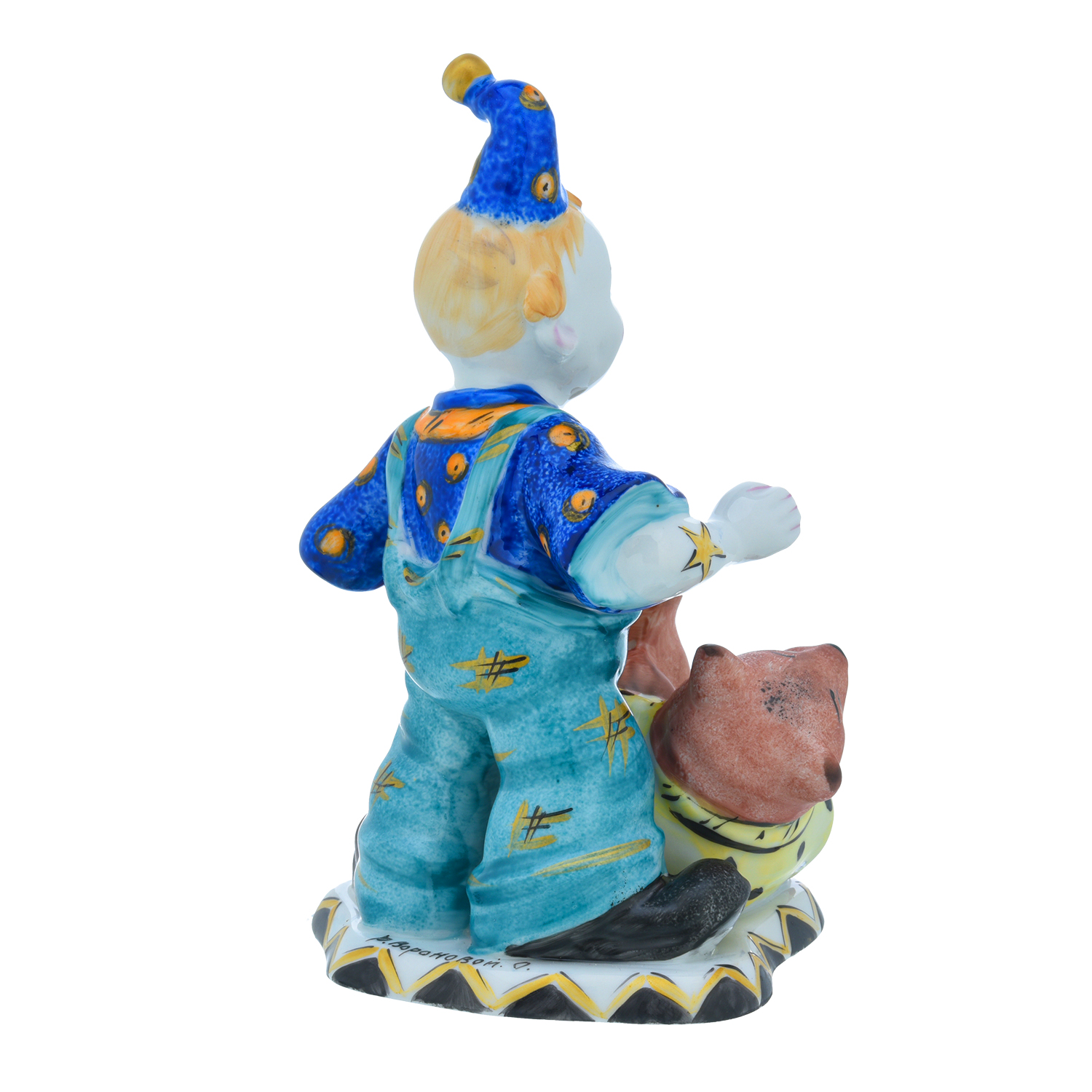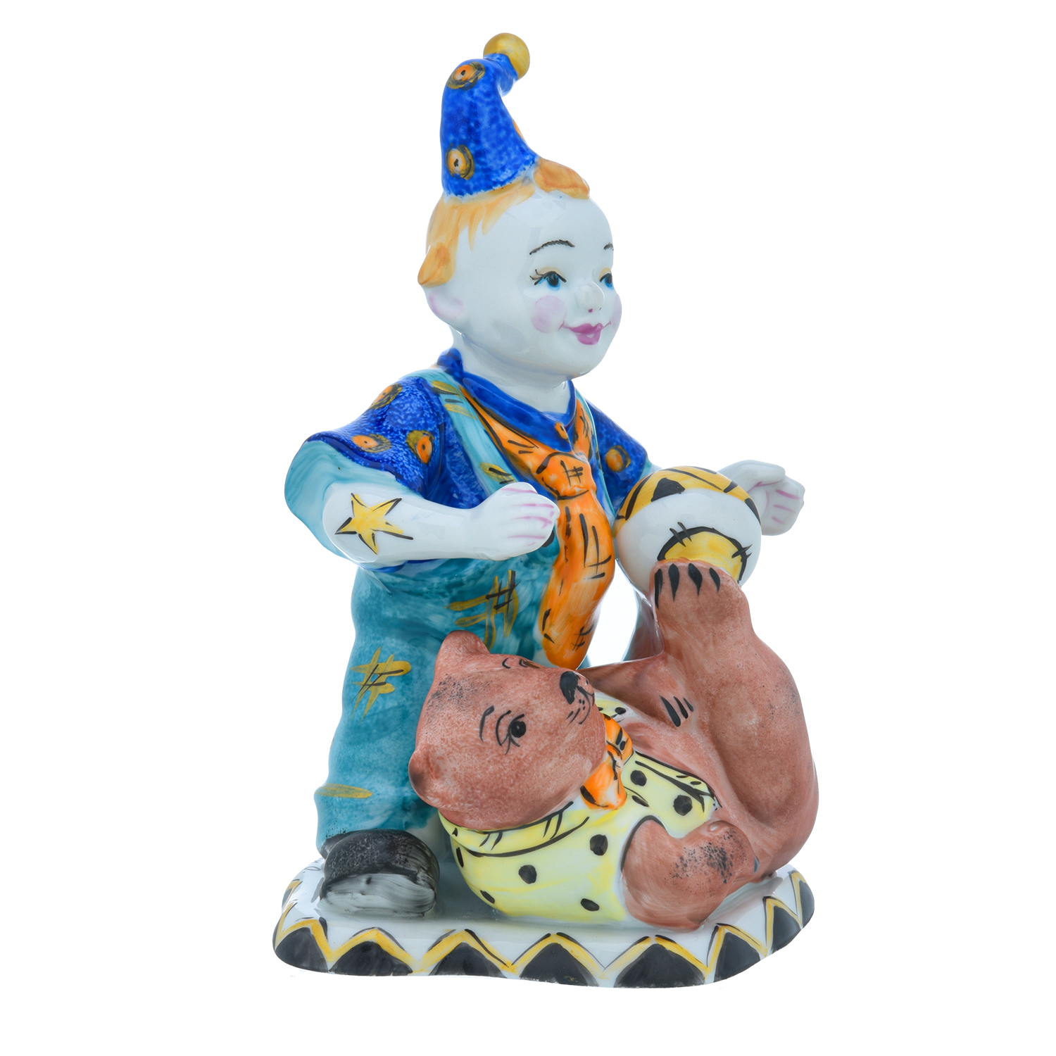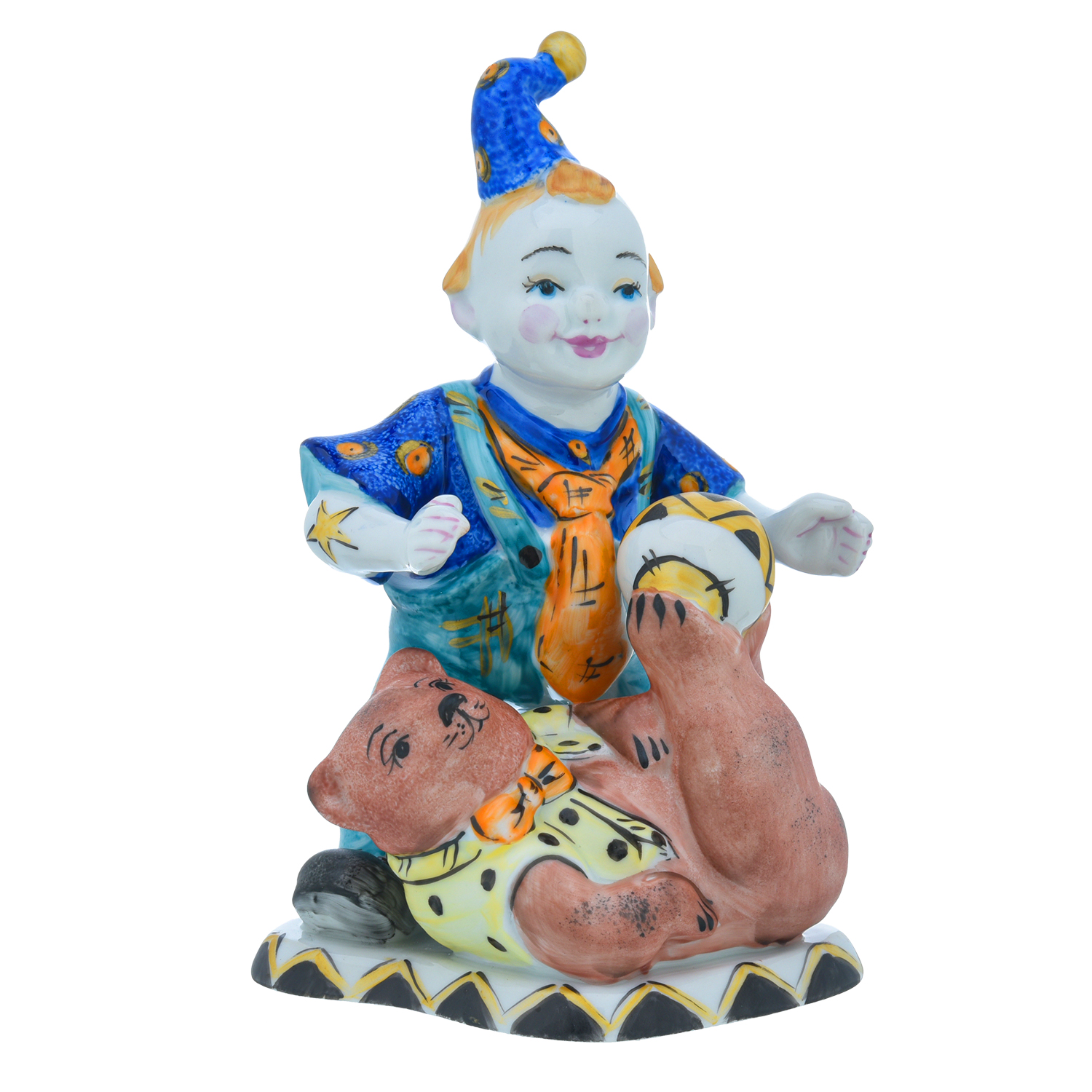 Статуэтка "Клоун с медведем". Гжель в цвете