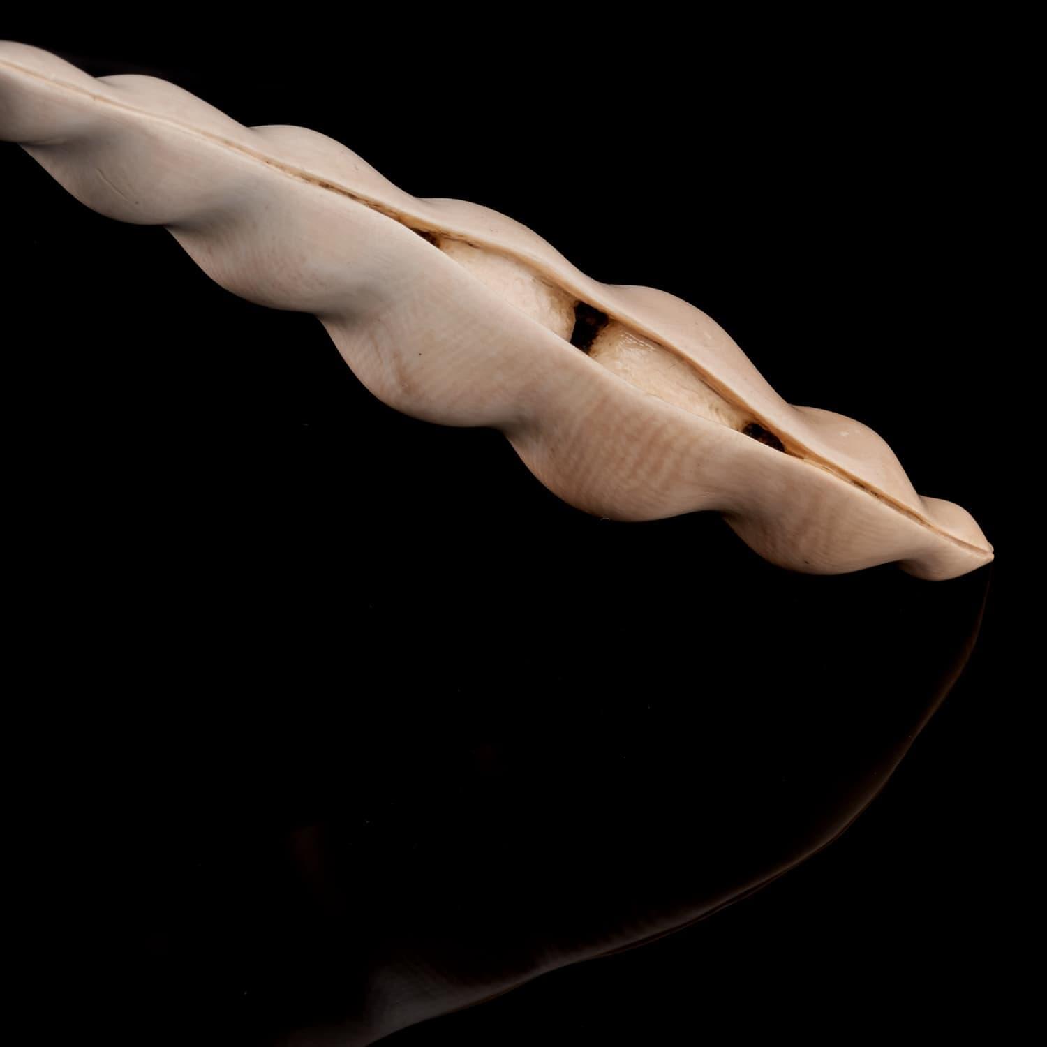 Вашему вниманию - дизайнерское изделие для интерьера, которое представляет собой образец старинного косторезного промысла, процветающего на Севере России. Оригинальная скульптура в виде стручка гороха оформлена вручную из бивня мамонта, исчезнувшего с лица Земли более 9000 лет тому назад. Эта скульптура - сюрприз для кулинара...