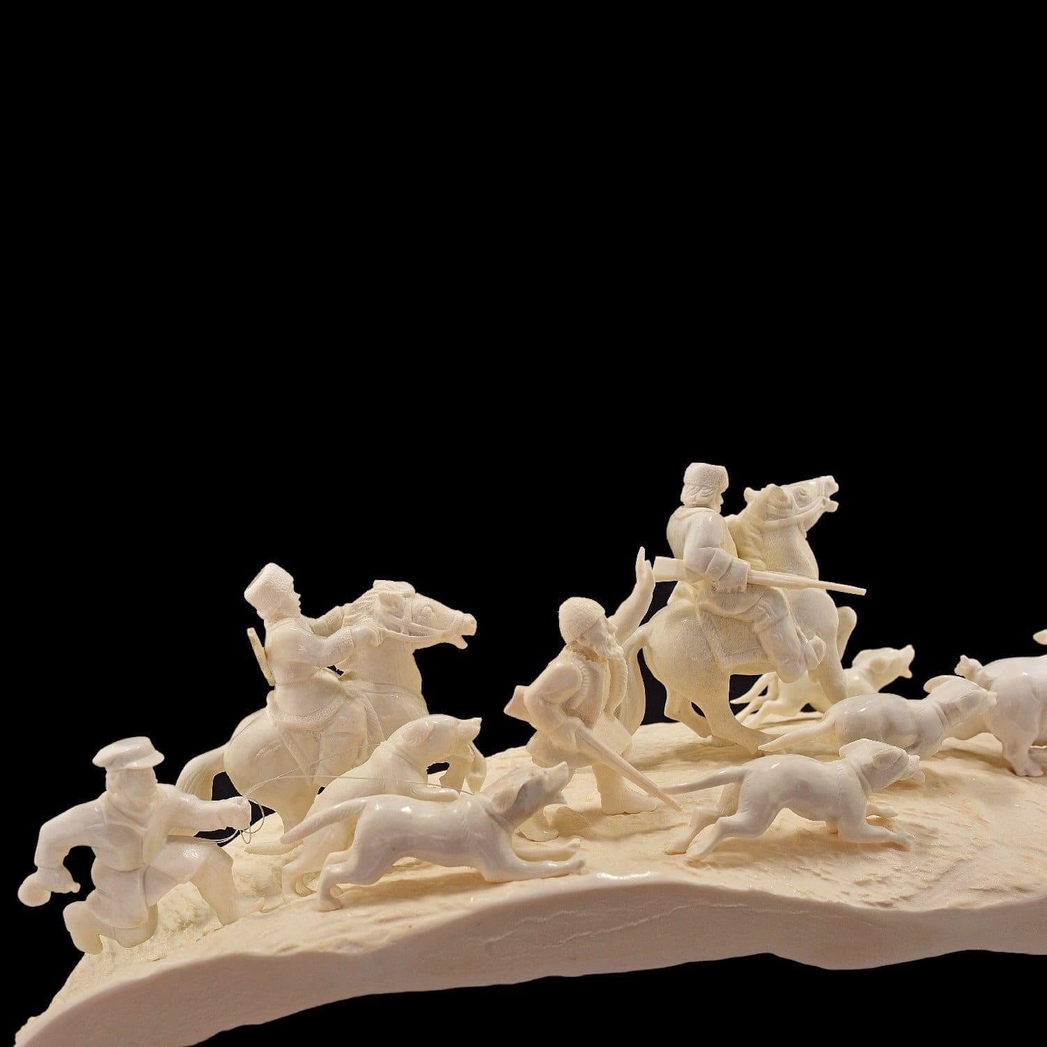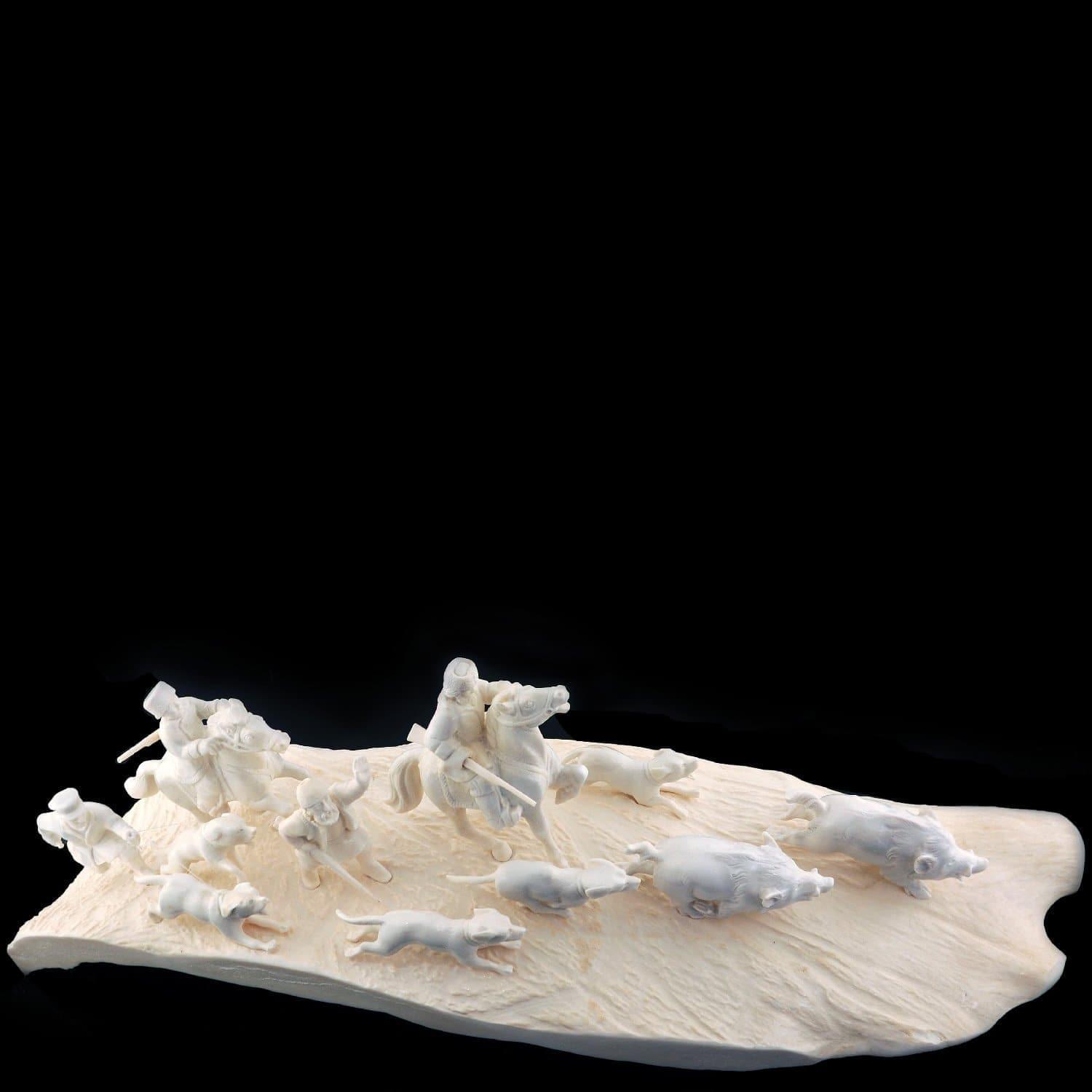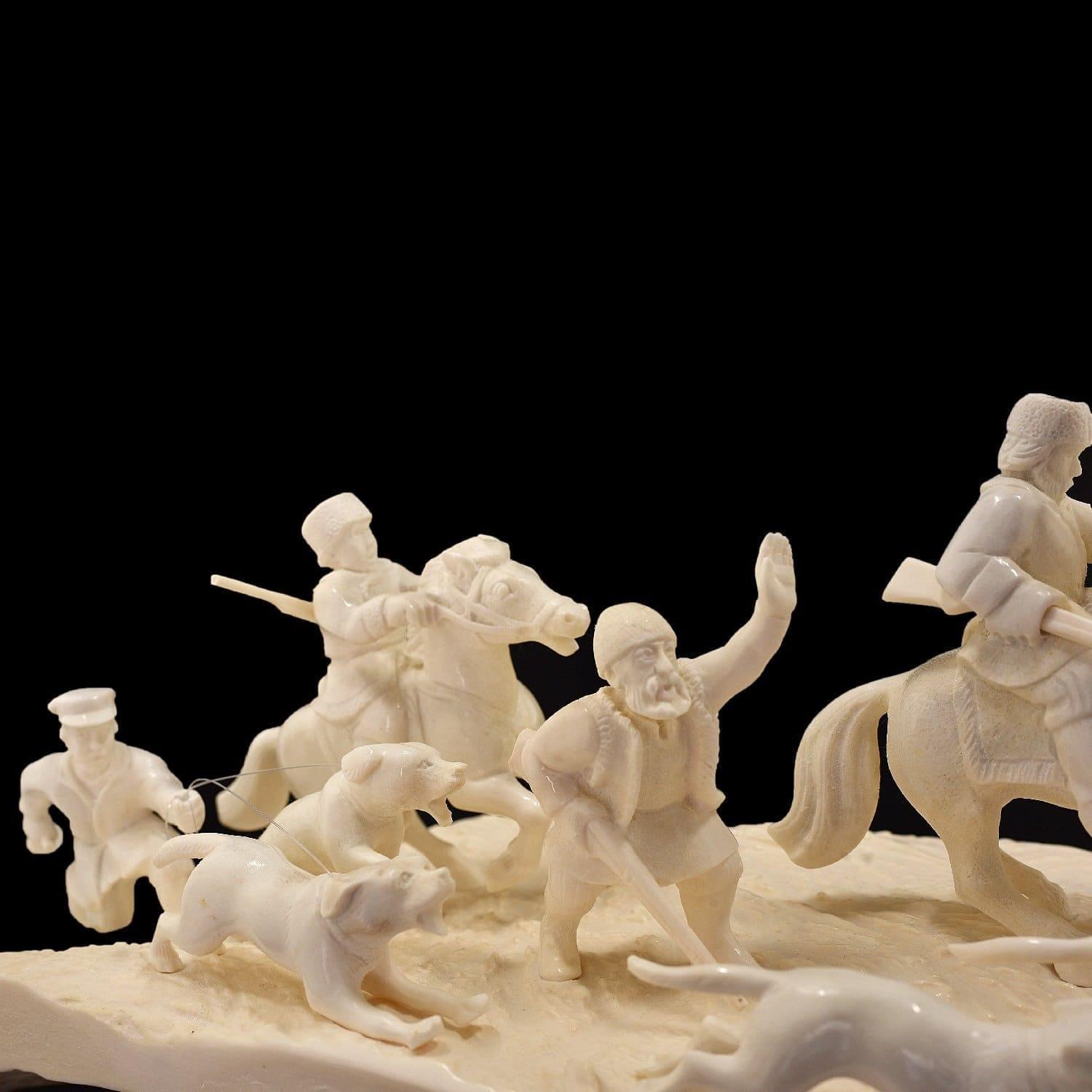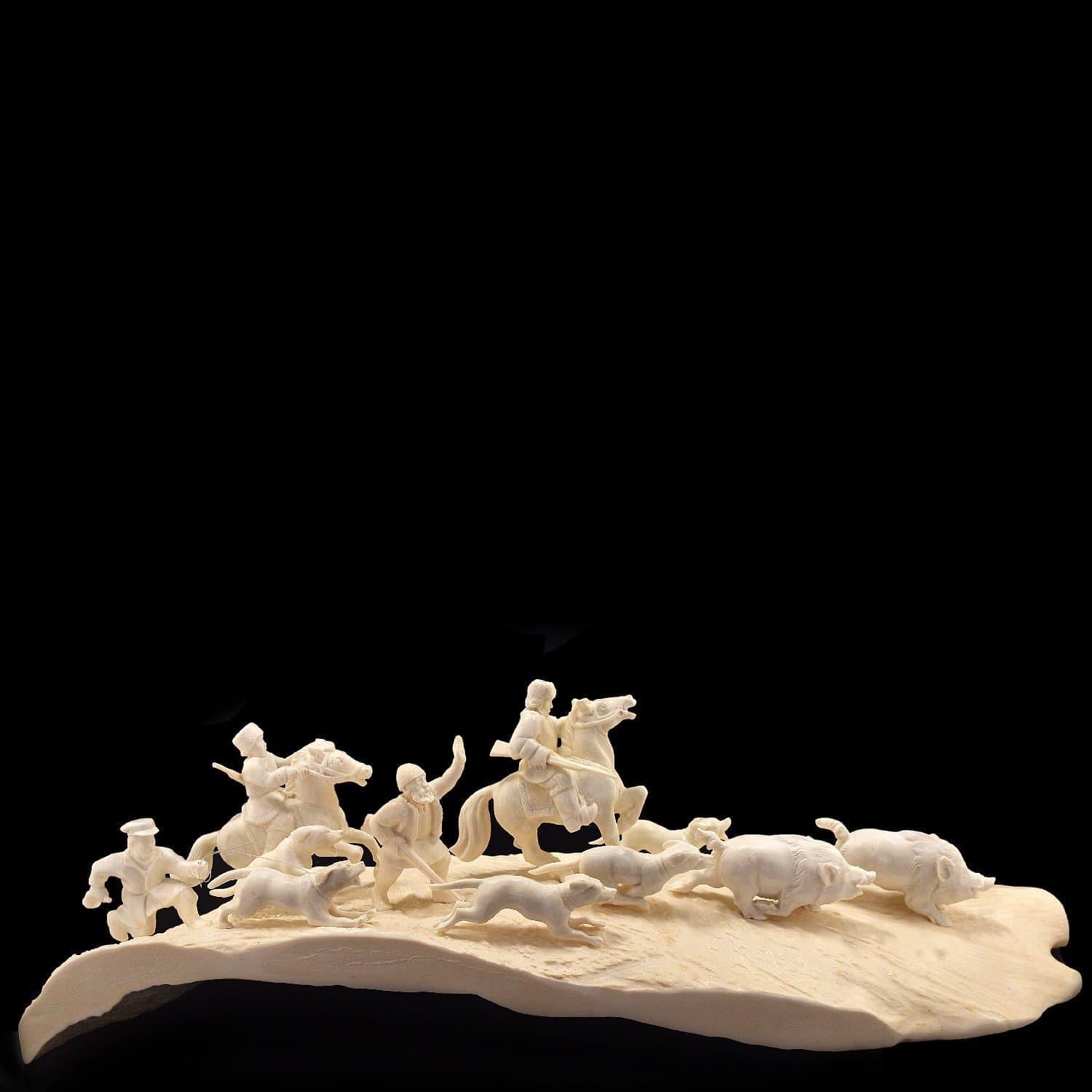 Скульптура посвящена охоте на кабанов, которая различается в зависимости от сезона (летнего и зимнего). По России живет около 220 тысяч вепрей. Обитают дикие свиньи, преимущественно, в лесах, вблизи реки или озера. Животные усиленно кормятся во второй половине лета, в преддверие холодов. Благодаря следам, отходам жизнедеятельности и «вспаханной» местами почве можно понять, что здесь были кабаны. Эти звери хорошо слышат, у них развито обоняние, а вот зрение слабое. Охота происходит с засидки (располагаются против ветра), лабаза (вышки), с подхода или с собаками. Важно не только правильно подобрать место и время (обычно охота начинается вечером и продолжается до глубокой ночи), но и соблюдать технику безопасности. Кабан крепок на рану. Иногда сразу убить животное не получается: его можно ранить. Гнев зверя страшен. Он постарается отомстить охотнику. Кабан - зверь серьезный, и охота на него требует определенных знаний и навыков. .