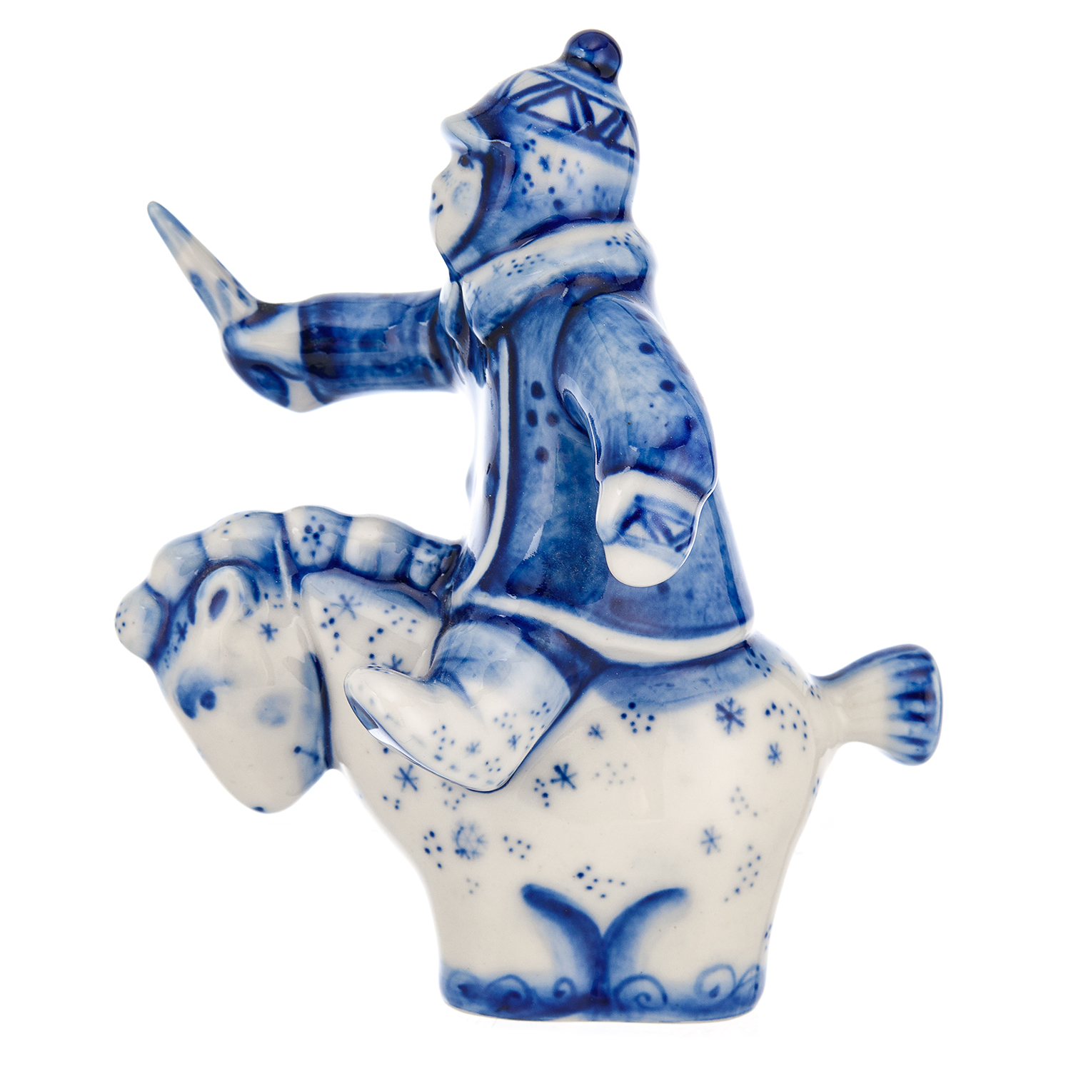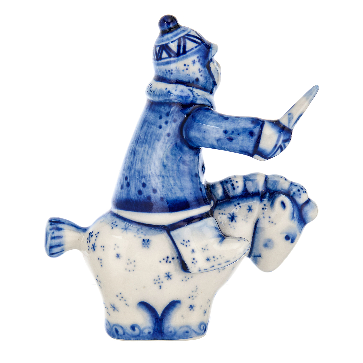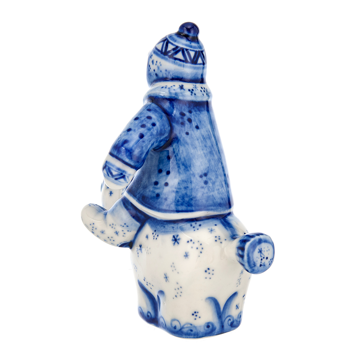 В нашей галерее фарфоровых аксессуаров снова пополнение – очаровательная фигурка с «зимним» дизайном. Детально проработанная фигурка создана по оригинальному авторскому эскизу из экологически чистого фарфора. Сливочно-белая статуэтка расписана вручную классической «синей» Гжелью. Несмотря на небольшой размер фигурки – высота аксессуара всего 12 сантиметров – художник прорисовал внешность своего героя до мельчайших подробностей. Дополнительно фигурка покрыта защитным лаком, предохраняющим роспись от выцветания. Небесно-голубая роспись на снежно-белом фарфоре производит потрясающее впечатление!