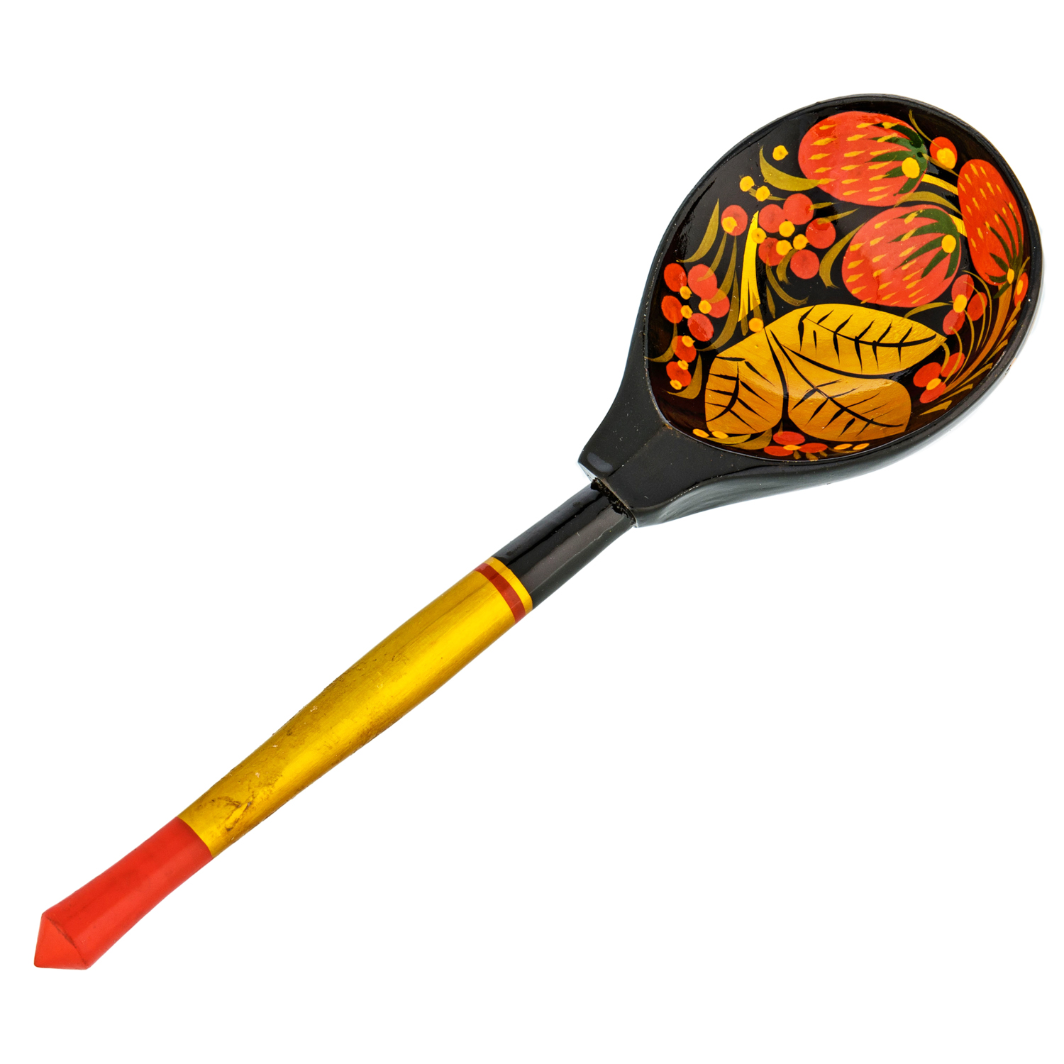 Русские подарки и сувениры → Посуда → Столовые приборы → Деревянная столовая ложка "Клубника". Хохлома
