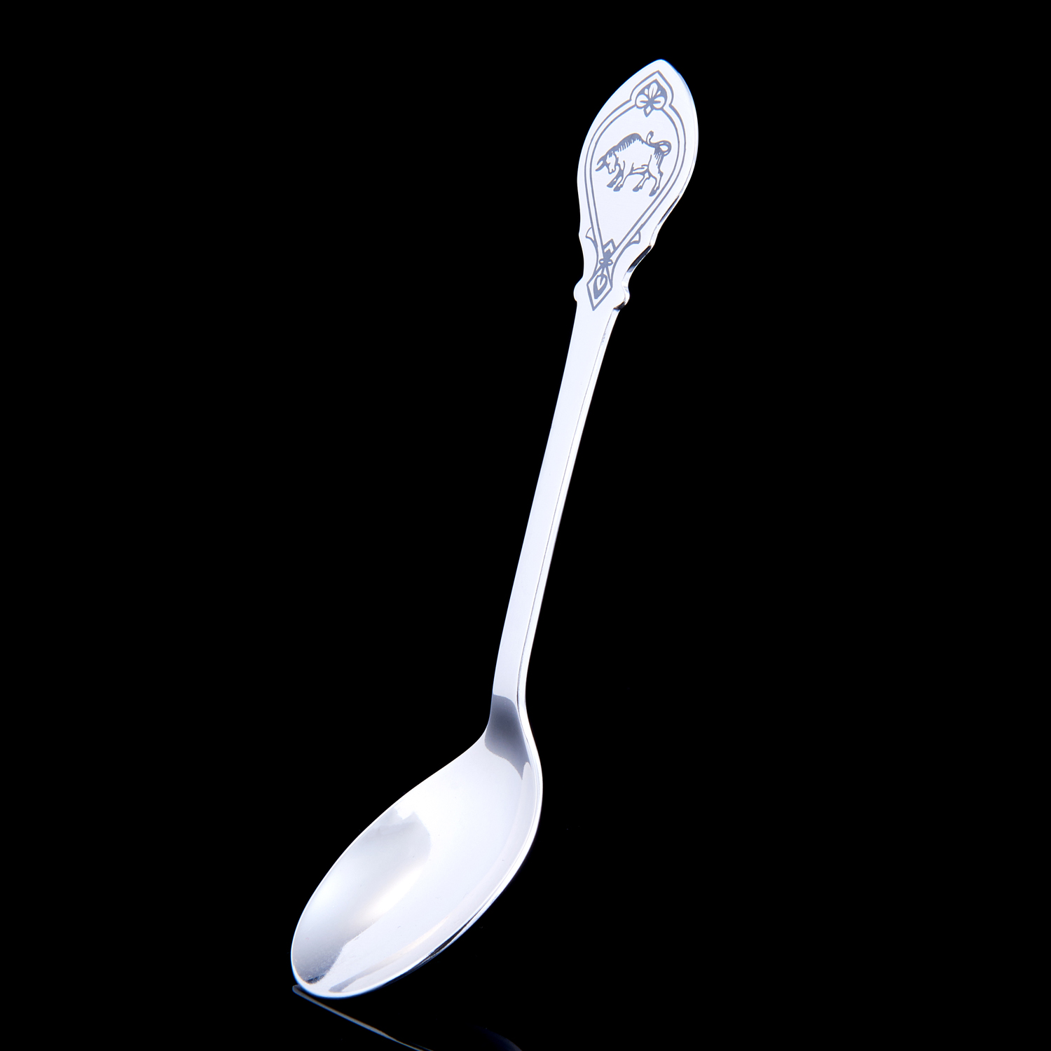 Русские подарки и сувениры → Посуда → Столовые приборы → Ложка чайная "Год быка" 24,15 гр. Серебро 925*