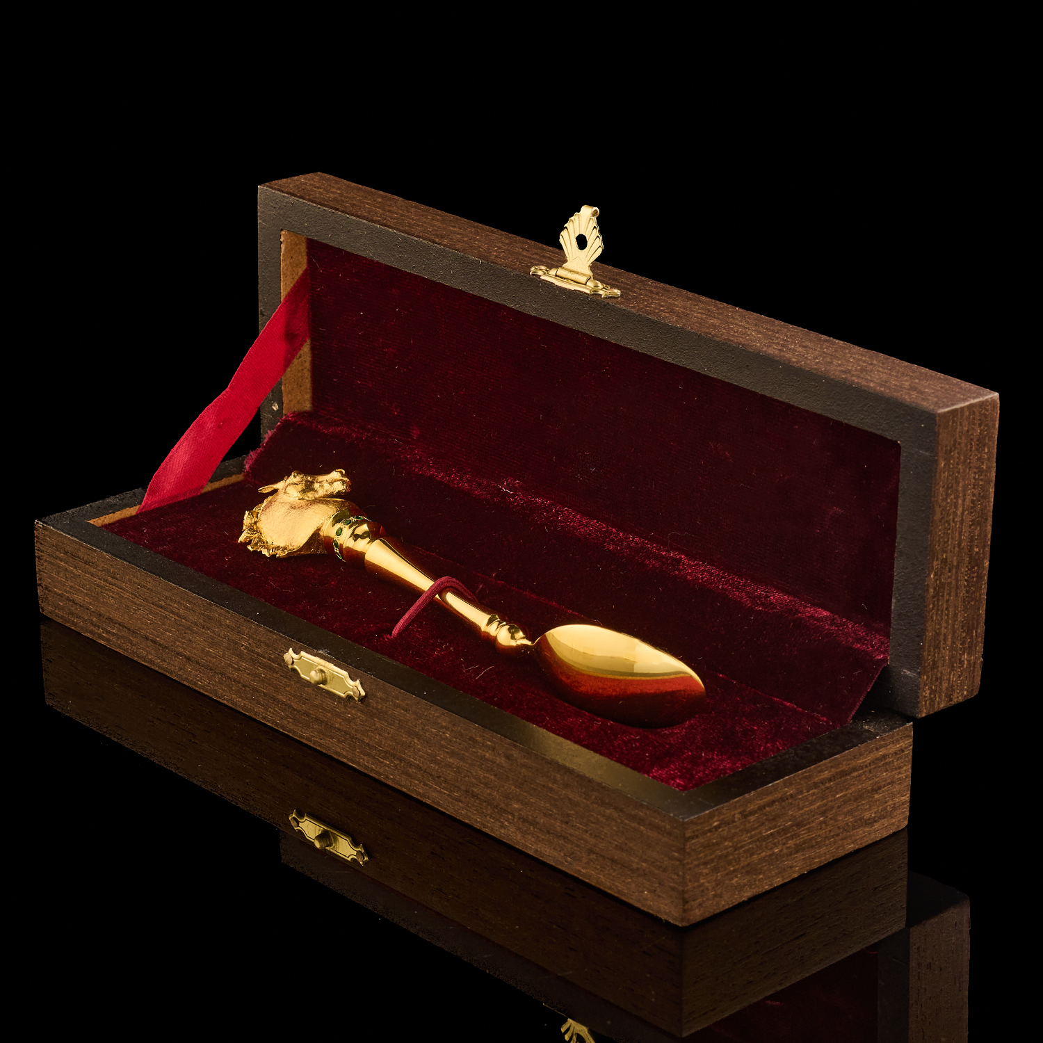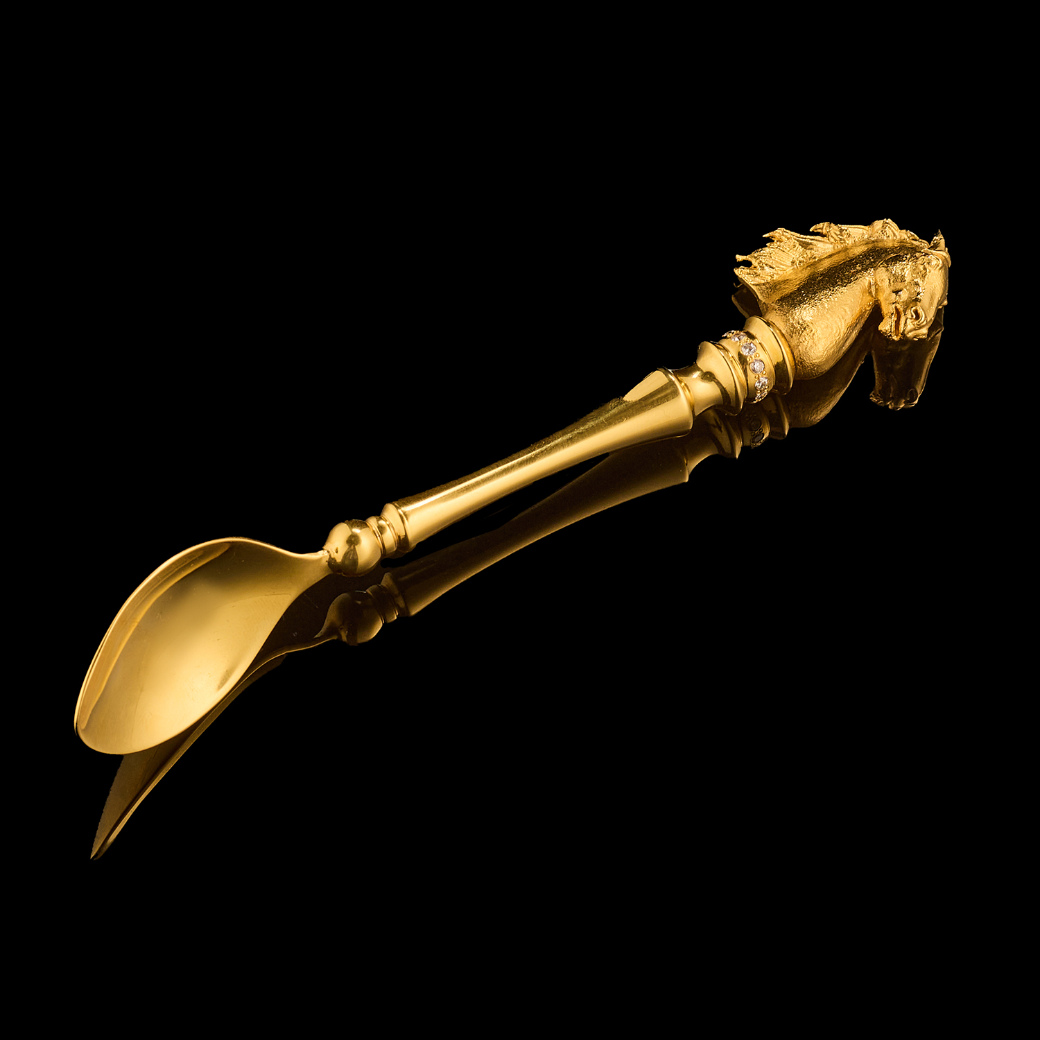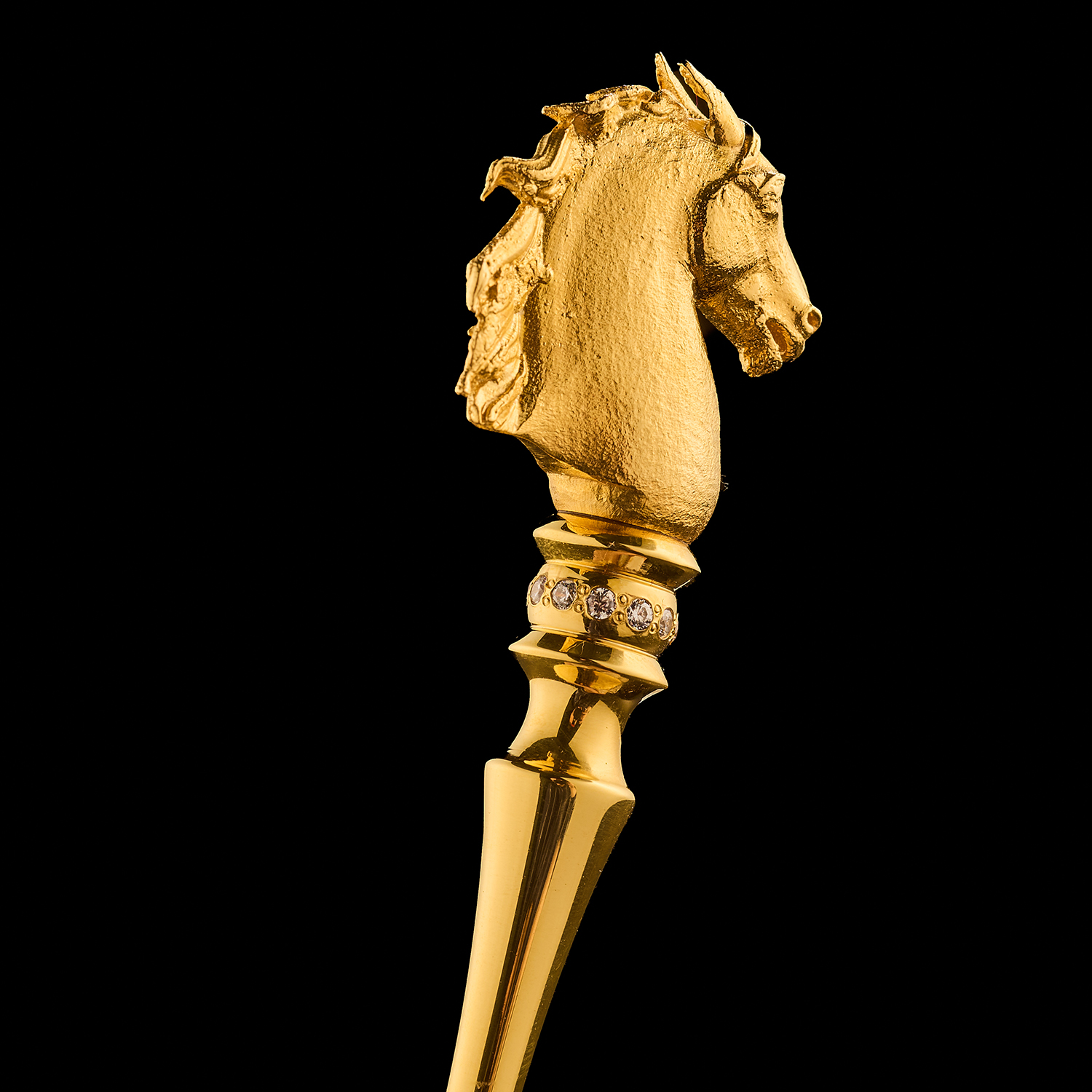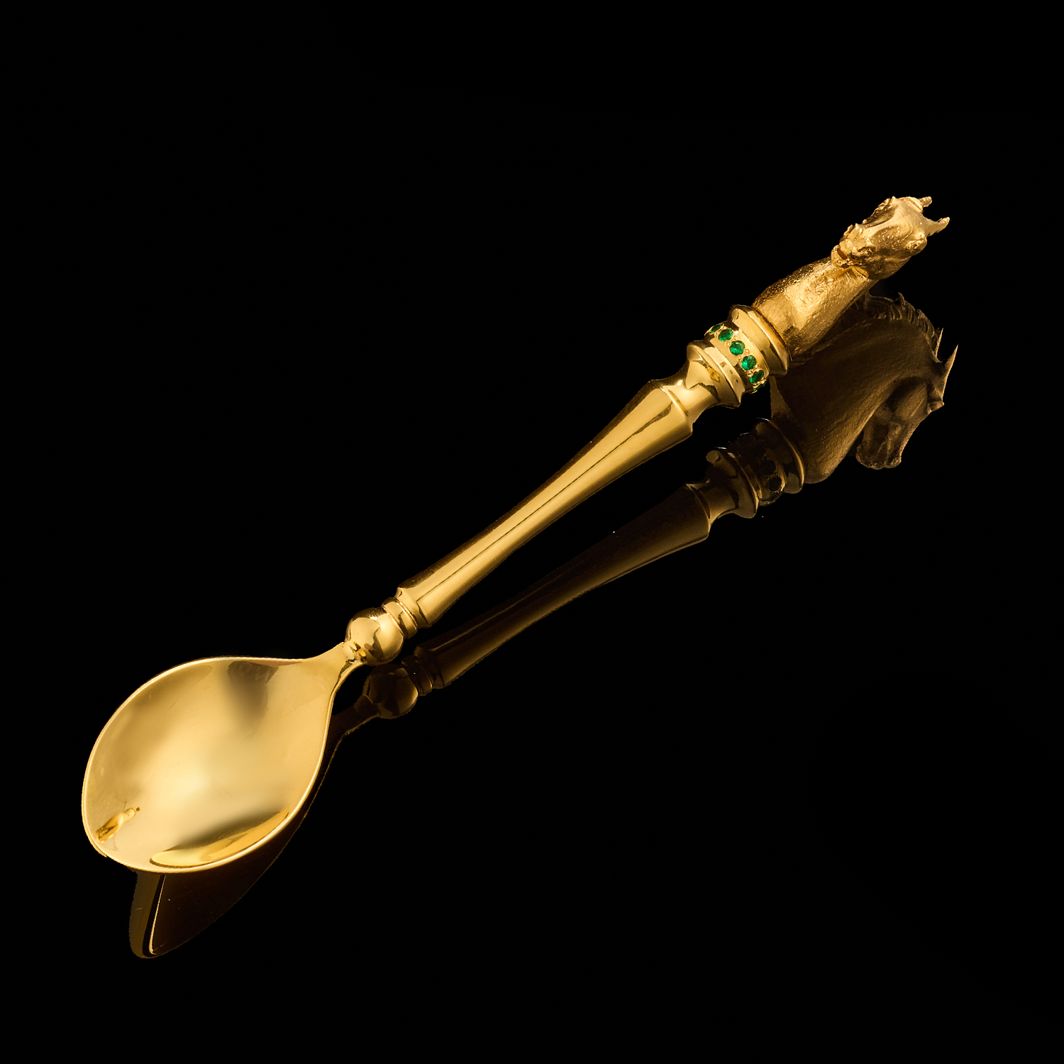 Лошадь Символ 2026 года. Чайная ложка "Конь". Златоуст.Материалы: латунь, золото 999,9*, фианиты.