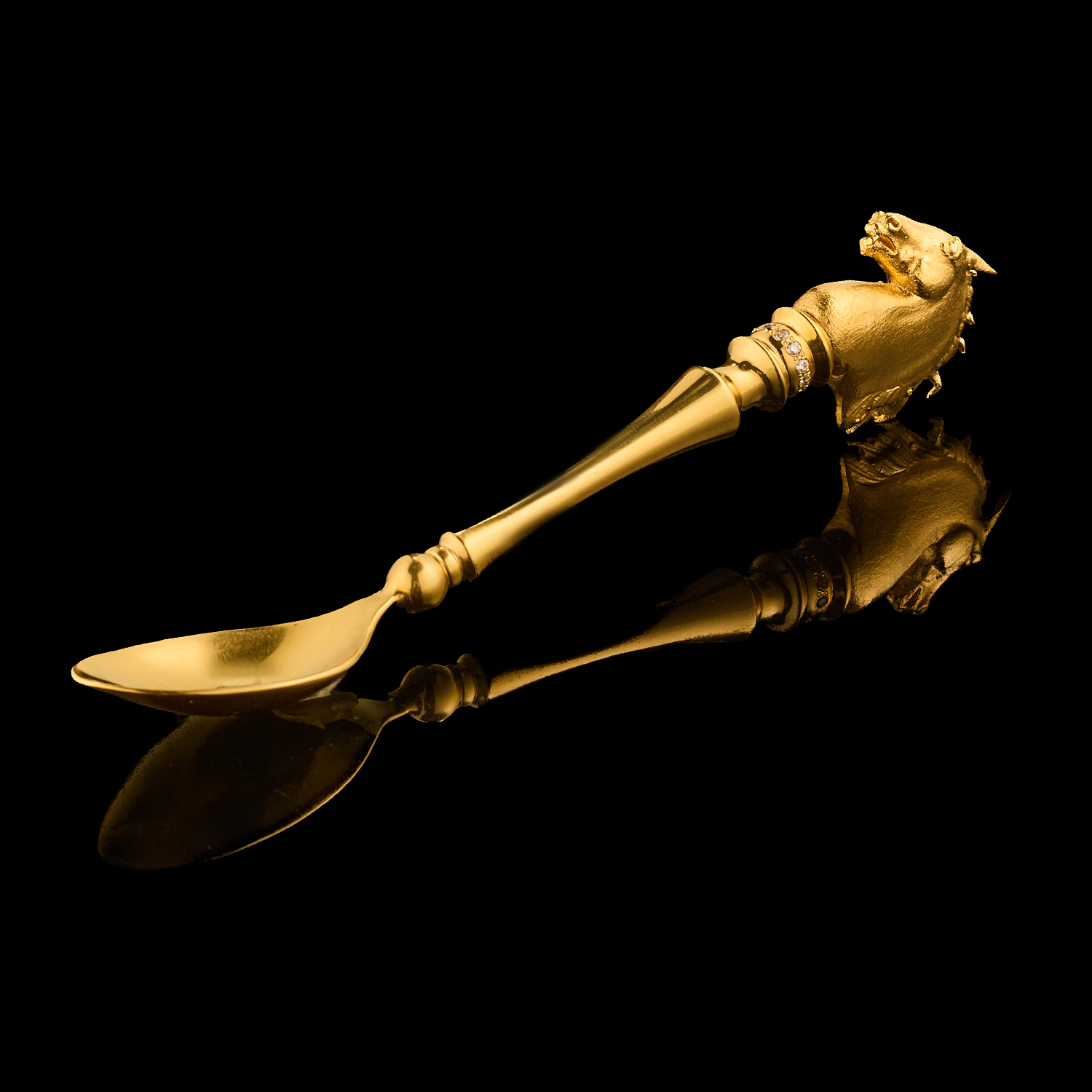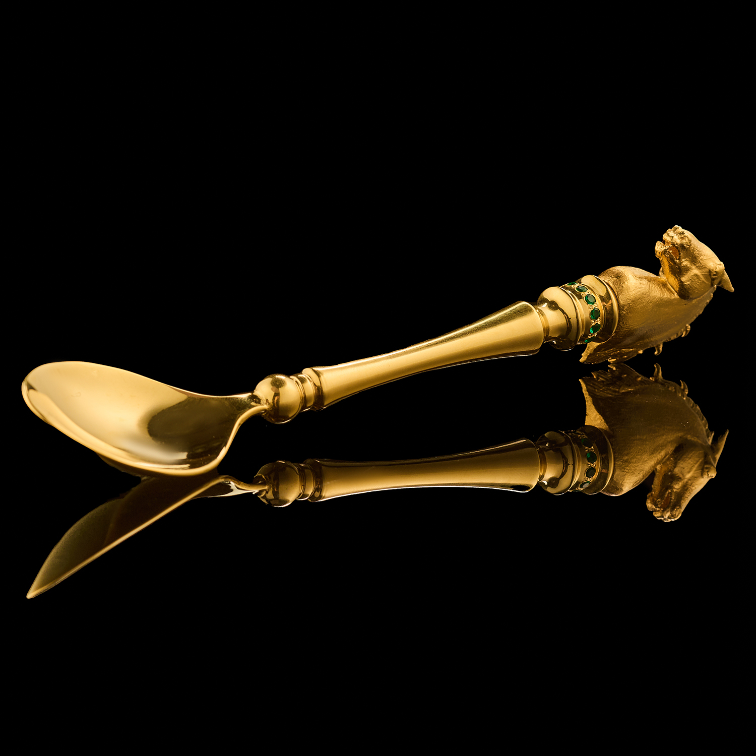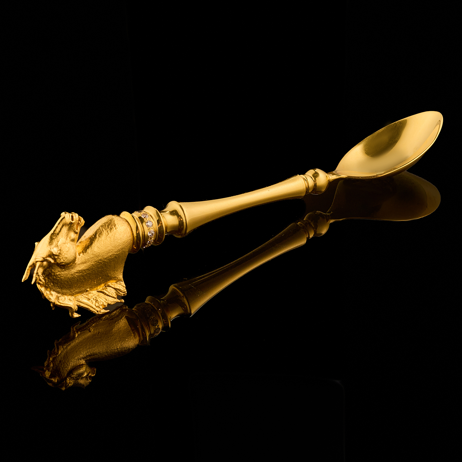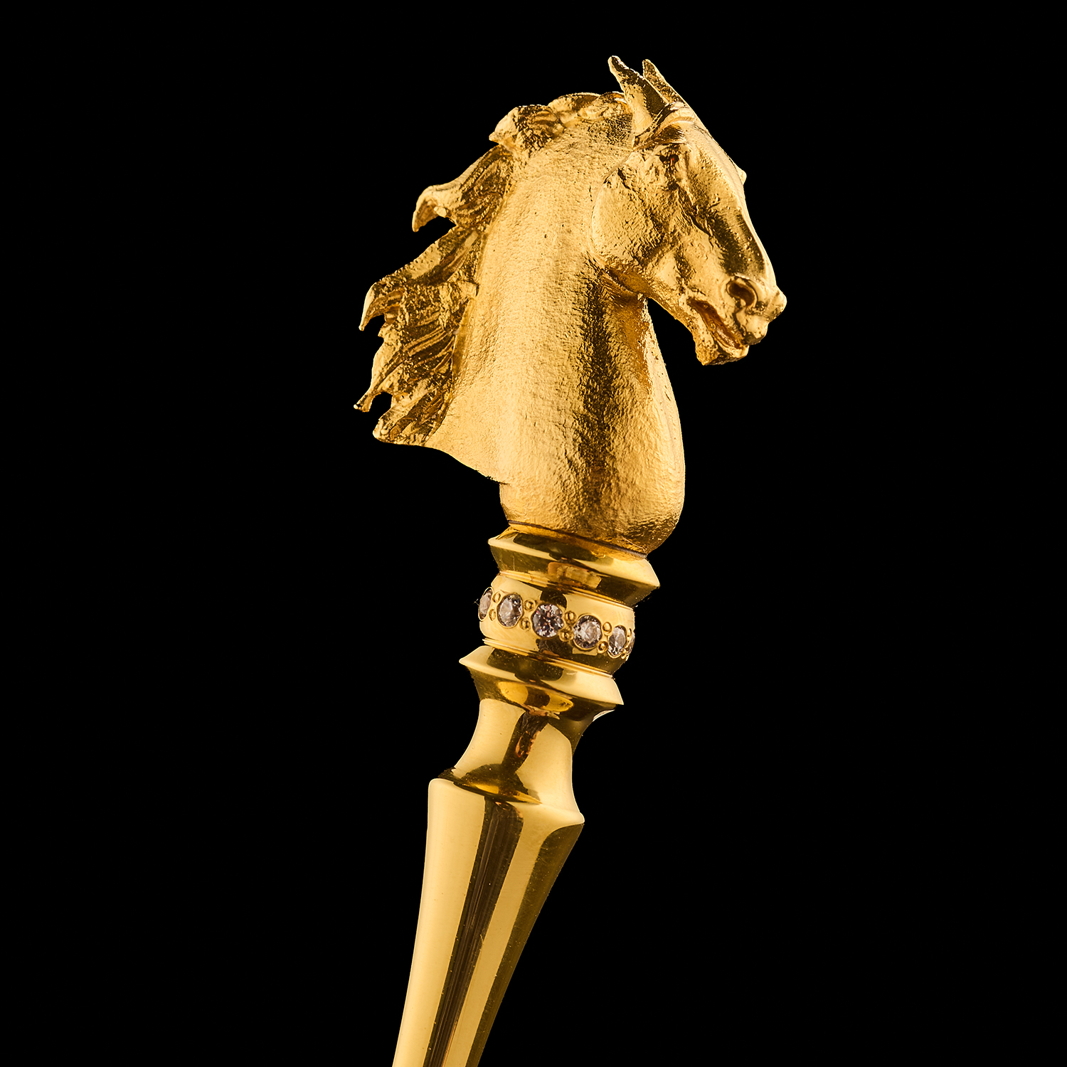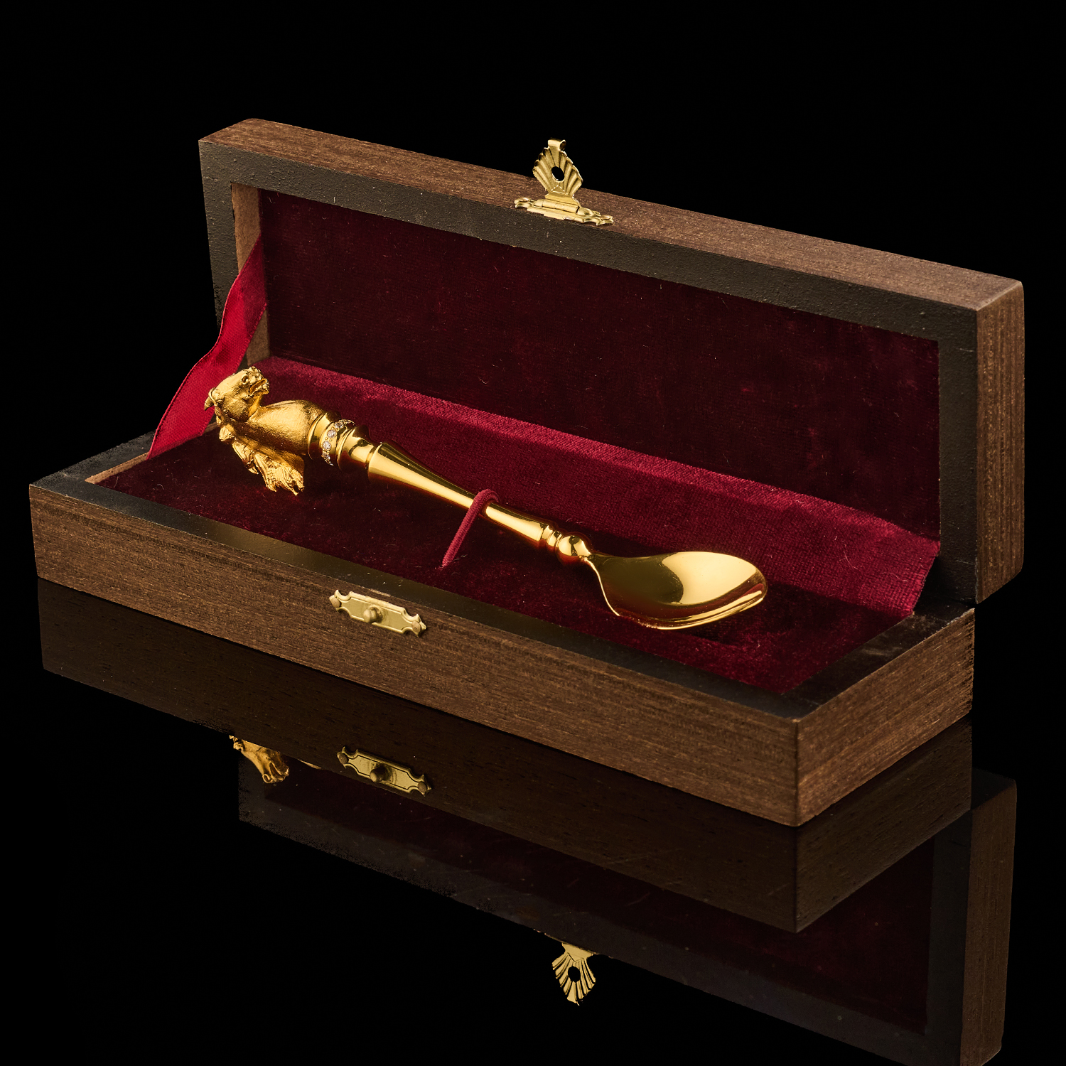 Лошадь Символ 2026 года. Чайная ложка "Конь". Златоуст.Материалы: латунь, золото 999,9*, фианиты.