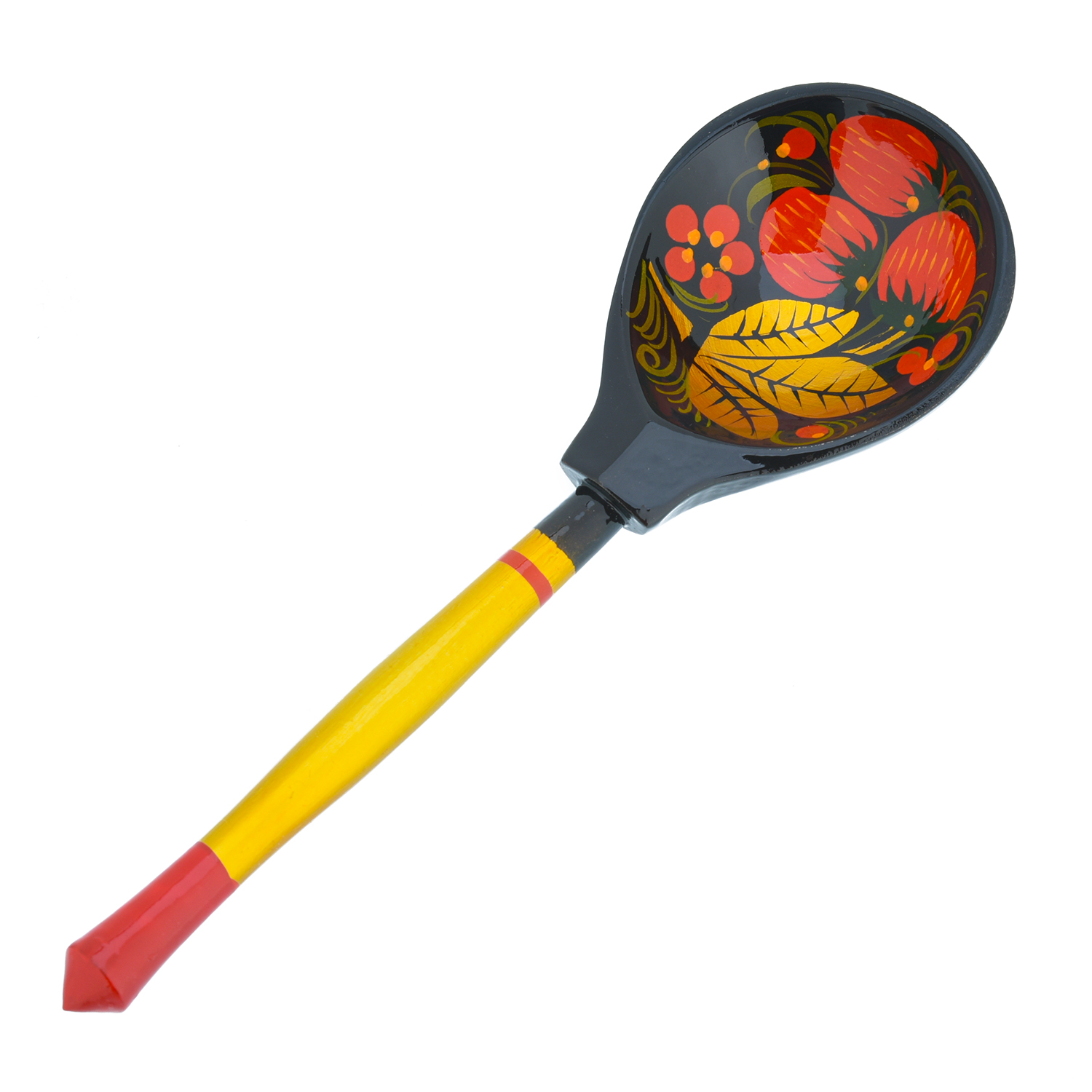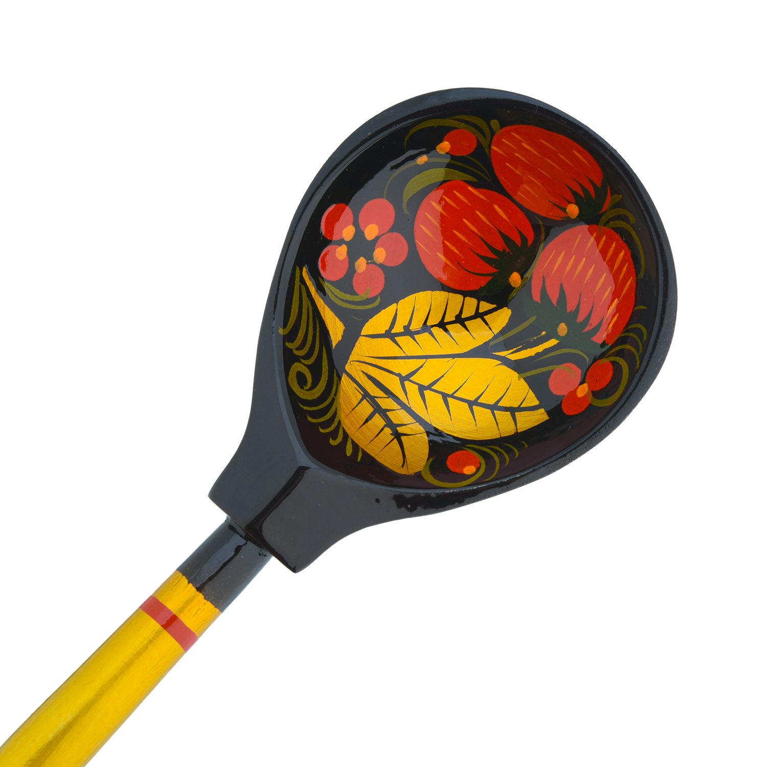 Деревянный корпус каждой ложки выточен из массива легкой и твердой древесины липы и оформлен по черному фону ярким и детальным растительно-цветочным орнаментом в хохломской технике свободно-кистевой росписи. Ложка - традиционный подарок на счастье и удачу. Роспись выполнена в несколько этапов с предварительной обработкой поверхности дерева посредством жидкой глины, серебристого порошка и олифы и предполагает использование позолоты. Поверхность покрыта несколькими защитными слоями прозрачного пищевого лака. Лаковое покрытие гипоаллергенно. Кружку можно мыть в горячей воде.