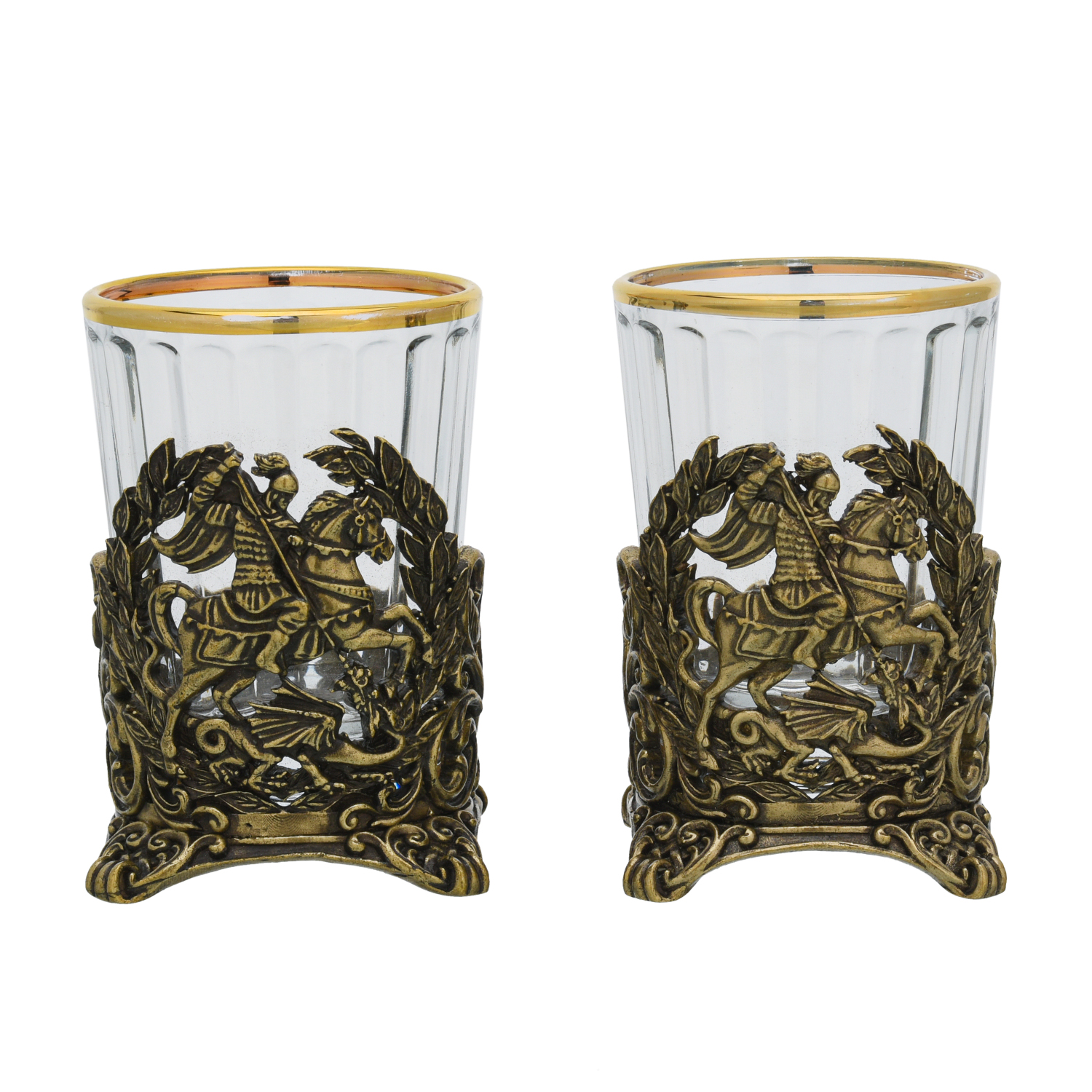 Набор стопок "Георгий Победоносец".Материалы: стекло, бронза.