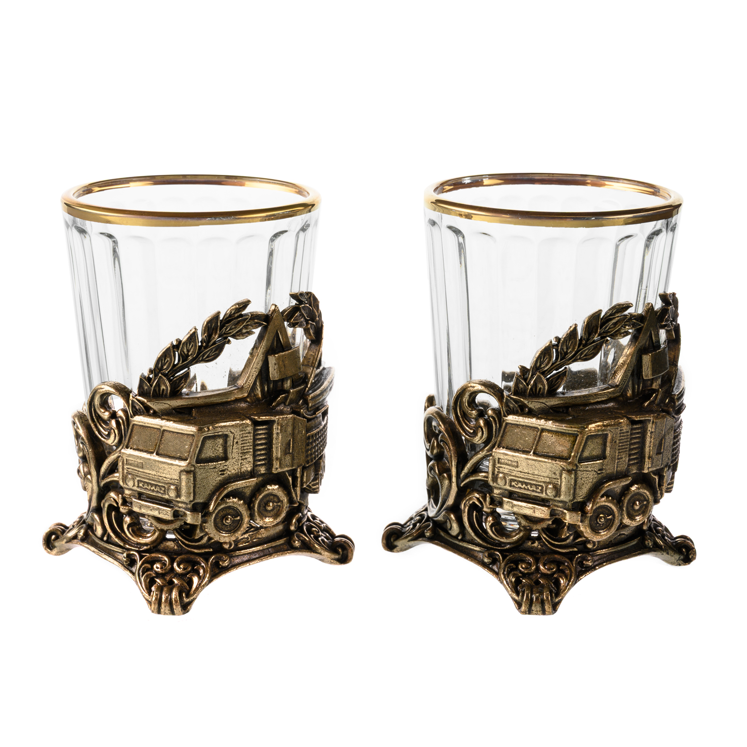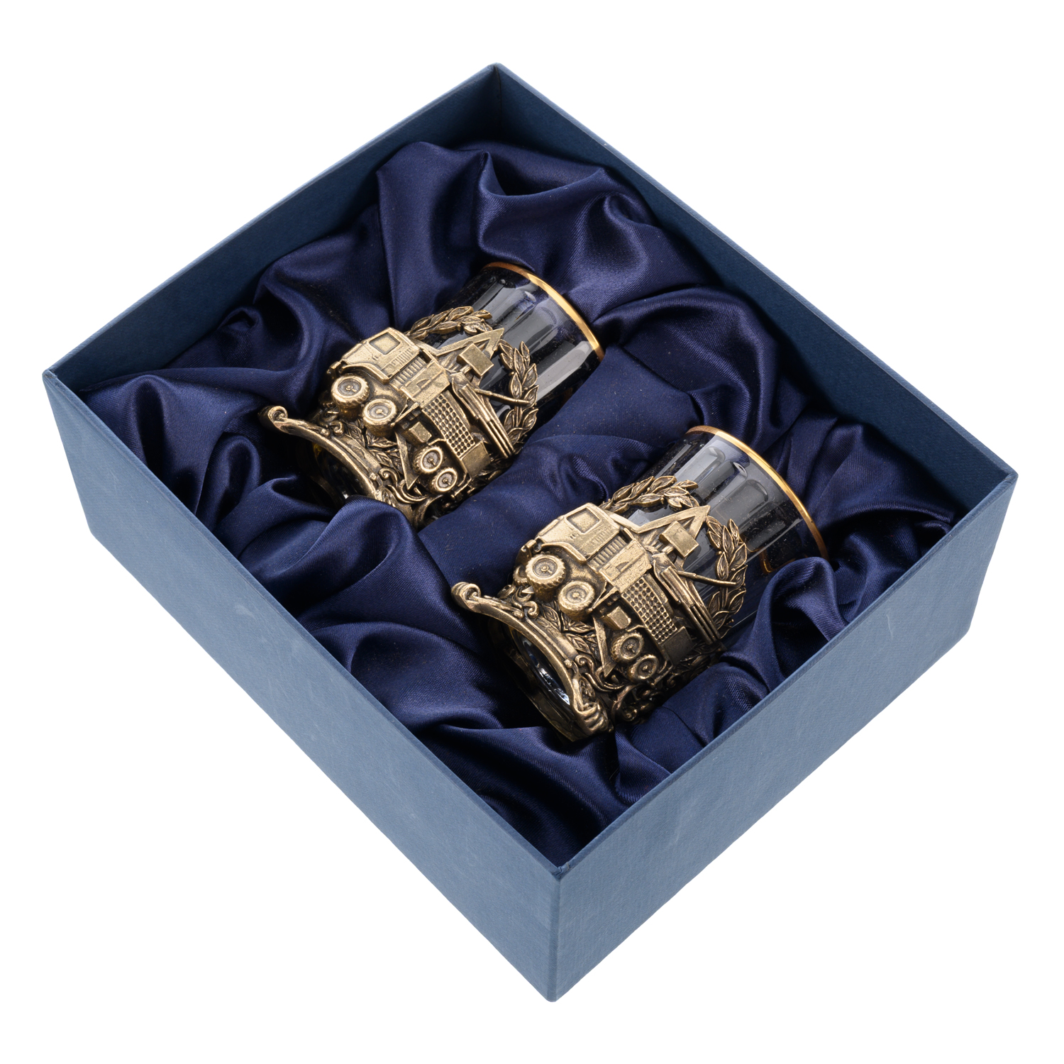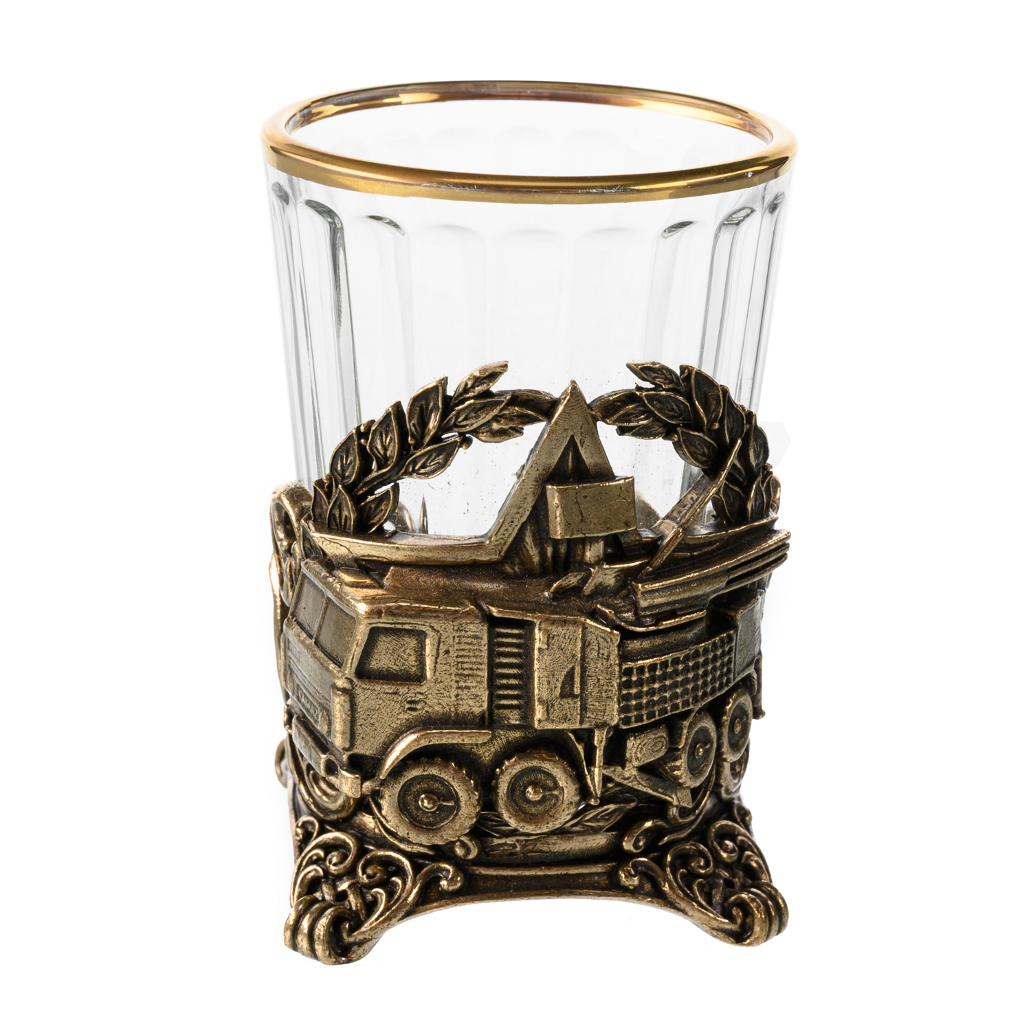 Набор стопок на 2 персоны "ЗРК Панцирь".Материалы: стекло, бронза.