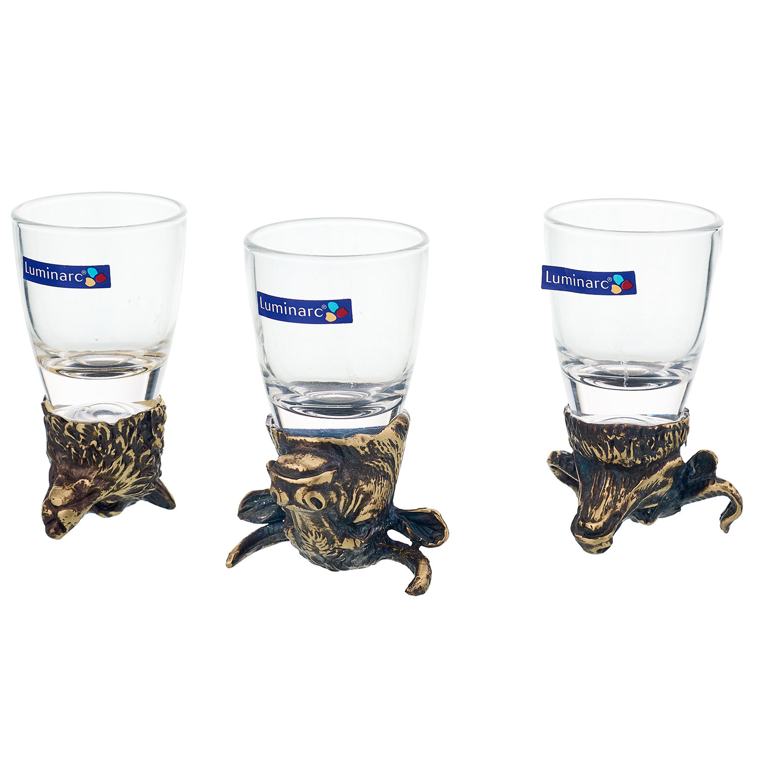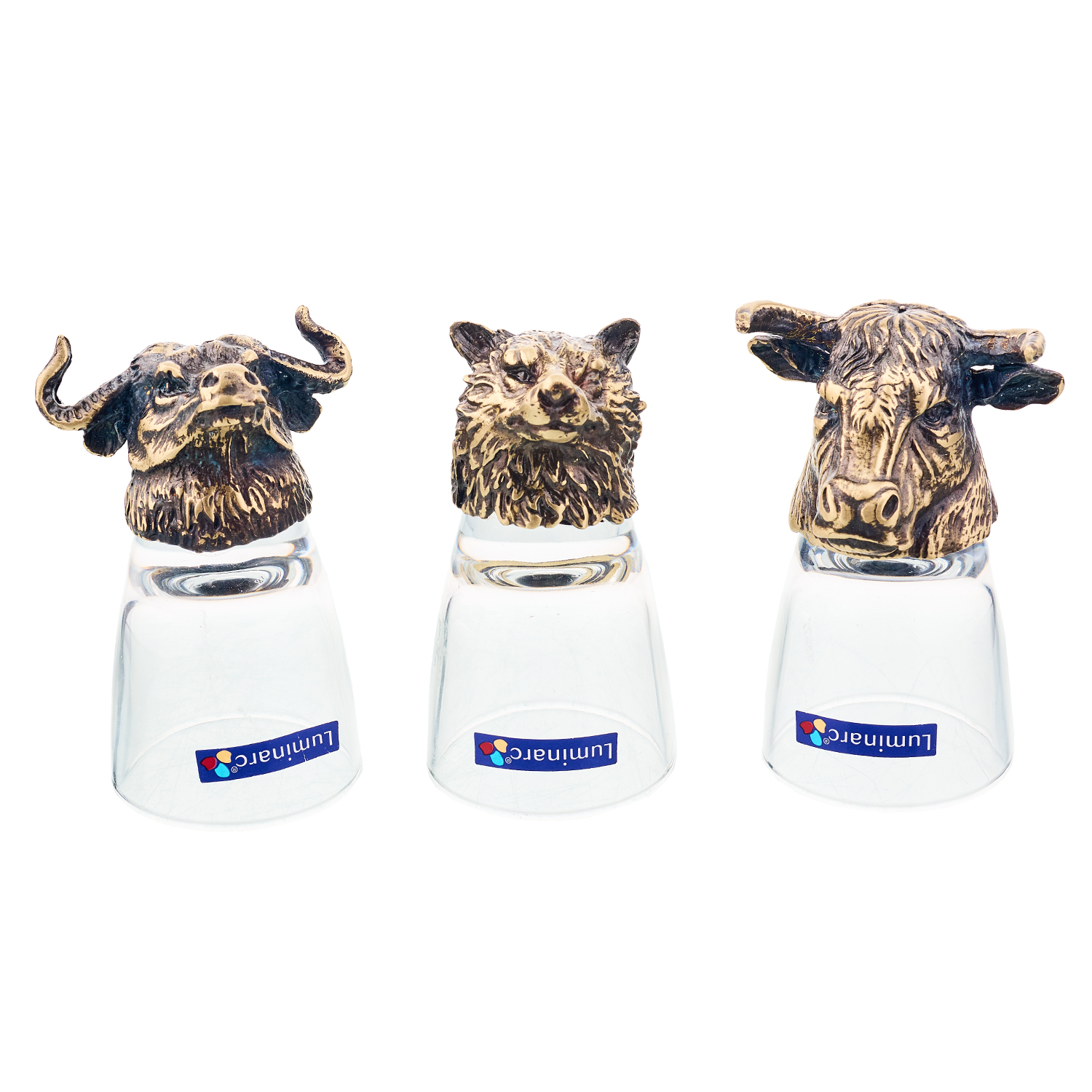 Набор стопок-перевертышей "Бык, Волк, Буйвол".Материалы: металл, стекло.