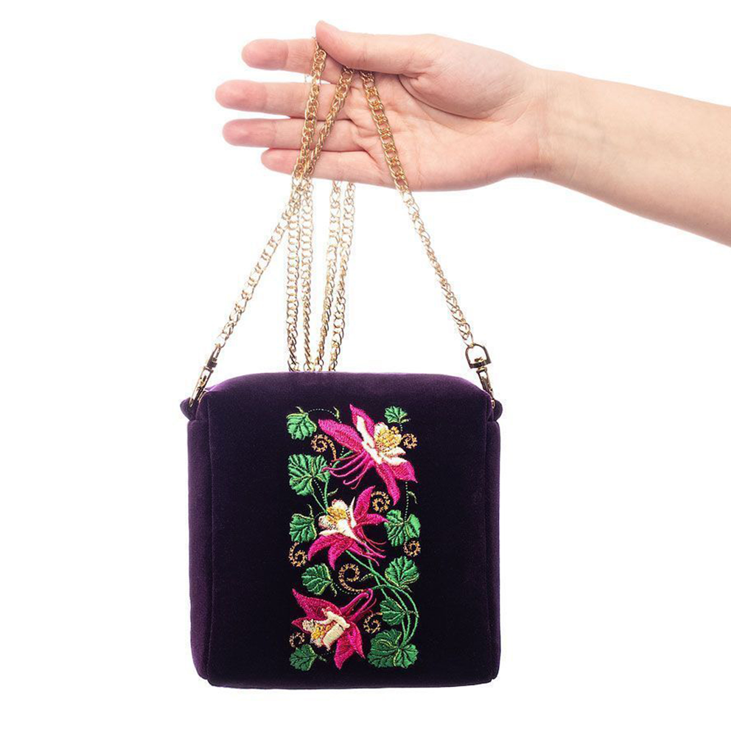 0057600-2000357220463 Сумка "Аквилегия" бархат Разм. 15*15*6,5 Мод. 982 Рис. 2742 ((Т00029542) барха .