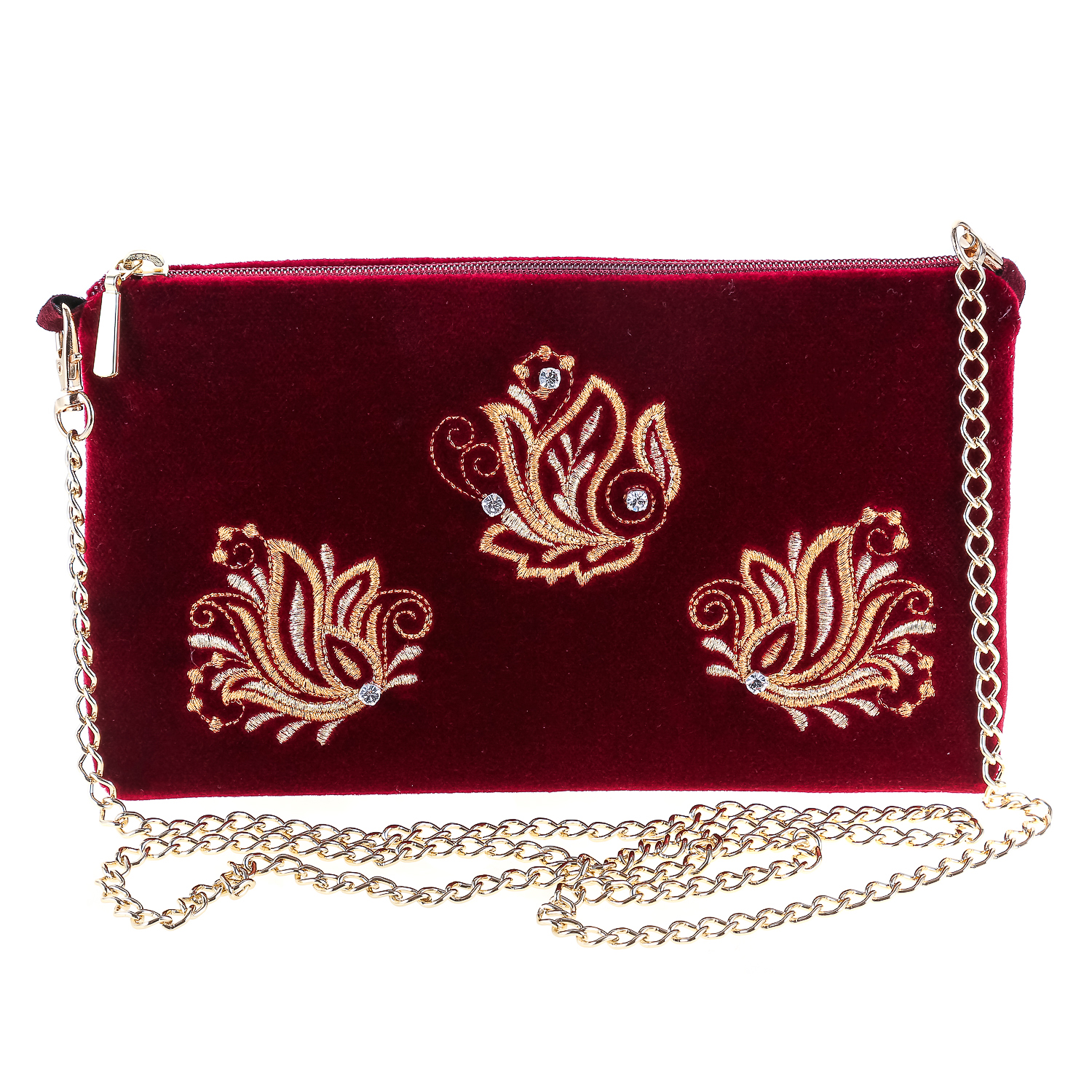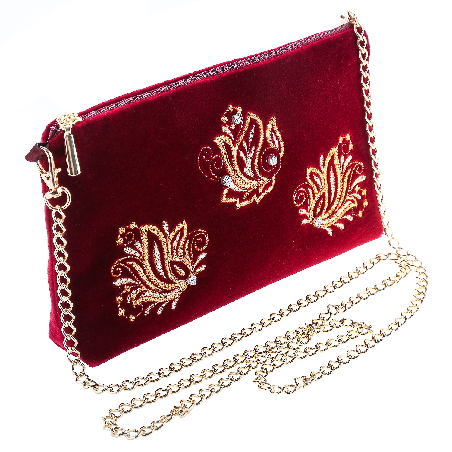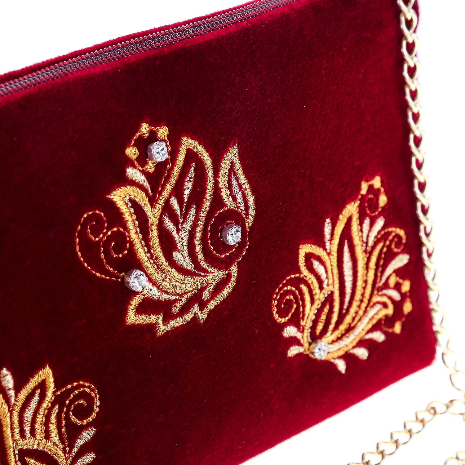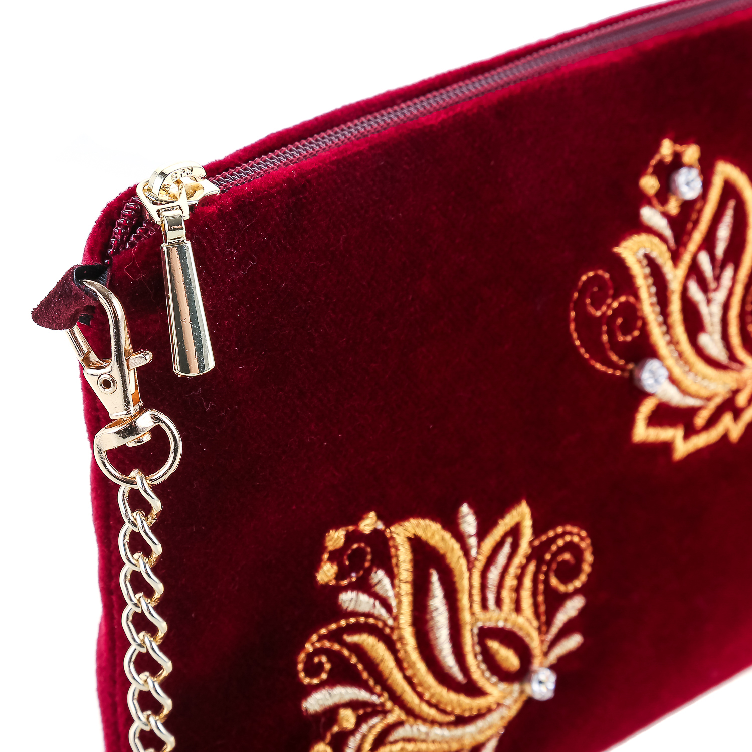 Сумка-клатч бархатная "Аромат весны". Бордовая с золотой вышивкой