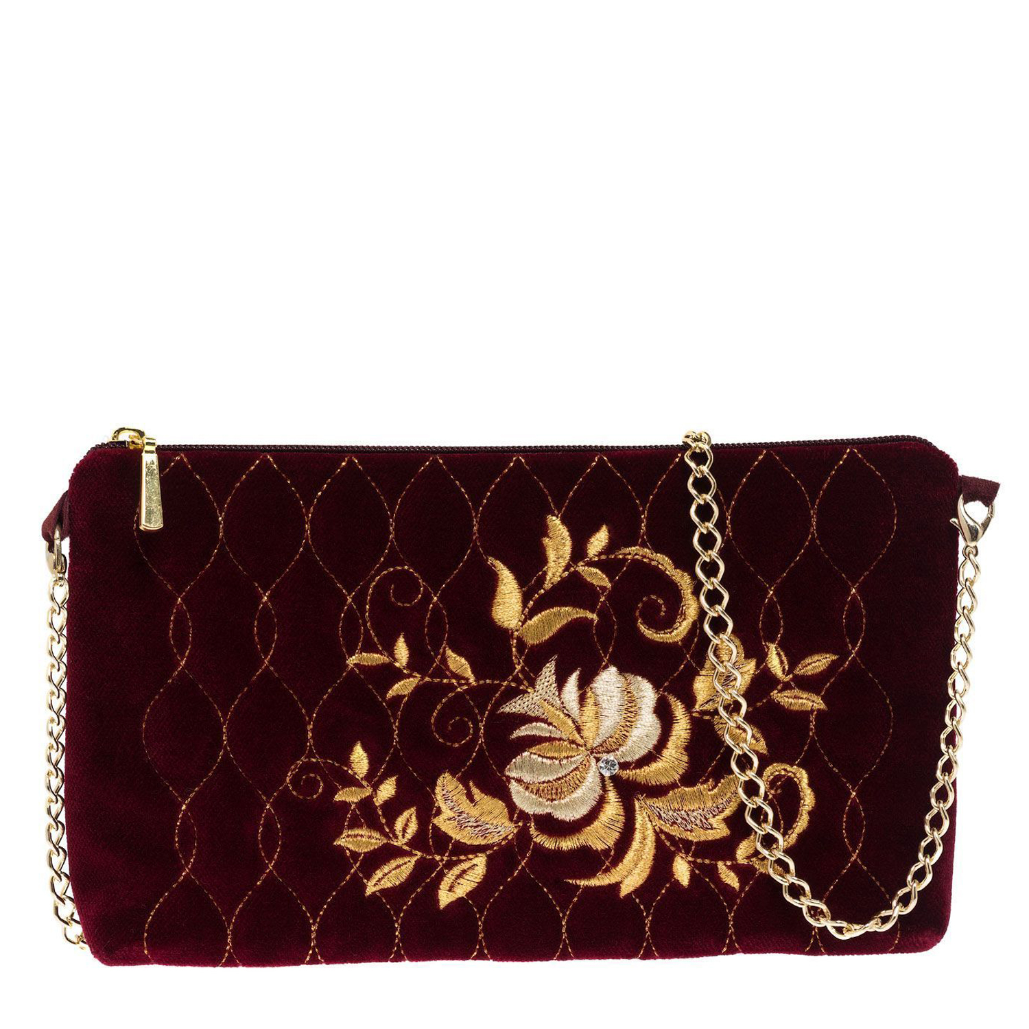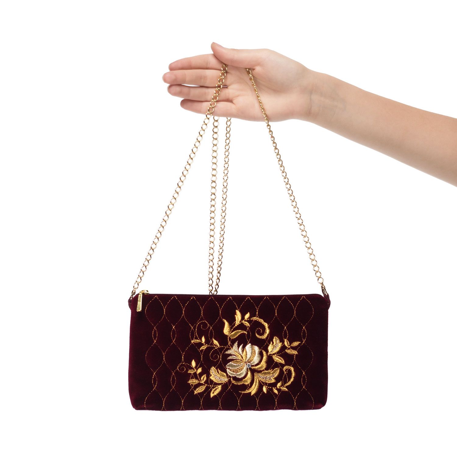 Сумка "Розалия". Бордовая с золотой вышивкой