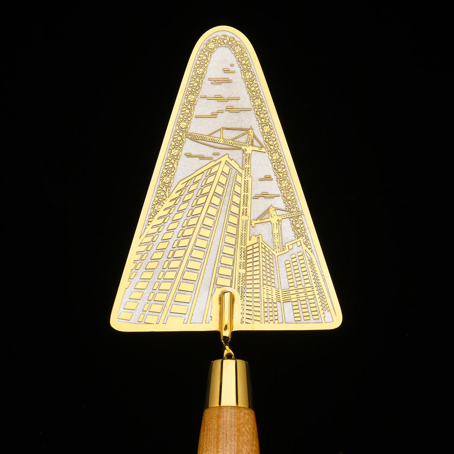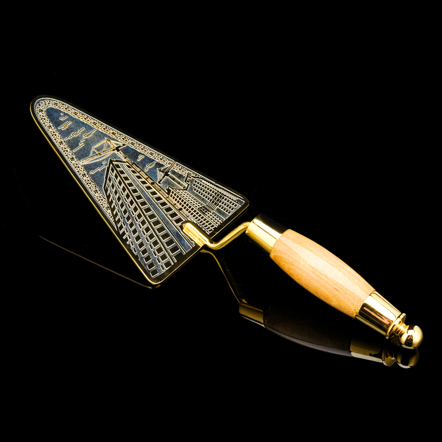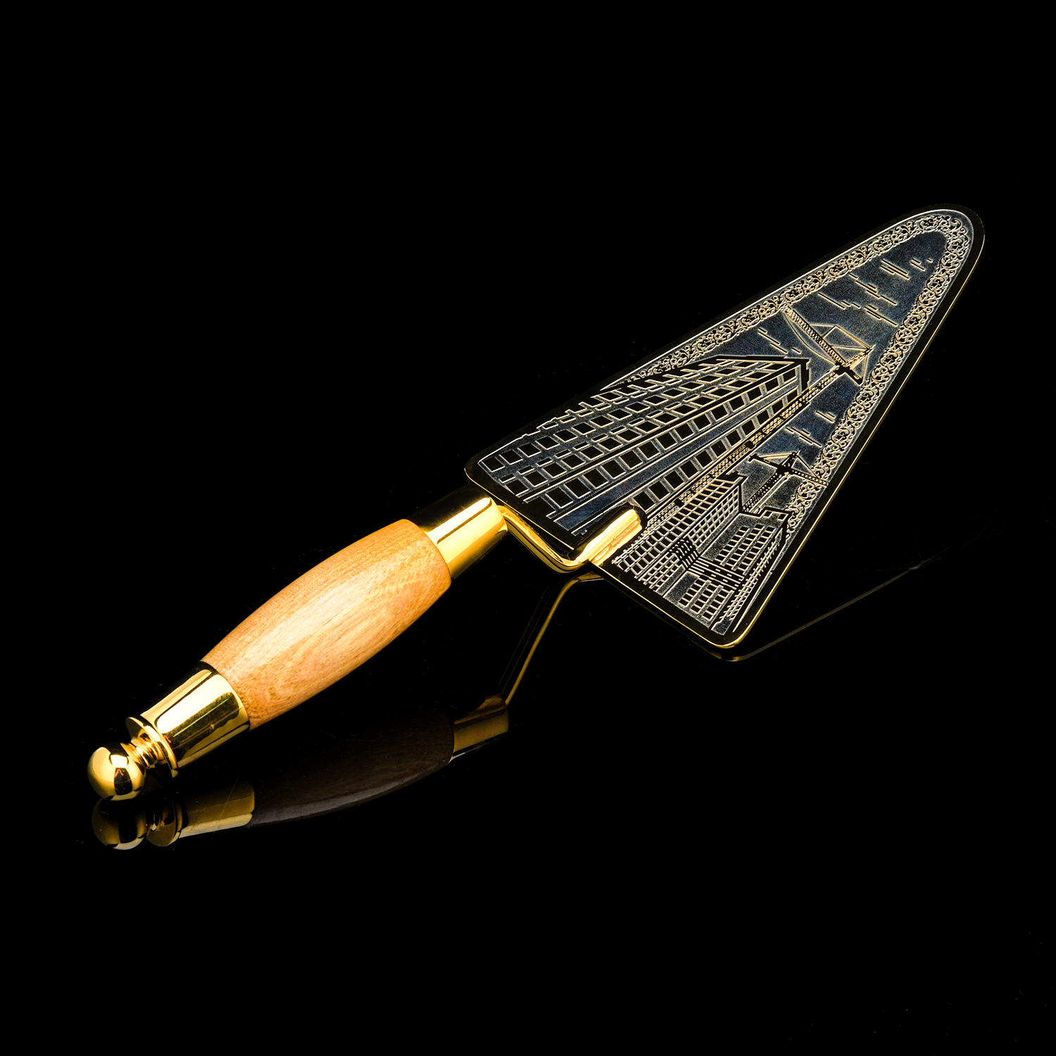 Строительный мастерок с позолотой. Златоуст.Материалы: сталь, латунь, никель, золото 999,9*, дерево.