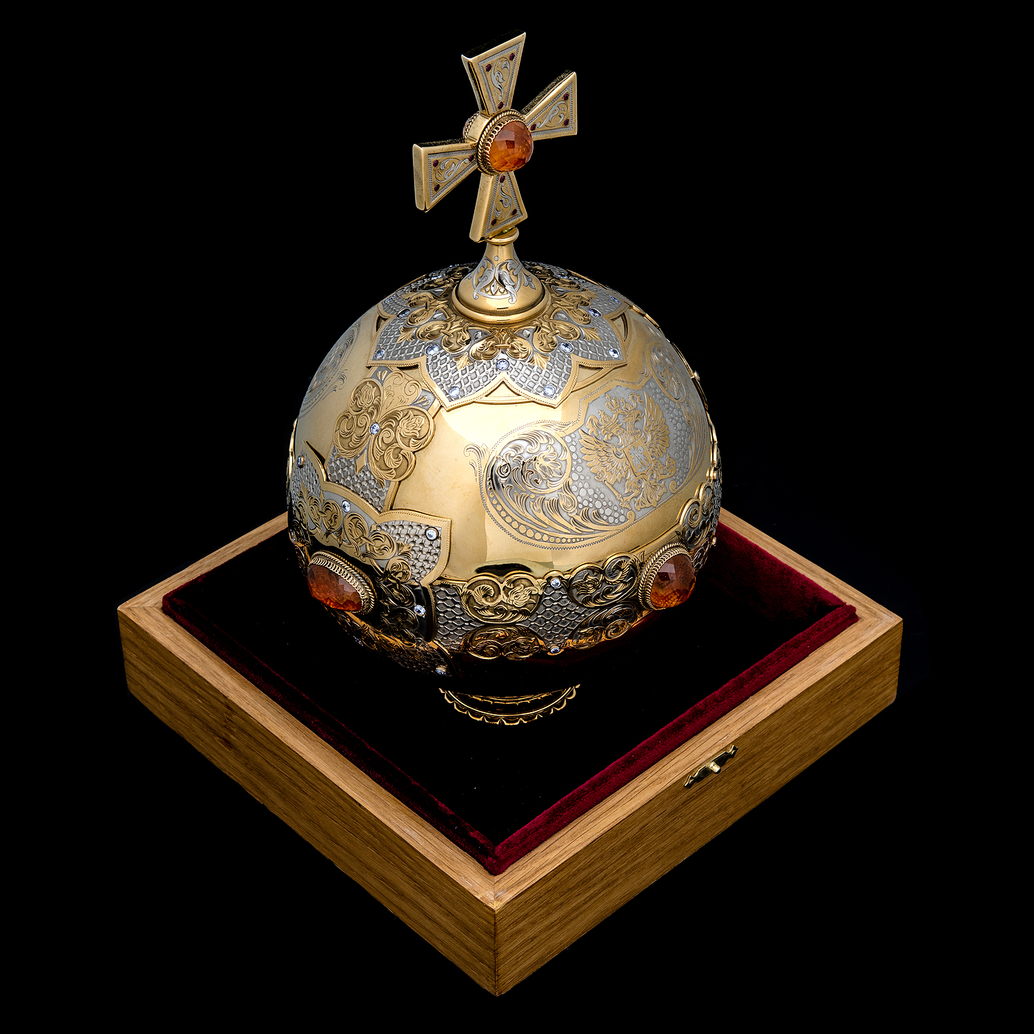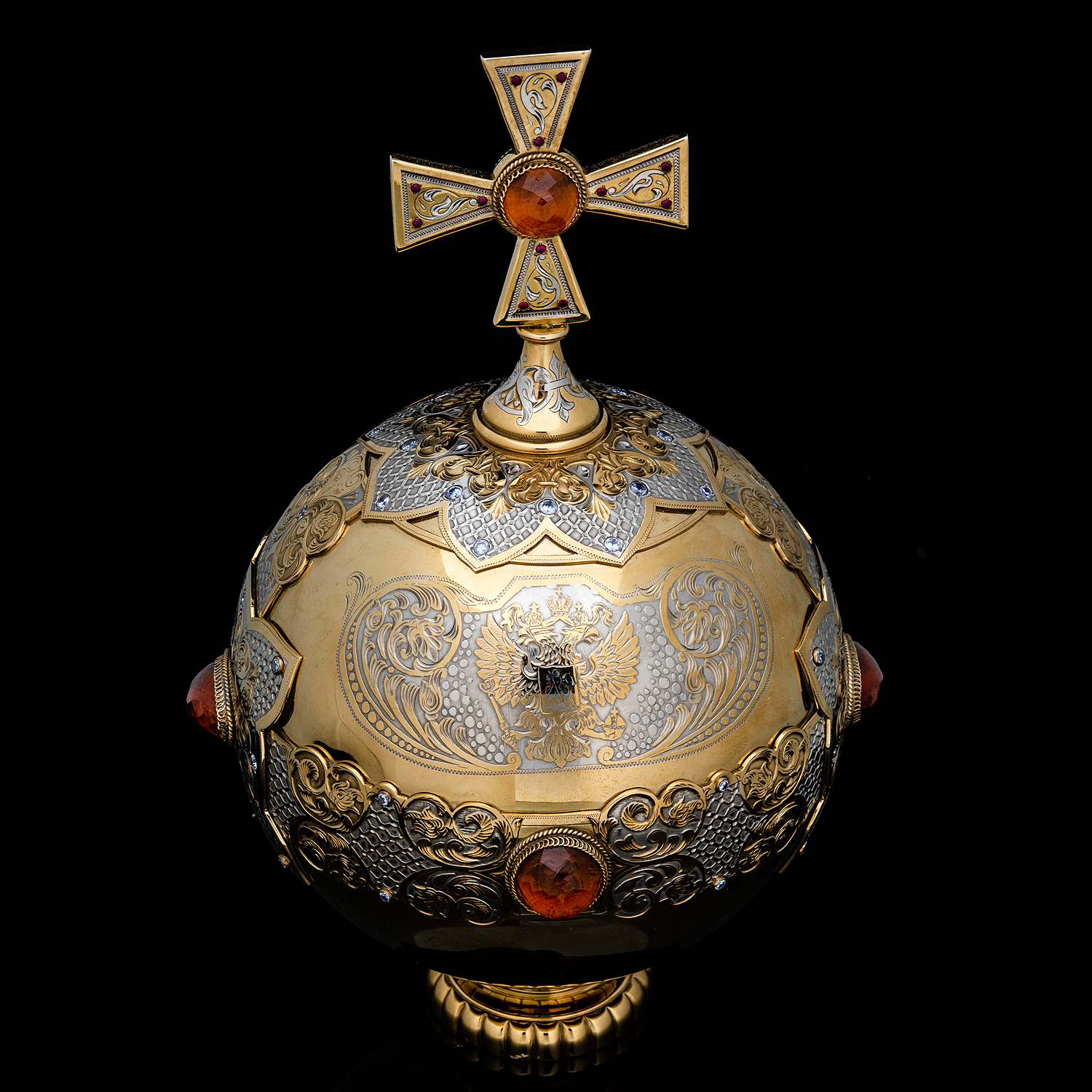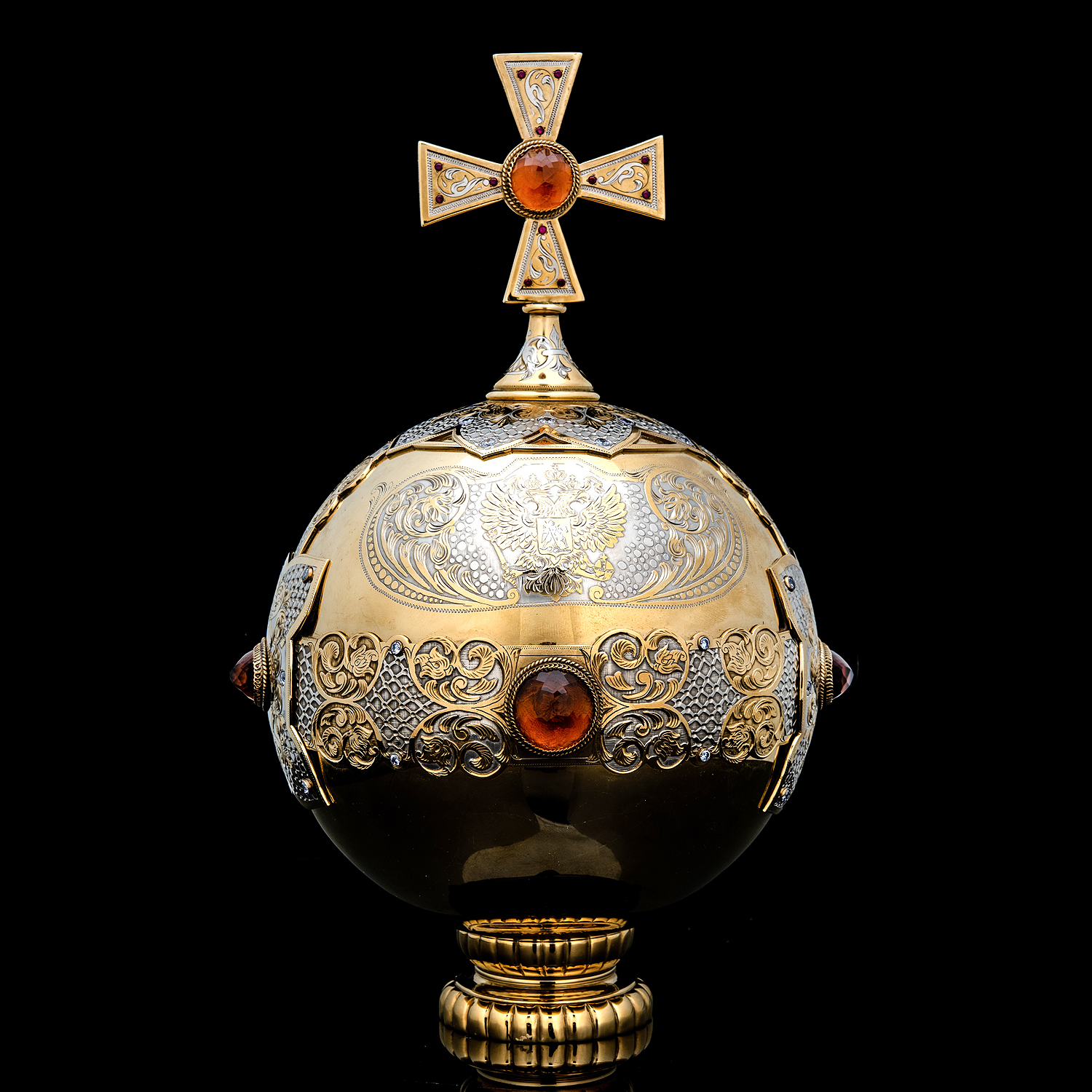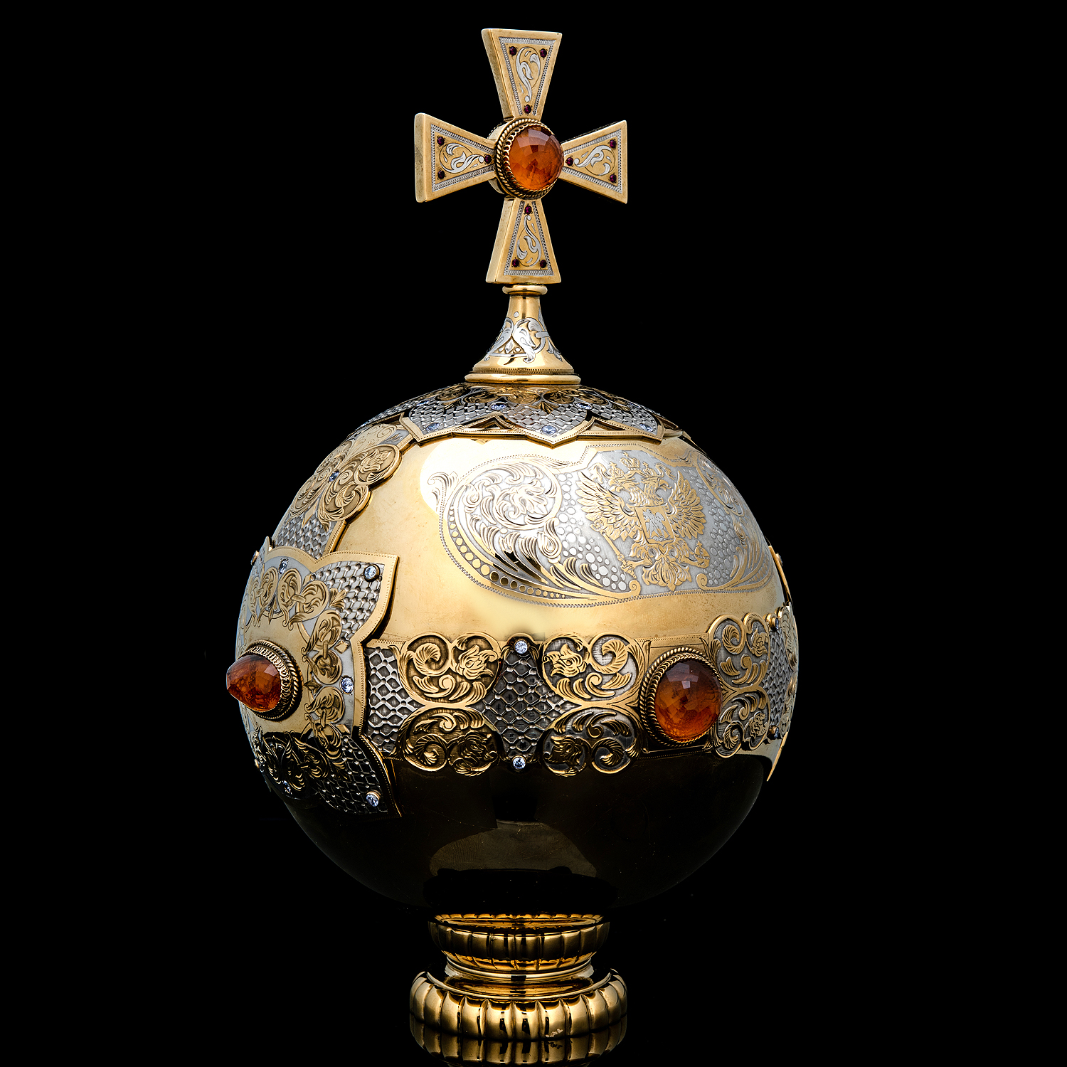 Держава сувенирная с фианитами и янтарем. Златоуст.