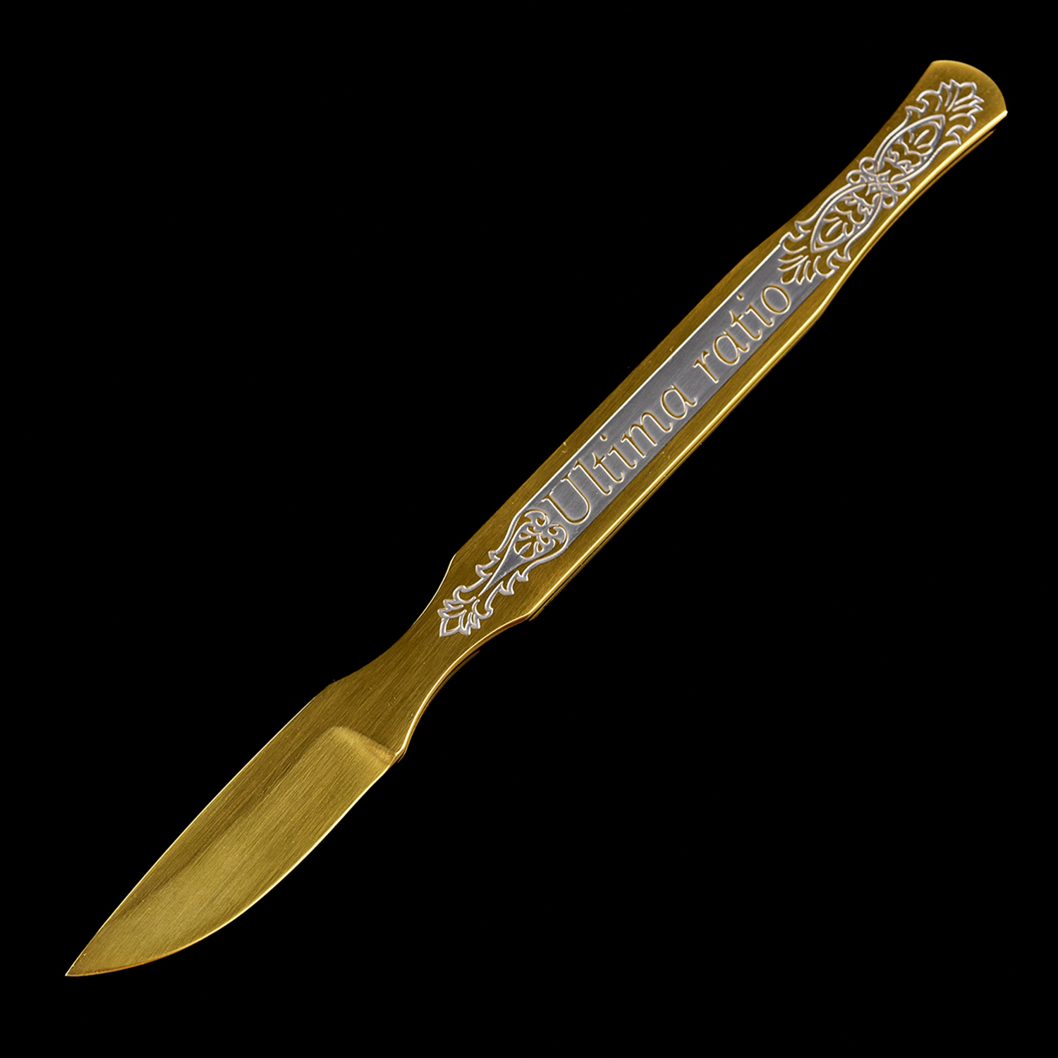 Скальпель сувенирный. Златоуст.Материалы: сталь, никель, золото 999,9*.